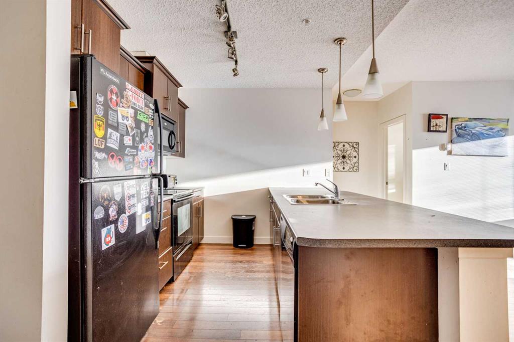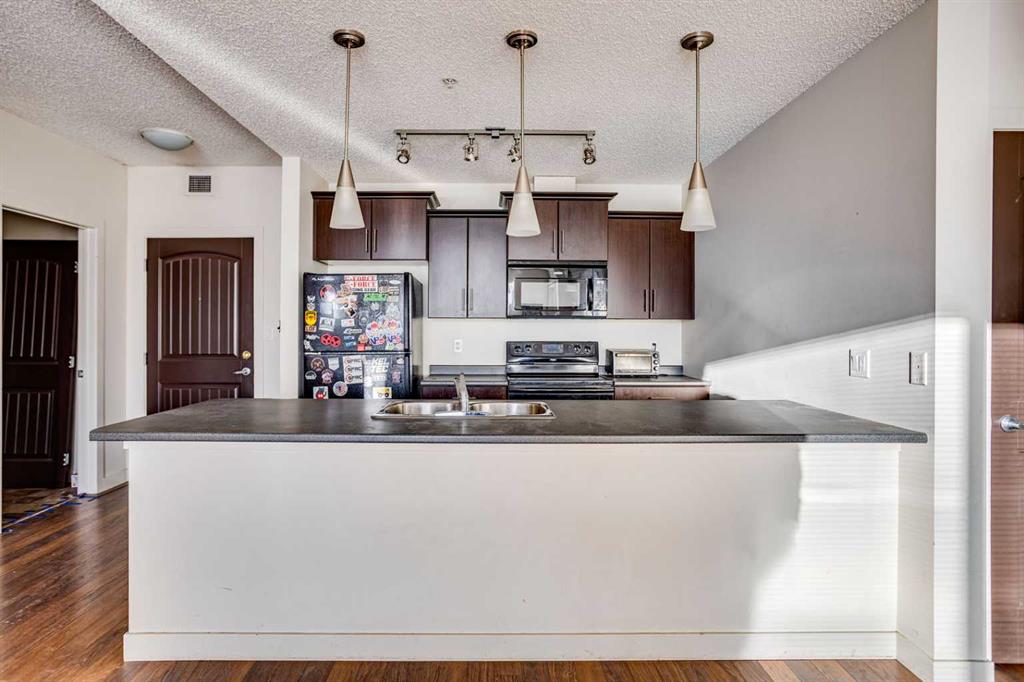 Welcome to this spacious and well-maintained 2-bedroom, 2-bathroom condo offering 1,027 sq ft of comfortable living space in The Summits. Ideally located in the established and highly desirable neighbourhood of Eagle Ridge, this affordable home combines practicality with modern style. This unit presents an exceptional opportunity for buyers seeking affordability without compromising on space, comfort, or location. With generous square footage, and condo fees that cover water, heat, and professional management, this property offers excellent value and predictable monthly costs—making it an ideal option for first-time buyers, investors, or those looking to downsize. The functional kitchen is designed for everyday living and entertaining, featuring a central island and rich dark cabinetry that provides both elegance and ample storage. The open layout flows seamlessly into the living space, where the main living room is finished with durable laminate flooring, creating a warm and inviting atmosphere. The primary bedroom includes a convenient walk-through closet leading to a private 4-piece ensuite, offering both comfort and privacy. The second bedroom is generously sized and situated near an additional 4-piece bathroom, making it ideal for guests, roommates, or a home office. This unit also includes an underground tandem parking stall and titled storage, adding extra value and convenience. As one of the only concrete condo buildings in the area, The Summits offers enhanced sound insulation, providing a quieter and more peaceful living environment. Combining affordability, functionality, and a prime location, this condo is a must-see.