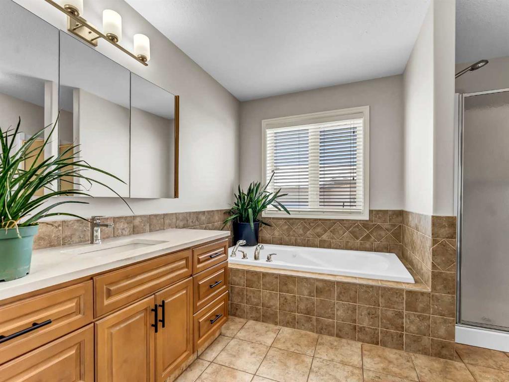 Fully developed, move-in ready, and packed with updates, this stylish Saamis Heights home delivers the space and function today’s families are looking for. With 4 bedrooms, 3 upstairs and 1 on the lower level, plus 3.5 bathrooms, the layout is both practical and versatile. Fresh paint in a soft, modern palette pairs perfectly with newer quartz countertops throughout the kitchen and bathrooms, while updated lighting and LED pot lights add a clean, contemporary feel. The spacious primary suite features a walk-in closet and a well-designed ensuite with a separate tub and shower. The fully developed basement creates the perfect setup for guests, teens, or extra living space. A clean, heated, attached double garage adds even more everyday convenience. Located close to schools, walking paths, and shopping, this home checks all the boxes with quick possession available.