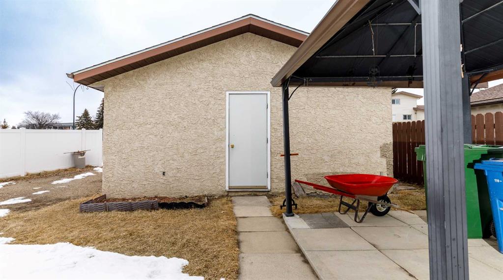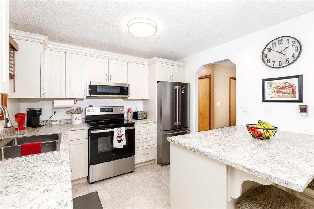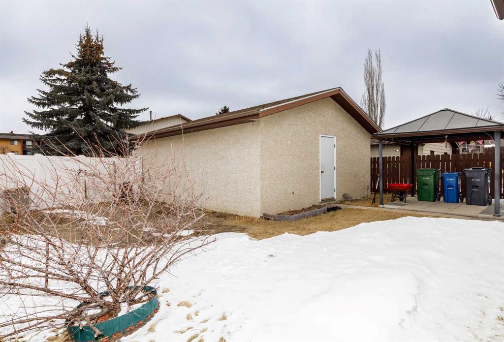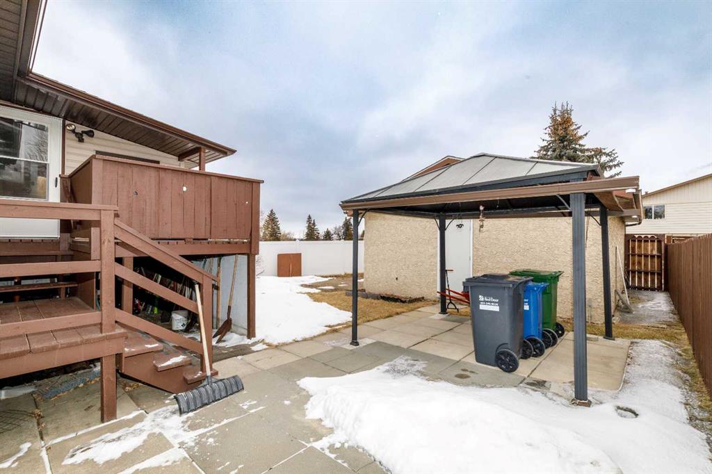 This beautifully maintained 4-bedroom, 2-bathroom home sits on a prime corner lot directly across from a peaceful green space, offering the perfect blend of modern upgrades and classic comfort. The heart of the home is the newly updated kitchen, which comes complete with a full suite of appliances and sits adjacent to a thoughtfully designed back extension added in 2014. Throughout the main level, you'll find newer vinyl windows and several updates that lead out to an extended front porch, also added in 2014. No detail has been overlooked in the home's upkeep, including a hot water tank replaced in 2018, refreshed shingles, and brand-new blinds. The lower level is equally impressive, featuring a cozy basement bedroom with brand-new carpet and a convenient kitchenette equipped with a full-size fridge, making it an ideal space for guests or extended family. Step outside to your private outdoor oasis, where a new fence encloses a spacious deck and gazebo, perfect for summer entertaining. The property is completed by a detached garage with handy back alley access, ensuring plenty of parking and storage. Located just moments from local amenities, this move-in-ready gem offers the rare combination of a quiet, scenic location with all the modern updates today's buyer desires.