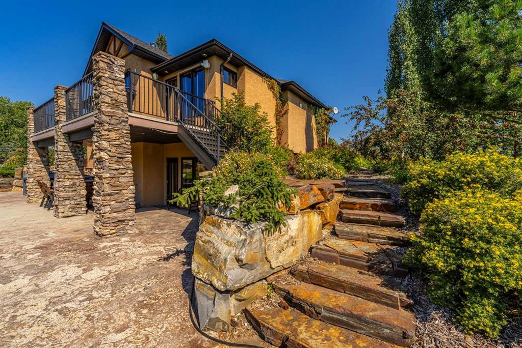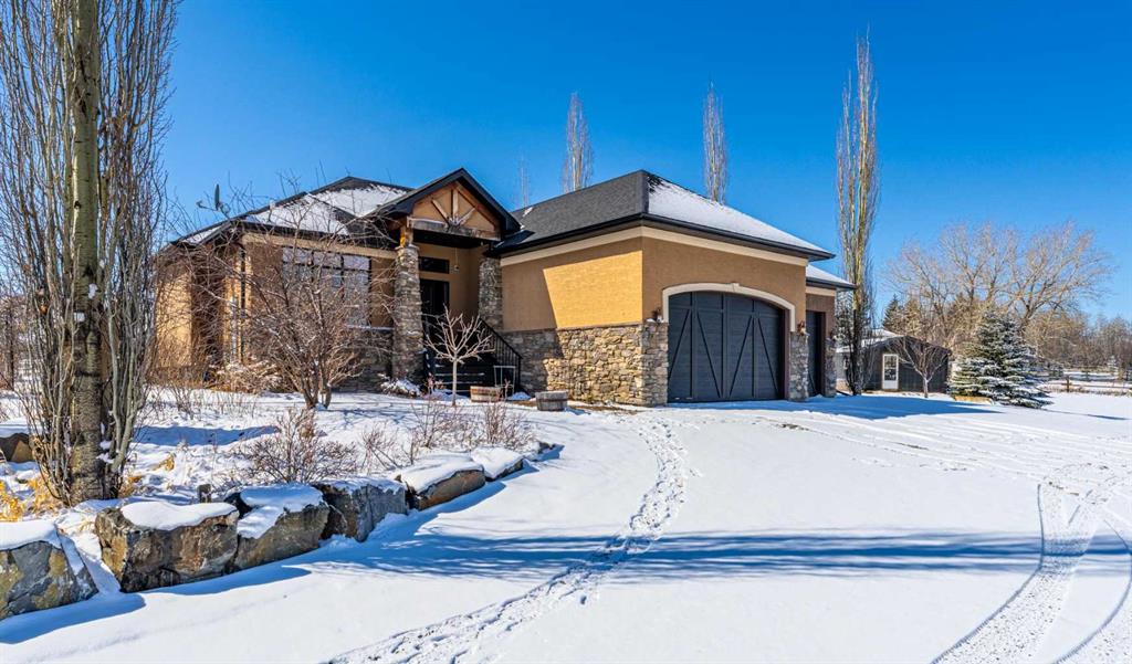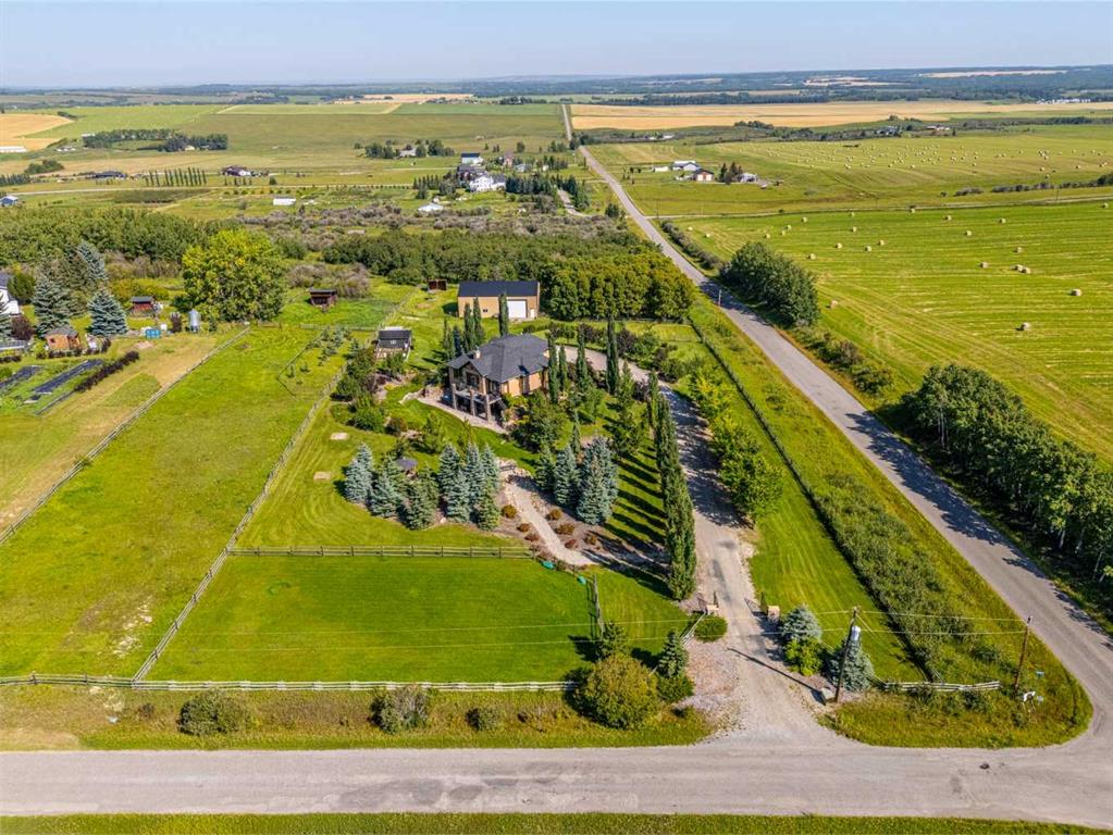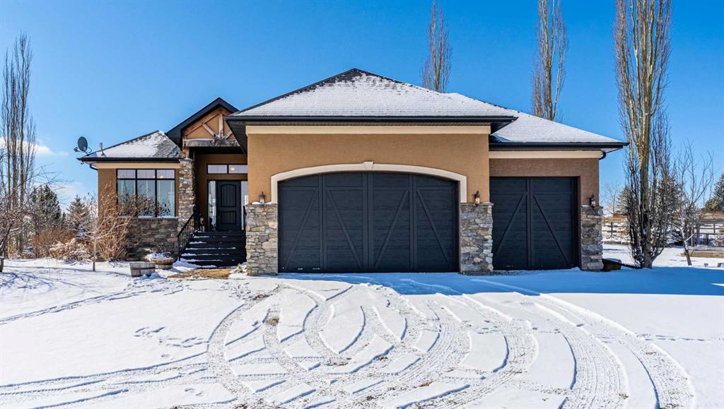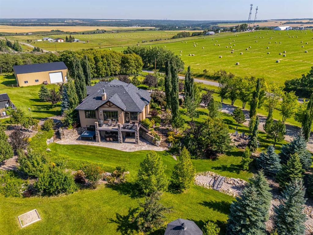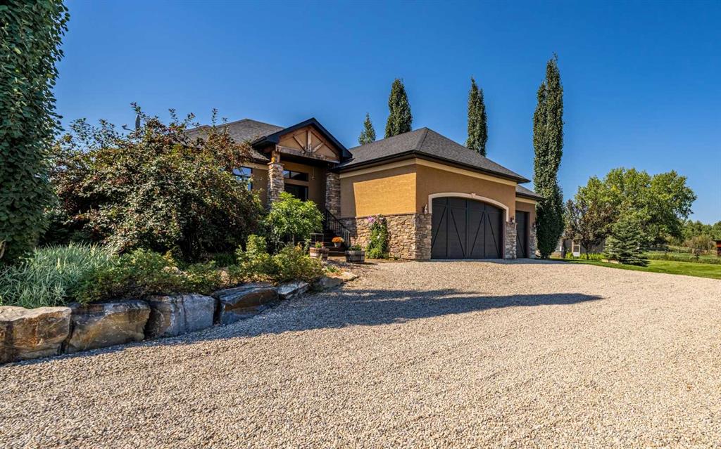 Set on 4.07 acres just minutes from Priddis and only 10 minutes to Shawnessy, this exceptional executive walkout bungalow offers a blend of refined living and country tranquility. Built in 2007, the home features 3 bedrooms, 2.5 bathrooms, a bright den, air conditioning, and two fireplaces, along with a thoughtfully designed walkout basement complete with a convenient Jack and Jill bathroom. The spa-inspired primary ensuite is a true retreat, featuring a steam shower. Designed for modern living, the home is wired for sound inside and out, with data lines throughout, and offers an abundance of well-planned storage. The triple attached heated garage is complemented by a versatile 40’ x 60’ shop with four horse stalls, electricity, and two overhead doors—ideal for equestrian use, RV storage, hobbies, or additional storage. Beautifully curated grounds showcase mature trees, including striking larch, along with an abundance of fruit trees and lush landscaping. The fully fenced property offers both dog fencing and a deer-proof garden, as well as a greenhouse and automatic heated waterer. A gated entry creates a sense of arrival, while a 30 amp RV outlet provides added flexibility. An exceptional property where privacy, functionality, and elevated acreage living come together seamlessly.