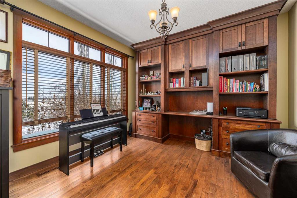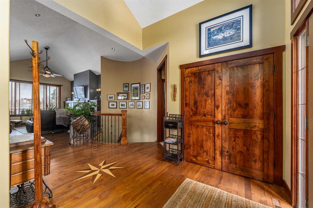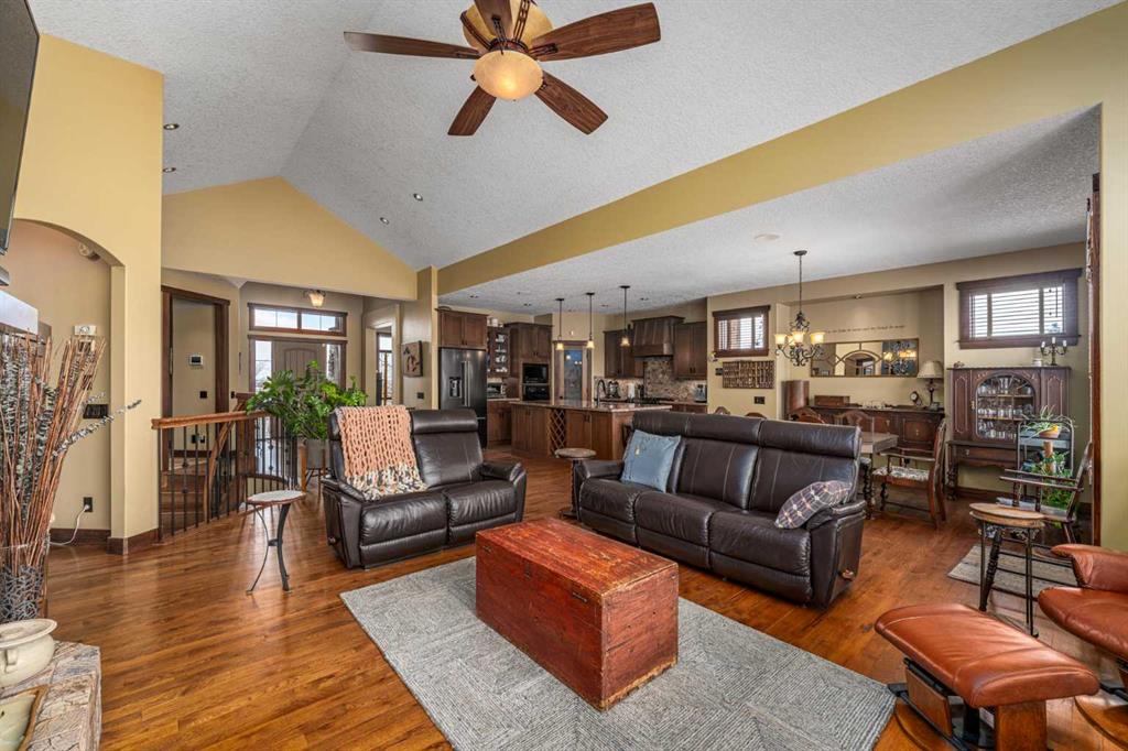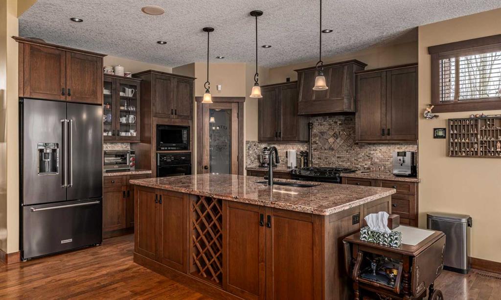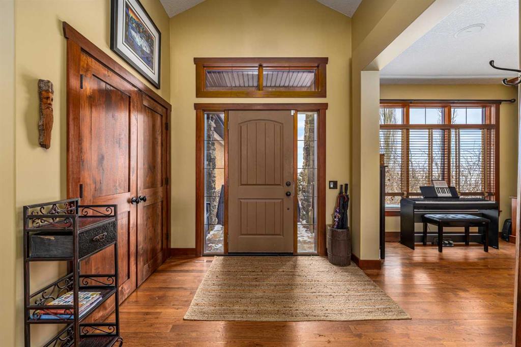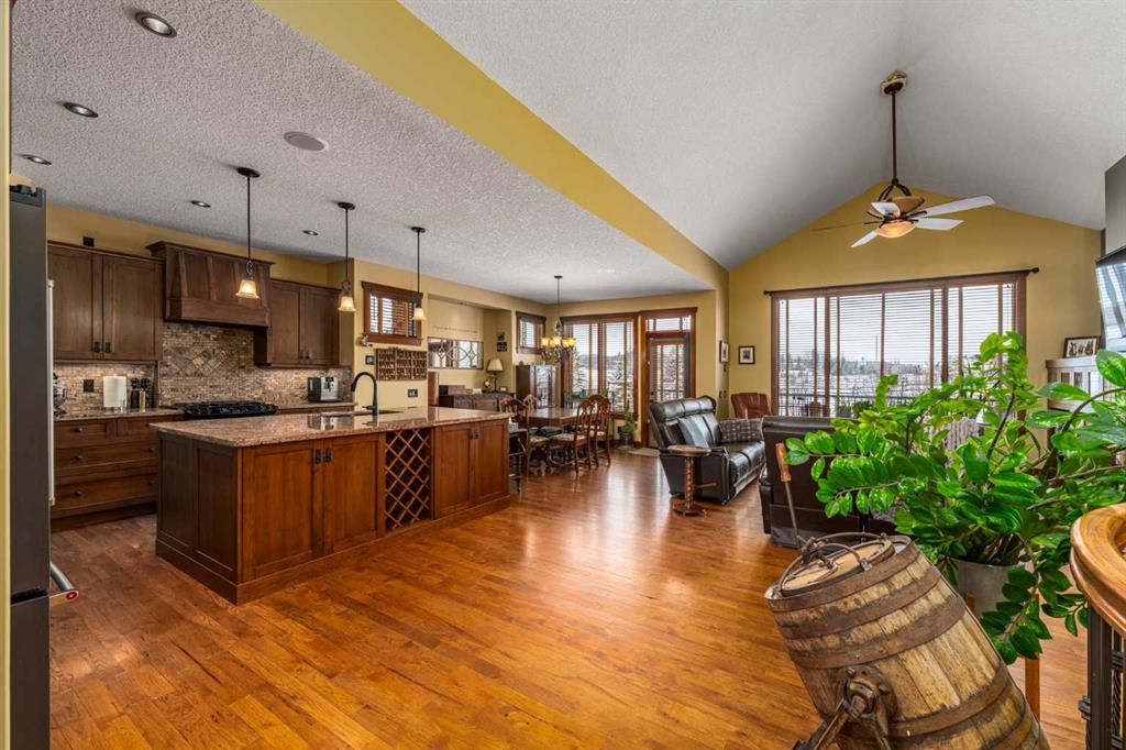 Set on 4.07 acres just minutes from Priddis and only 10 minutes to Shawnessy, this exceptional executive walkout bungalow offers a blend of refined living and country tranquility. Built in 2007, the home features 3 bedrooms, 2.5 bathrooms, a bright den, air conditioning, and two fireplaces, along with a thoughtfully designed walkout basement complete with a convenient Jack and Jill bathroom. The spa-inspired primary ensuite is a true retreat, featuring a steam shower. Designed for modern living, the home is wired for sound inside and out, with data lines throughout, and offers an abundance of well-planned storage. The triple attached heated garage is complemented by a versatile 40’ x 60’ shop with four horse stalls, electricity, and two overhead doors—ideal for equestrian use, RV storage, hobbies, or additional storage. Beautifully curated grounds showcase mature trees, including striking larch, along with an abundance of fruit trees and lush landscaping. The fully fenced property offers both dog fencing and a deer-proof garden, as well as a greenhouse and automatic heated waterer. A gated entry creates a sense of arrival, while a 30 amp RV outlet provides added flexibility. An exceptional property where privacy, functionality, and elevated acreage living come together seamlessly.