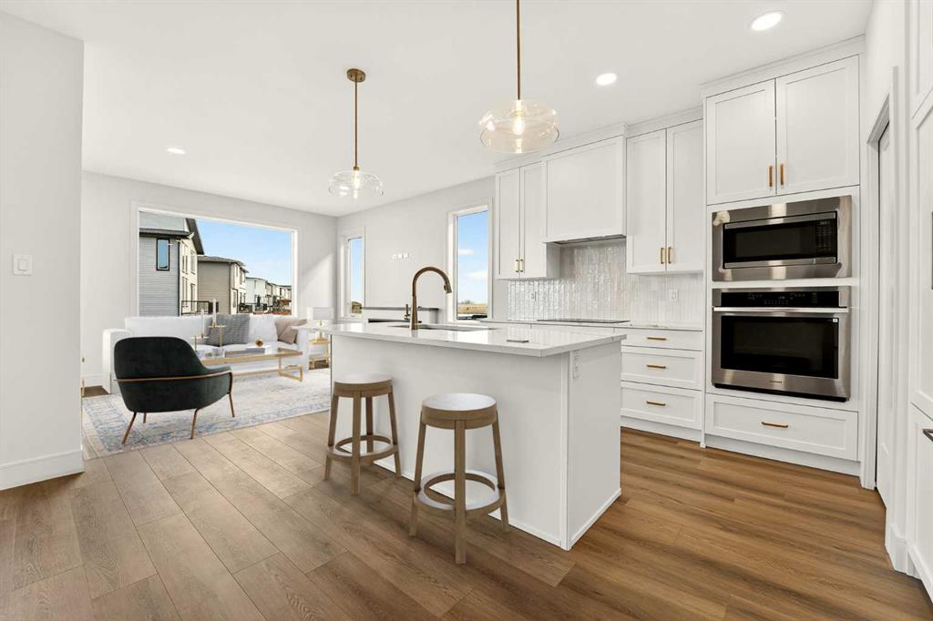 Welcome to the Comerie by Stranville Living Master Builder, a brand new home in Southbrook that backs directly onto one of the community's scenic ponds. That pond view is the first thing you notice when you step inside — the living room is surrounded by windows that frame the water and fill the space with natural light, creating an atmosphere that is genuinely hard to replicate in this price range. The main floor features a thoughtfully designed open-concept layout that manages to feel spacious and connected while still maintaining distinct, well-defined spaces. The kitchen is a standout and showcases Stranville's signature finish quality, complete with a paneled Fisher & Paykel fridge that blends seamlessly into the cabinetry, a paneled dishwasher, sleek induction cooktop, built-in oven and microwave combo, quartz countertops, slow-close cabinetry, and a walk-in pantry that adds serious everyday storage. It's modern, clean, and designed for both daily living and entertaining without feeling like you're compromising on either. Upstairs, the primary bedroom is a comfortable retreat featuring a spacious walk-in closet and a well-appointed ensuite with dual vanities and a tiled walk-in shower. Two additional bedrooms offer generous sizing, and a full-size laundry room with plenty of storage keeps everything practical and convenient on the same level. A half bath on this floor rounds out the layout nicely. Set in Southbrook with pond-side living and Stranville's elevated build quality throughout, this home delivers a strong combination of lifestyle and long-term value. GST is included in the purchase price and the home is backed by a 10-year new home warranty for added peace of mind.