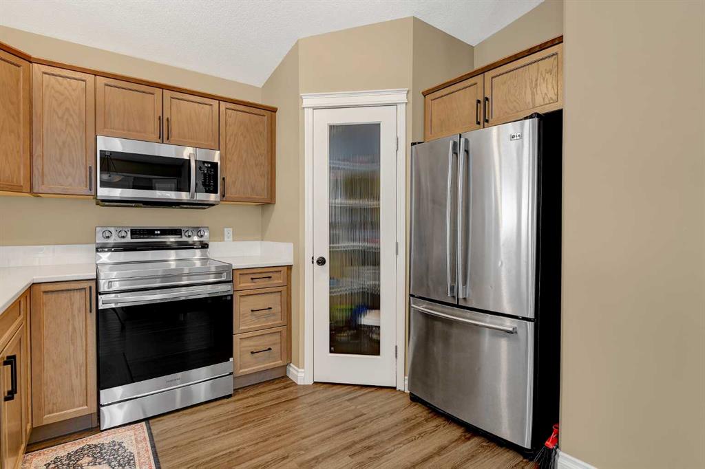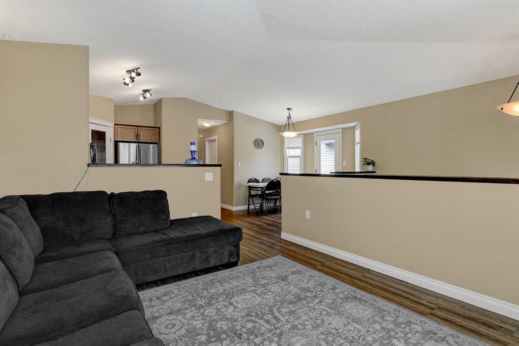 Welcome to this beautifully updated, move-in ready 4 bedroom, 3 bathroom home in sought-after Pinnacle Ridge-perfect for families or investors alike. Situated directly across from Isabel Campbell School, within walking distance to Ecole Nouvelle Frontiere School. You’ll love the convenience of nearby parks, playgrounds, and scenic walking trails, all within a quiet and secure neighbourhood. This home is very clean and well maintained. Step inside to a bright, open-concept main floor featuring a spacious living room with large front windows, a dining area with access to the side deck and lower patio. The kitchen is complete with new cupboards, new countertops, new stainless dishwasher, new stainless stove, new stainless microwave rangehood, and plenty of workspace, along with a convenient corner pantry. Stylish new flooring runs throughout the kitchen, dining area, and living room, creating a modern and cohesive feel. The home has also been freshly painted, offering a clean, updated look throughout. The main level includes a generously sized primary bedroom with a private 3-piece ensuite, plus two additional well-sized bedrooms and a full 3-piece bathroom. Downstairs, the fully developed walk-up basement adds incredible functionality and convenience, offering a large family room, a spacious fourth bedroom, and a third full 3-piece bathroom. New flooring has also been added to the basement family room and bedroom, enhancing comfort and style. You’ll also appreciate the convenience of a new washer and dryer and a newer hot water tank. Step outside to enjoy easy access from the walk-up basement to the rear patio and nicely sized backyard, complete with a two-tier deck that connects to the main floor dining area—perfect for entertaining or relaxing. The property includes a rear parking pad for two vehicles, with ample street parking available out front. There's room in the backyard for a future detached garage or workshop. This well-maintained and thoughtfully updated home is a fantastic opportunity—whether you’re looking for your next family home or a solid investment property. Book your showing today!