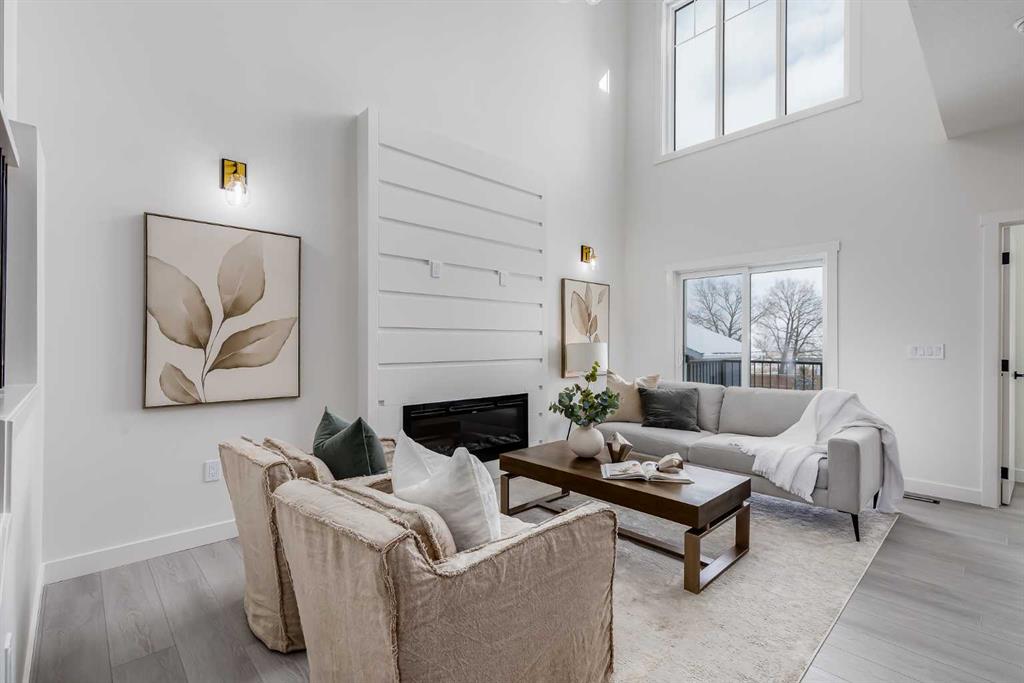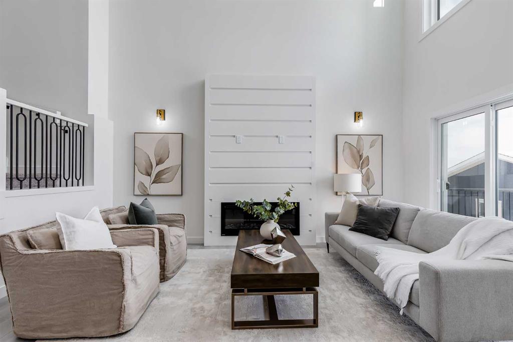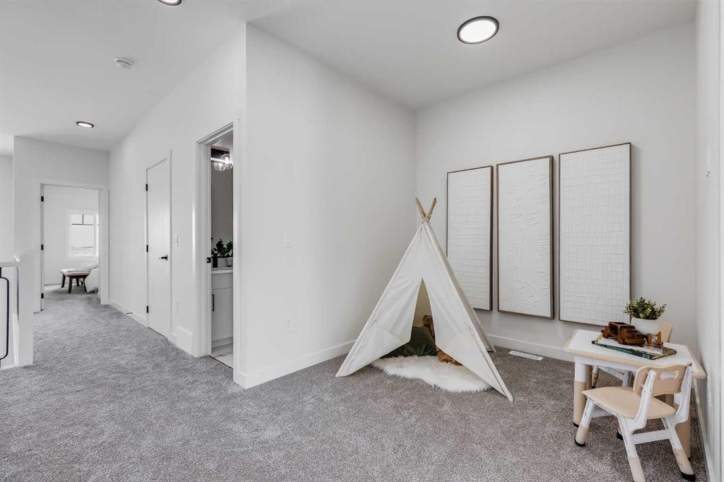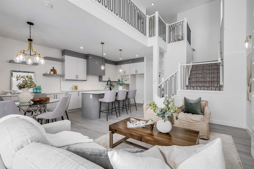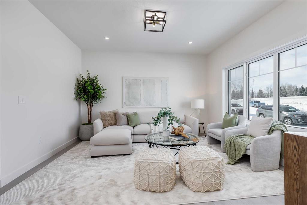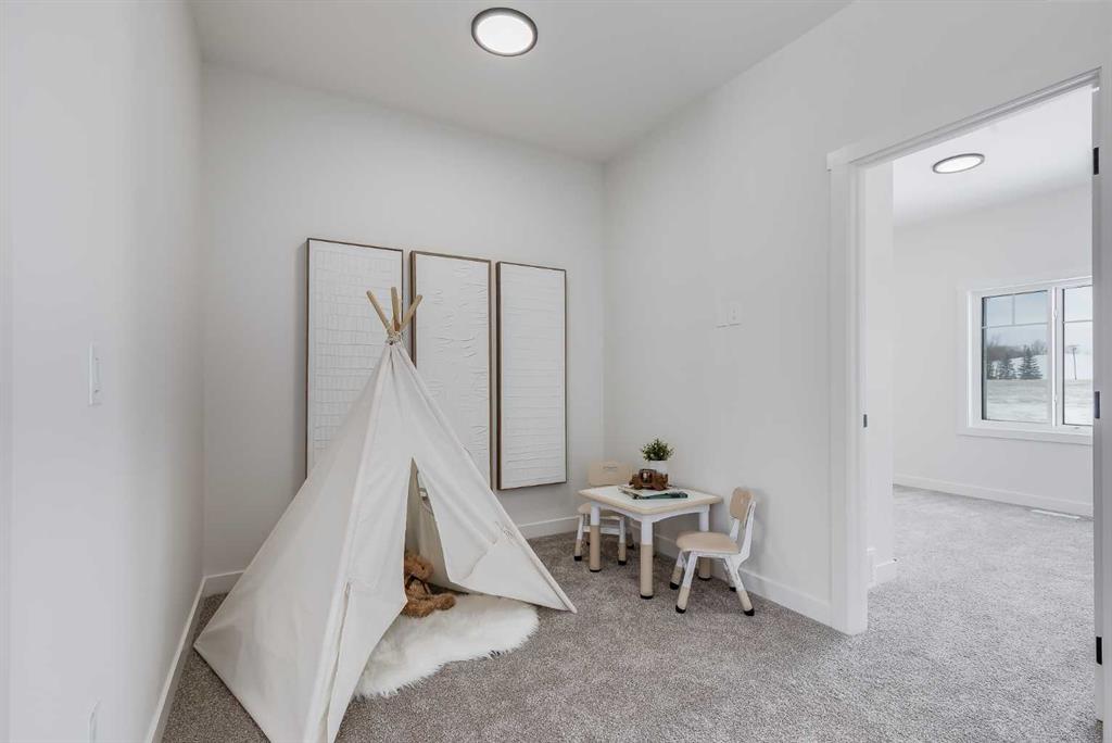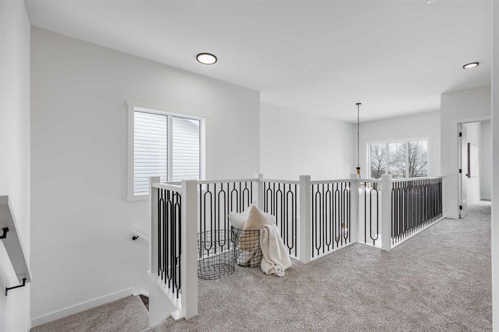 Welcome to your brand new home in Crossfield, where modern design meets everyday comfort. Offering over 1,800 sq. ft. of beautifully crafted living space, this thoughtfully designed home combines upscale finishes with a warm, inviting atmosphere. Step inside to discover soaring ceilings and an open-to-above great room that creates a bright and luxurious feel. The heart of the home features elegant stone countertops, a stylish electric fireplace, and a seamless layout perfect for both relaxing and entertaining. The main floor offers exceptional versatility with a front family room, open-concept design, a spacious kitchen, and a large island—perfect for everyday living and entertaining. Also find an additional main floor bedroom—ideal for guests, a home office, or multi-generational living. A convenient side entrance provides excellent potential for future basement development and added accessibility. Upstairs, you’ll find three spacious bedrooms, including a stunning primary retreat complete with a spa-inspired ensuite featuring dual sinks and a walk-in closet. A generous bonus room adds even more functional space for family time or entertaining. Outside the deck is ready for summer days ahead and enjoy back lane access with a double garage pad, ready for your future garage build. Located just a short drive from Calgary and Airdrie, Crossfield offers the perfect balance of small-town charm and big-city convenience. This is your opportunity to enjoy modern luxury in a welcoming community—your perfect home awaits.