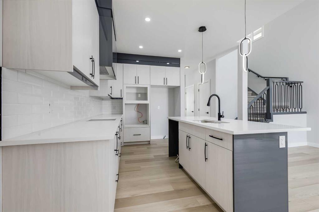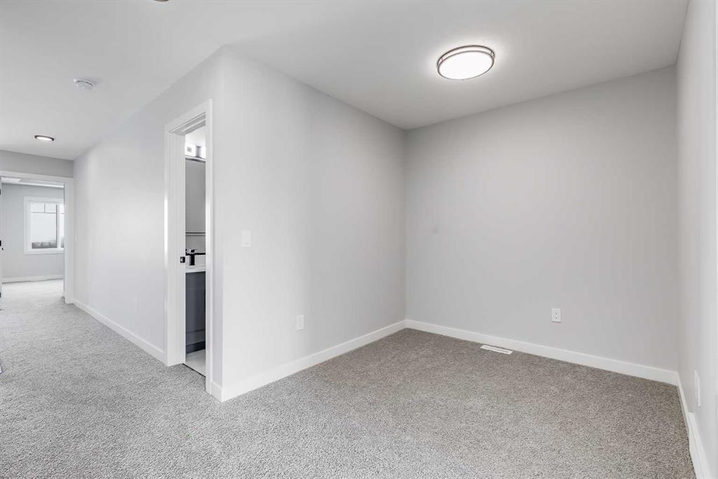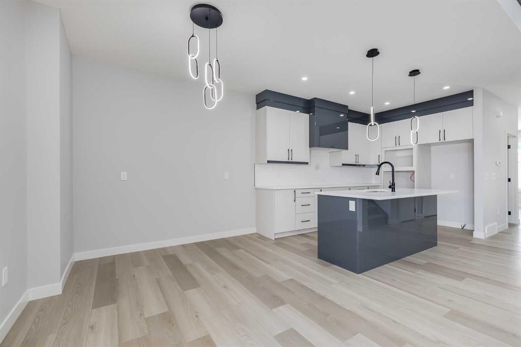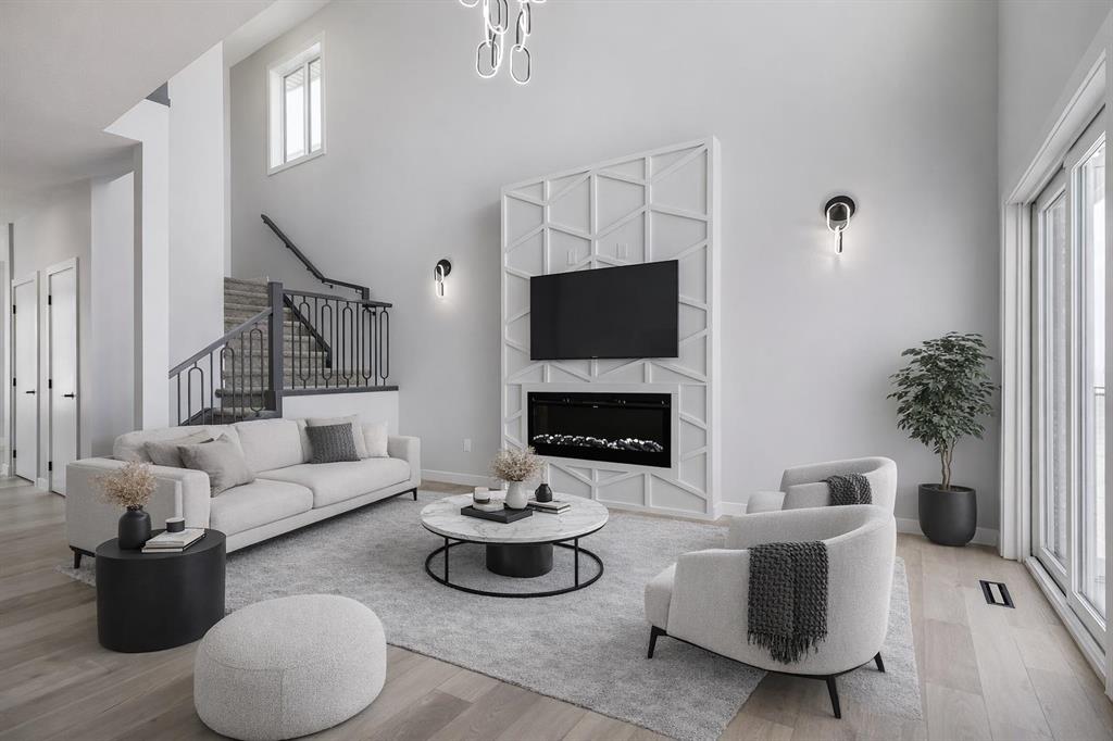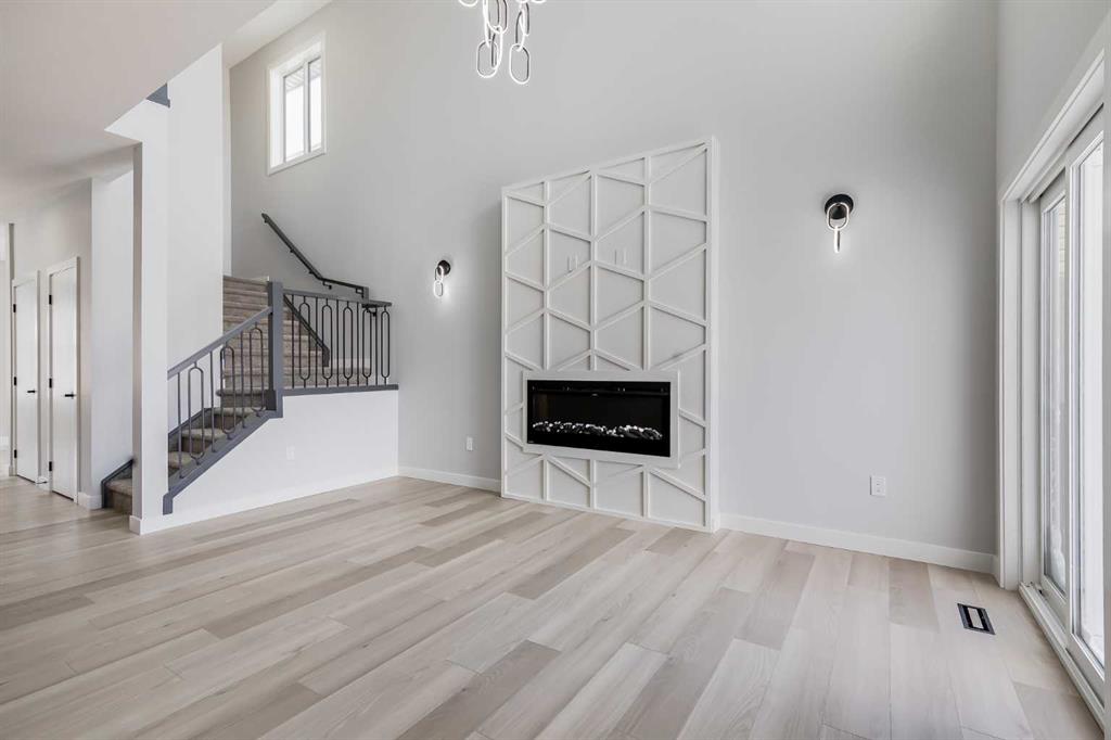 Welcome to your brand new home in Crossfield, where modern design meets everyday comfort. Offering over 1,800 sq. ft. of beautifully crafted living space, this thoughtfully designed home combines upscale finishes with a warm, inviting atmosphere. Step inside to discover soaring ceilings and an open-to-above great room that creates a bright and luxurious feel. The heart of the home features elegant stone countertops, a stylish electric fireplace, and a seamless layout perfect for both relaxing and entertaining. The main floor offers exceptional versatility with a front family room, open-concept design, a spacious kitchen, and a large island—perfect for everyday living and entertaining. Also find an additional main floor bedroom—ideal for guests, a home office, or multi-generational living. A convenient side entrance provides excellent potential for future basement development and added accessibility. Upstairs, you’ll find three spacious bedrooms, including a stunning primary retreat complete with a spa-inspired ensuite featuring dual sinks and a walk-in closet. A generous bonus room adds even more functional space for family time or entertaining. Outside the deck is ready for summer days ahead and enjoy back lane access with a double garage pad, ready for your future garage build. Located just a short drive from Calgary and Airdrie, Crossfield offers the perfect balance of small-town charm and big-city convenience. This is your opportunity to enjoy modern luxury in a welcoming community—your perfect home awaits.