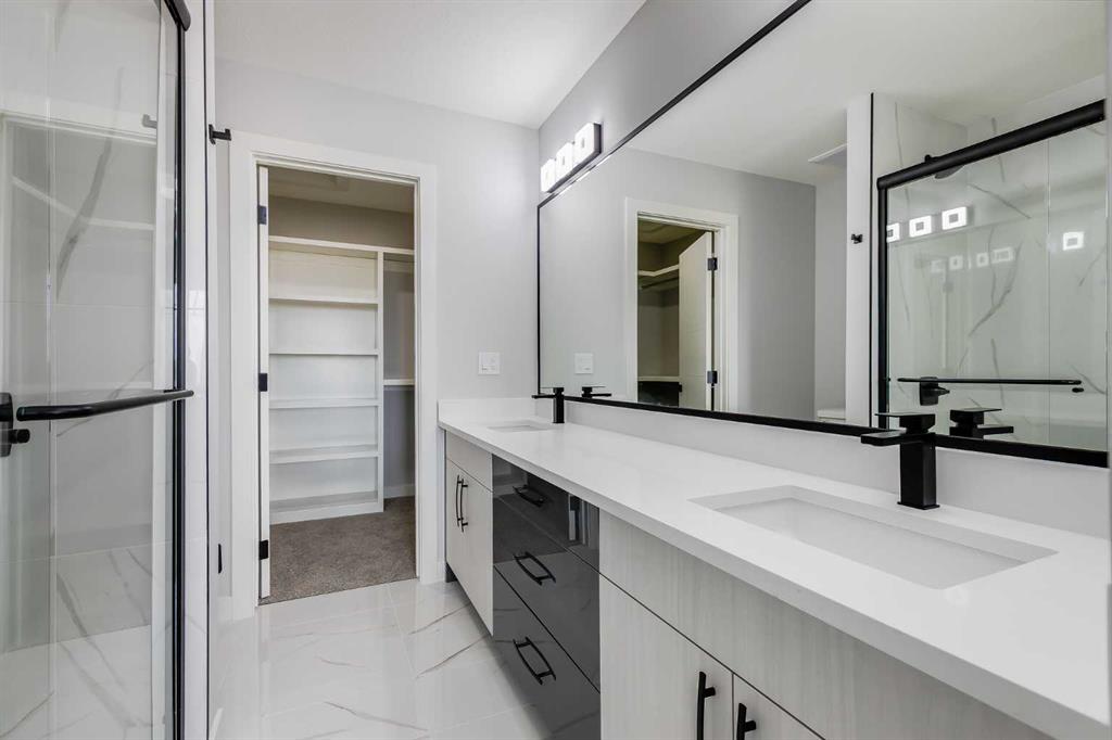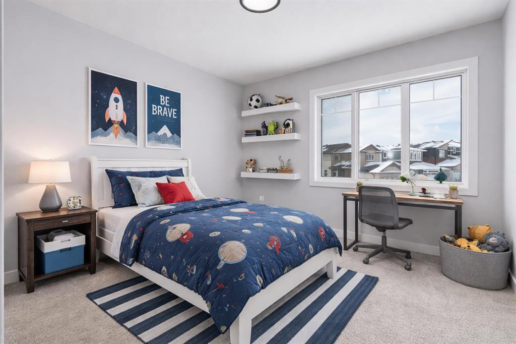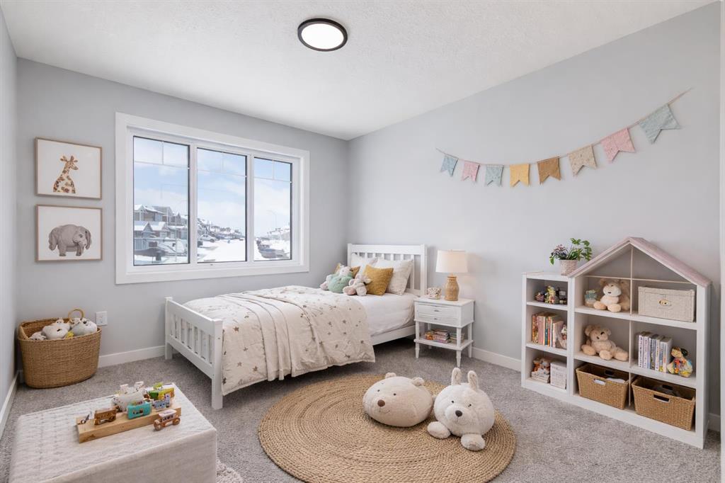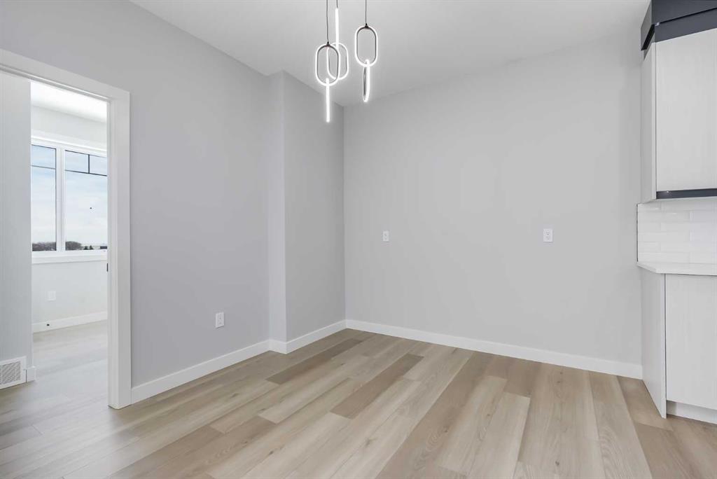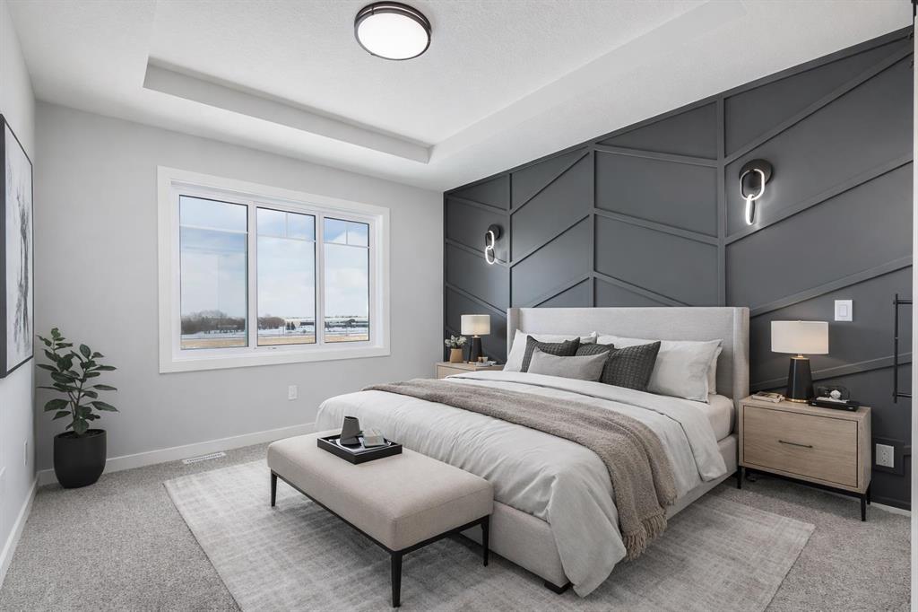 Welcome to your brand new home in Crossfield, where modern design meets everyday comfort. Offering over 1,800 sq. ft. of beautifully crafted living space, this thoughtfully designed home combines upscale finishes with a warm, inviting atmosphere. Step inside to discover soaring ceilings and an open-to-above great room that creates a bright and luxurious feel. The heart of the home features elegant stone countertops, a stylish electric fireplace, and a seamless layout perfect for both relaxing and entertaining. The main floor offers exceptional versatility with a front family room, open-concept design, a spacious kitchen, and a large island—perfect for everyday living and entertaining. Also find an additional main floor bedroom—ideal for guests, a home office, or multi-generational living. A convenient side entrance provides excellent potential for future basement development and added accessibility. Upstairs, you’ll find three spacious bedrooms, including a stunning primary retreat complete with a spa-inspired ensuite featuring dual sinks and a walk-in closet. A generous bonus room adds even more functional space for family time or entertaining. Outside the deck is ready for summer days ahead and enjoy back lane access with a double garage pad, ready for your future garage build. Located just a short drive from Calgary and Airdrie, Crossfield offers the perfect balance of small-town charm and big-city convenience. This is your opportunity to enjoy modern luxury in a welcoming community—your perfect home awaits.