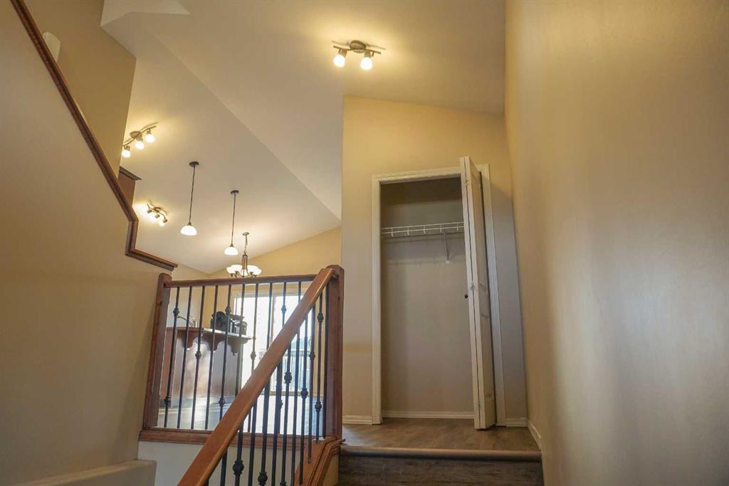 Functional, Adorable & Affordable! Welcome to this well-maintained half duplex in the highly desirable Copperwood subdivision. Step inside to a bright, inviting entry with soaring vaulted ceilings that create an open, airy feel. The main floor features a functional open-concept layout connecting the kitchen, dining, and living areas—perfect for everyday living and entertaining—complete with durable NEW vinyl flooring and a convenient bathroom for guests. Upstairs, overlooking the main living space, is a spacious primary bedroom located above the garage for added privacy. The fully developed lower level offers two additional bedrooms, a full bathroom, and plenty of storage. Cozy carpet throughout the bedrooms and basement adds warmth and comfort. Additional highlights include an attached garage, updated hot water tank, and new kitchen appliances. Best of all, this is not a condo—you own the land with no condo fees. Located on a quiet, low-traffic street in a family-friendly neighbourhood, you’re just minutes from schools, parks, and the YMCA. Don’t miss this one!