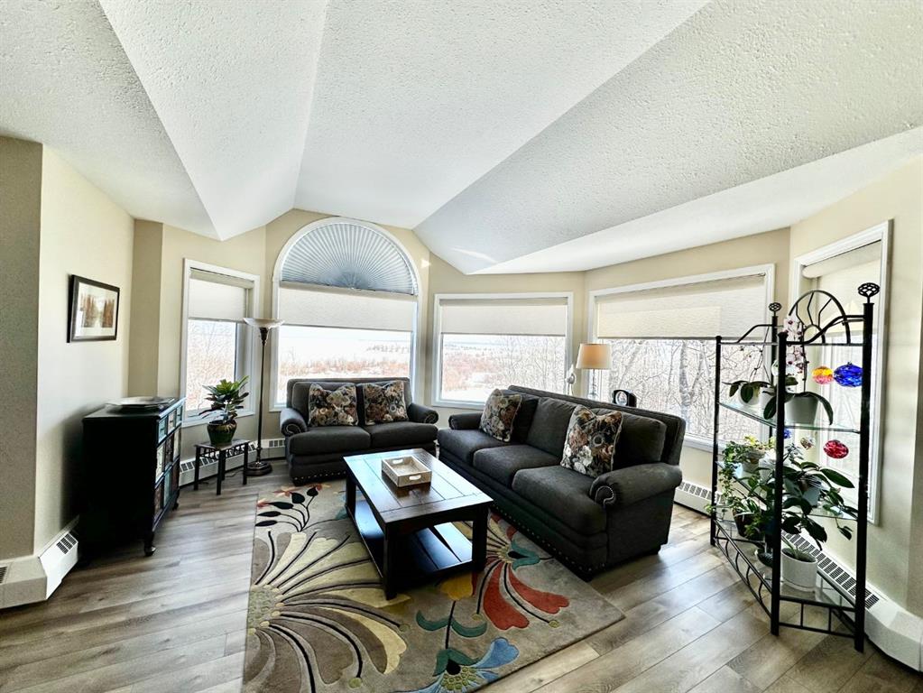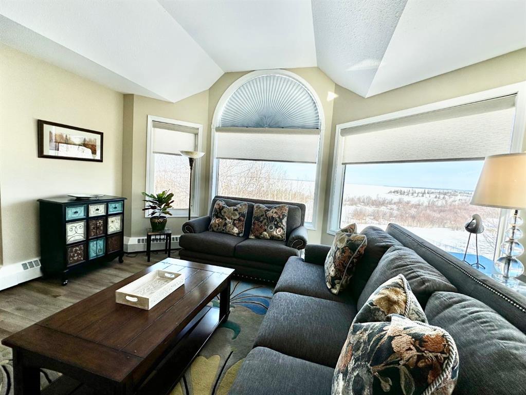 Are you looking for an amazing condo with a view? This top-floor corner suite offers windows on two sides, showcasing panoramic views of Lac La Biche Lake and the surrounding trees. Located in Alexandra Renaissance, this well-maintained complex features a secure, gated and fenced property, covered parking, outdoor storage units, a gazebo, and walking trails. Enjoy true low-maintenance living—no snow removal or lawn care required—just lock up and go with peace of mind. Relax on the large covered balcony while taking in the sights and sounds of nature in this quiet setting on the outskirts of town. Inside, the unit offers spacious rooms and has seen several tasteful upgrades, including new luxury vinyl plank flooring, bright ceramic tile, stainless steel appliances, custom blinds, and fully updated bathrooms with new showers, sinks, and toilets. This clean, well-kept building and beautifully updated unit make for comfortable and easy living. Call today to book your showing!