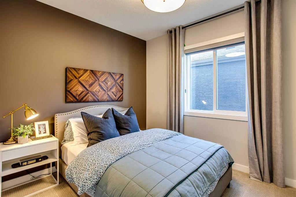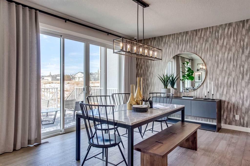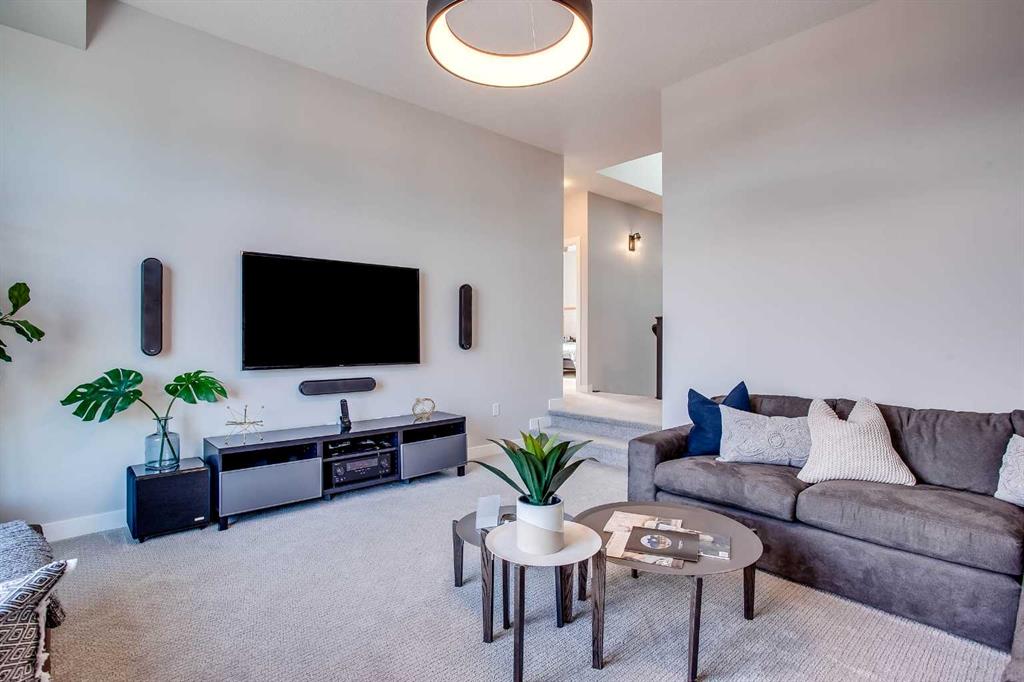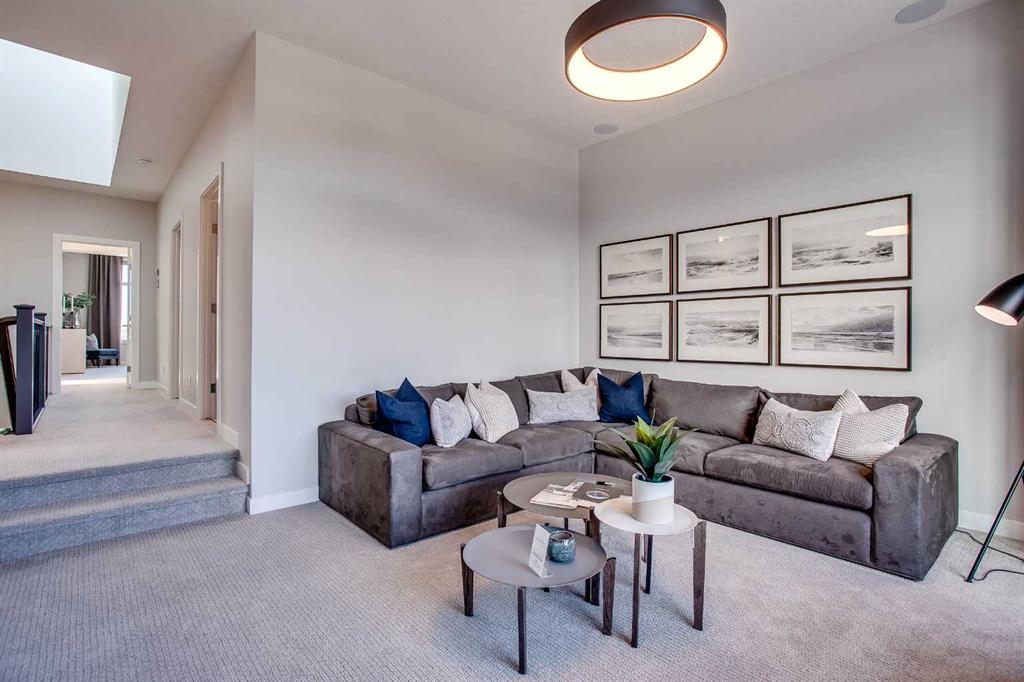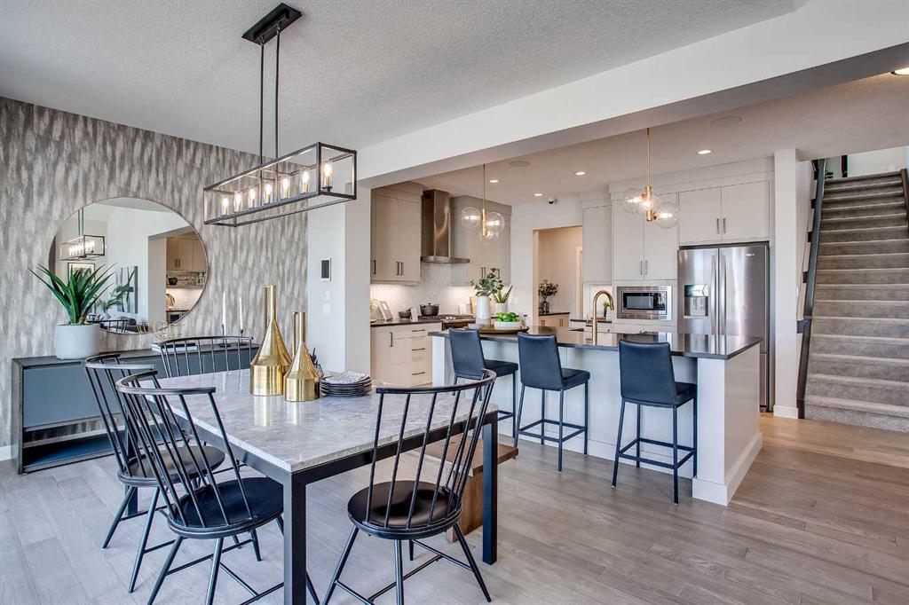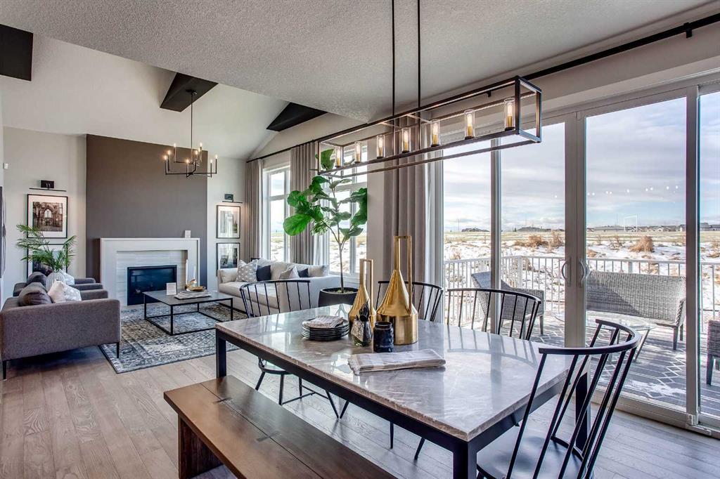 Exquisite Former Show Home with Majestic Mountain Views. Welcome to the "Hennessy III" by Calbridge Homes, an award-winning former show home where sophisticated designer upgrades meet an unparalleled lifestyle location. Backing onto a serene green space with a coveted west-facing backyard, this residence offers a front row seat to breathtaking Rocky Mountain sunsets. The interior is bathed in natural light, highlighted by wide-plank hardwood floors and custom designer lighting throughout an open-concept layout masterfully planned for both intimate family life and grand-scale entertaining. The gourmet chef's kitchen serves as the heart of the home, featuring full-height cabinetry, a massive breakfast bar island, premium stainless steel appliances with a gas range, and a substantial butler's pantry for seamless organization. In the grand great room, soaring vaulted ceilings with wood beams and a tiled fireplace create a sense of scale, while a signature wall of windows perfectly frames the outdoor oasis. For those seeking a quiet workspace, elegant French doors lead to a dedicated den perfect for a sophisticated home office. The upper level is a true sanctuary of comfort, led by a primary retreat featuring a massive walk-in closet and a spa-inspired ensuite with dual vanities, an oversized shower, and a deep soaker tub. A versatile central bonus room offers the ideal loft space for movie nights, complemented by three additional bright bedrooms, a full family bathroom, and a conveniently located laundry room. The professionally finished basement significantly extends the living space, offering a massive recreation area and a fully equipped wet bar with a beverage fridge. A large fifth bedroom and full bathroom provide a private suite for guests or older children. Complete with a generous triple-car garage, this home is close to the incredible walking paths that lead you throughout the parks and playgrounds this community has to offer. Enjoy unbeatable convenience being just minutes from the C-Train, YMCA, community center, and a vibrant array of local shops and dining. Experience the pinnacle of craftsmanship and scenery in this rare property. Call today for your personal viewing.