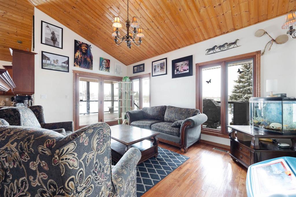 Welcome to 200 Weiss Drive - where country living meets exceptional functionality on a sprawling 8.03 ACRE property, yes 8.03 ACRES. A stunning home with a massive 40 x 60 shop and space for the entire family, this is a rare opportunity in the highly sought-after Saprae Creek Estates. Backing onto a peaceful municipal reserve, this impressive bi-level home offers just over 3,800 square feet of total living space, featuring six bedrooms and three full bathrooms. Step inside to a grand foyer with vaulted ceilings and quality millwork that immediately sets the tone. The main level is warm and inviting, showcasing hardwood floors, striking wood-beamed ceilings, and a spacious kitchen complete with stainless steel appliances and a premium Wolf gas stove. At the heart of the home, the great room features a stunning two-way wood-burning fireplace, seamlessly connecting the living and dining areas- perfect for both everyday living and entertaining. This level also includes three bedrooms and two bathrooms, highlighted by the generous primary suite with dual sinks and a beautifully finished stone shower. Downstairs, the fully developed basement offers incredible additional living space with a massive recreation room, complete with a cozy wood stove and built-in bar. You’ll also find two additional well-sized bedrooms, a four-piece bathroom, and a large laundry room with convenient separate access to the backyard. The attached garage has been thoughtfully converted into a versatile living area, currently used as a music room and an additional bedroom. With existing hookups for a full kitchen and bathroom, it offers excellent potential for a private suite or guest quarters. Step outside to enjoy the wraparound covered composite deck with glass railings, providing access from the not only the living room but also the primary bedroom and secondary main level bedroom! Perfect for easy deck access to relax and take in the natural surroundings. For those who need more than just a home - welcome to the ULTIMATE SHOP. This incredible 40 x 60 space is fully equipped with in-floor heat, 18-foot ceilings, and a 14-foot overhead door. Additional features include an upper-level gym with its own gas heater, a storage mezzanine, half bathroom, laundry area, dog washing station, a secondary 8-foot garage door, and built-in surround sound. Additional highlights of this exceptional property include a paved driveway, central air conditioning, and central vacuum. The home is wired and ready for a hot tub, with major mechanical updates already taken care of, including a hot water tank (2024) and furnace (2025). The property is also posted and ready for fencing, and features a beautifully designed fire pit area, perfect for enjoying the outdoors year-round. The list goes on! SPEC SHEET AVAILABLE. A truly special piece of property - don’t let it pass you by. Schedule a private showing today!