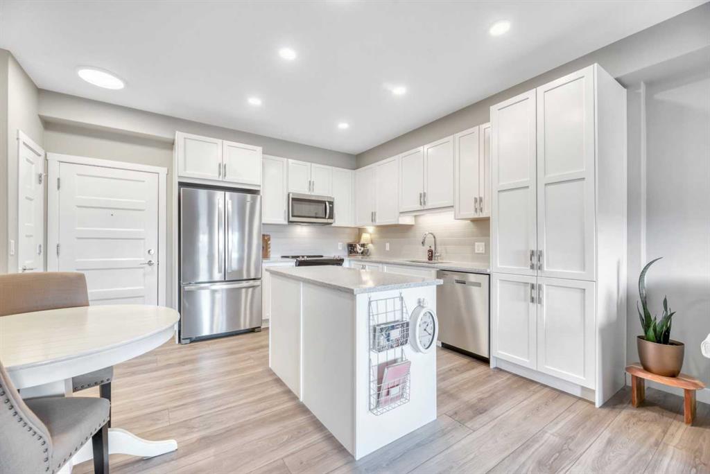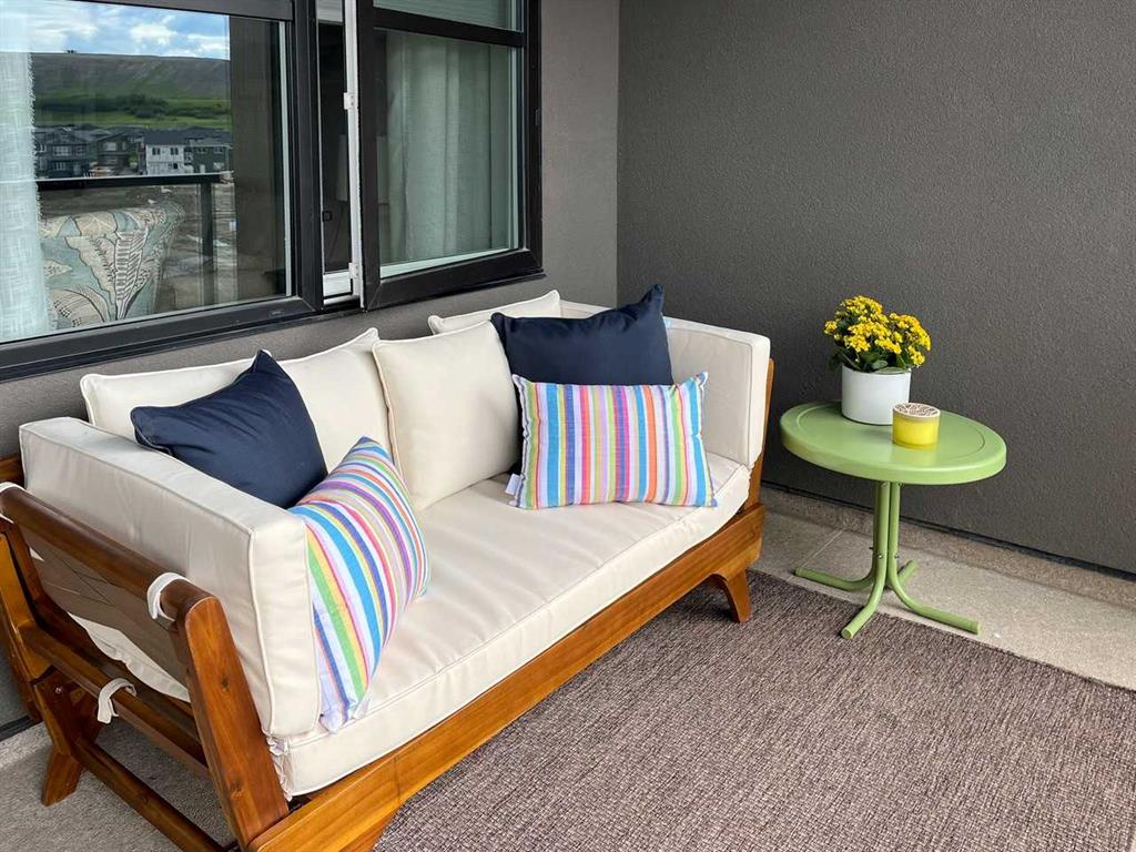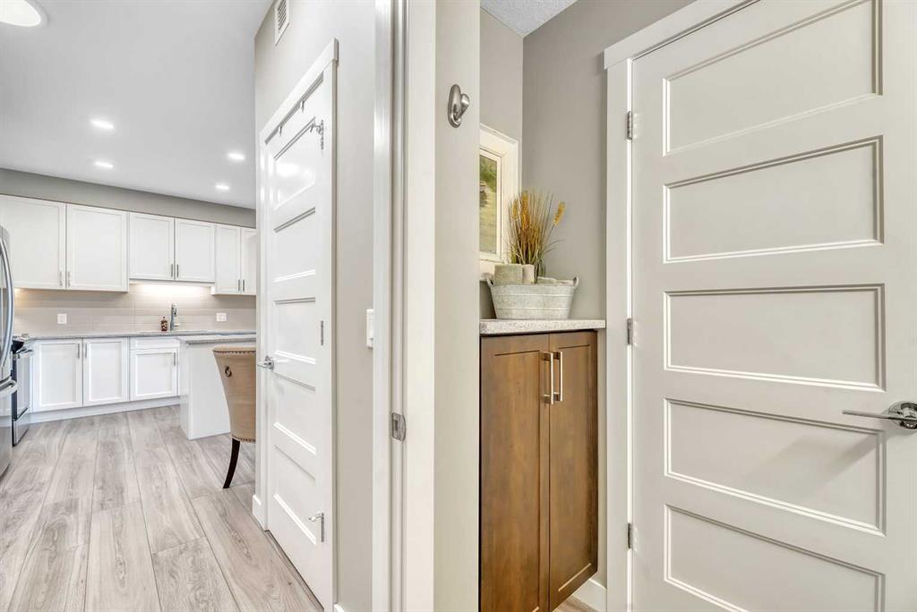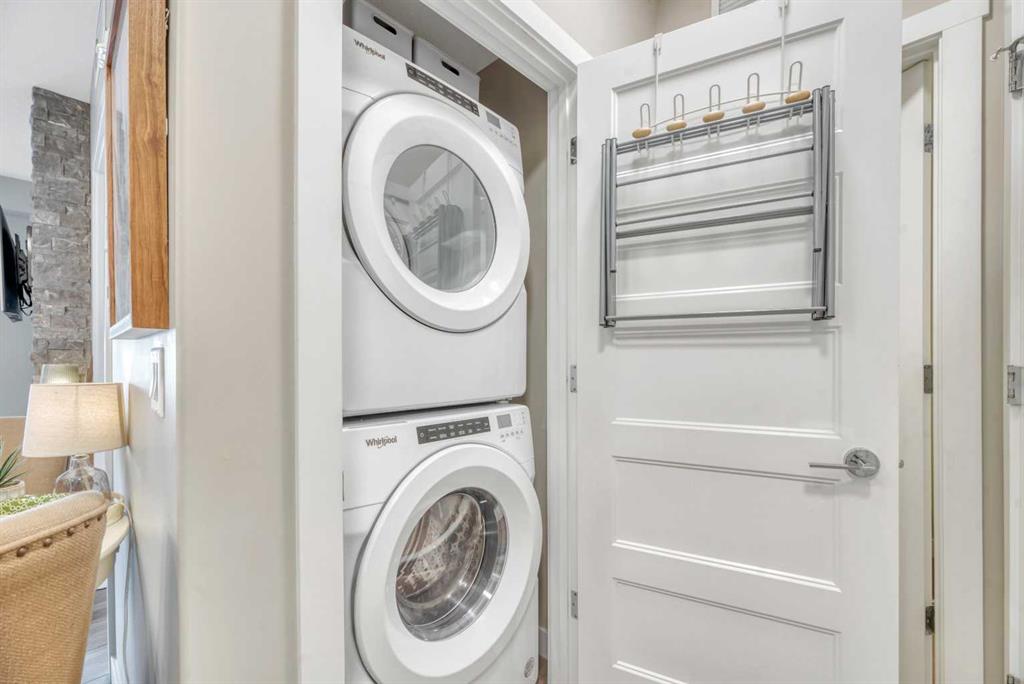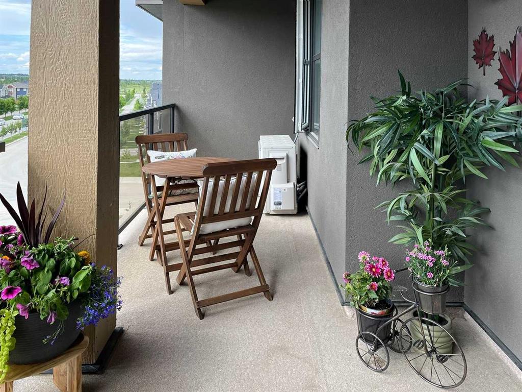 Beautifully upgraded top-floor 1-bedroom, 1-bathroom condo in the sought-after Bow360 building, located in the prestigious community of Wolf Willow—a premier golf course neighbourhood in SE Calgary. Perfectly suited for a first-time buyer or young professional, this stunning home offers a bright and airy open-concept layout with 9-foot ceilings, large windows, and modern designer finishes throughout. The kitchen features crisp white cabinetry, upgraded flooring, and a clean, contemporary aesthetic that flows seamlessly into the living space. Cozy up by the elegant stone-faced gas fireplace or step out onto your spacious west-facing balcony to enjoy breathtaking sunset views. Additional features include in-suite laundry, air conditioning, titled underground parking, secure storage, and custom built-in closet organizers for added functionality and style. Low condo fees include everything except electricity, making this an easy and affordable lifestyle choice. Surrounded by incredible amenities, including the Blue Devil Golf Course, scenic walking and biking trails, and quick access to Stoney Trail and Deerfoot Trail—this location truly has it all. This is the perfect blend of style, comfort, and convenience—an ideal place to call home.