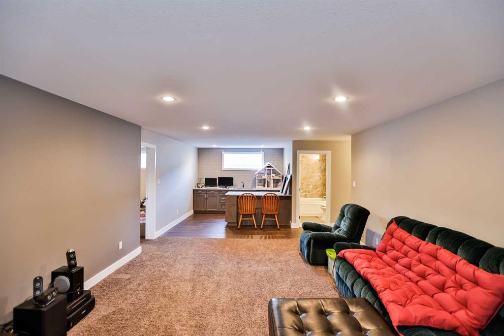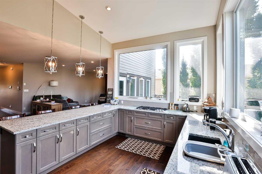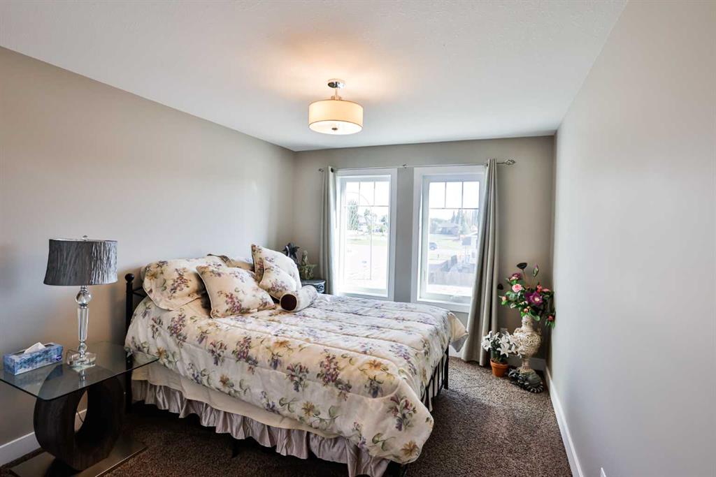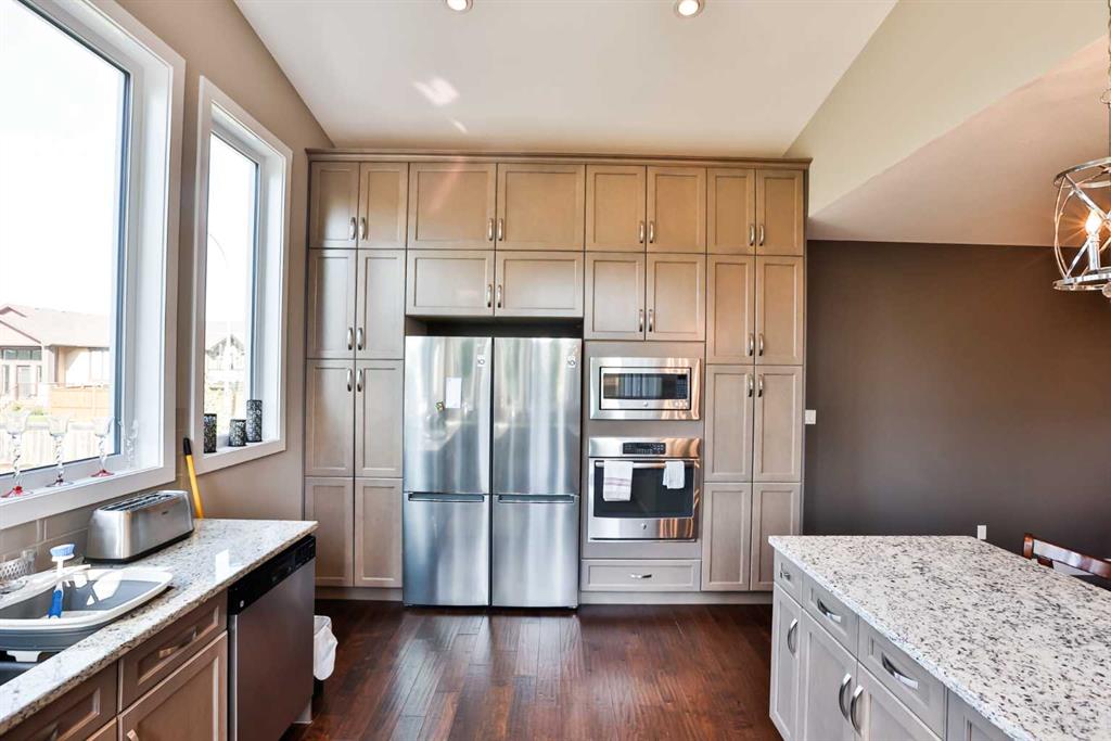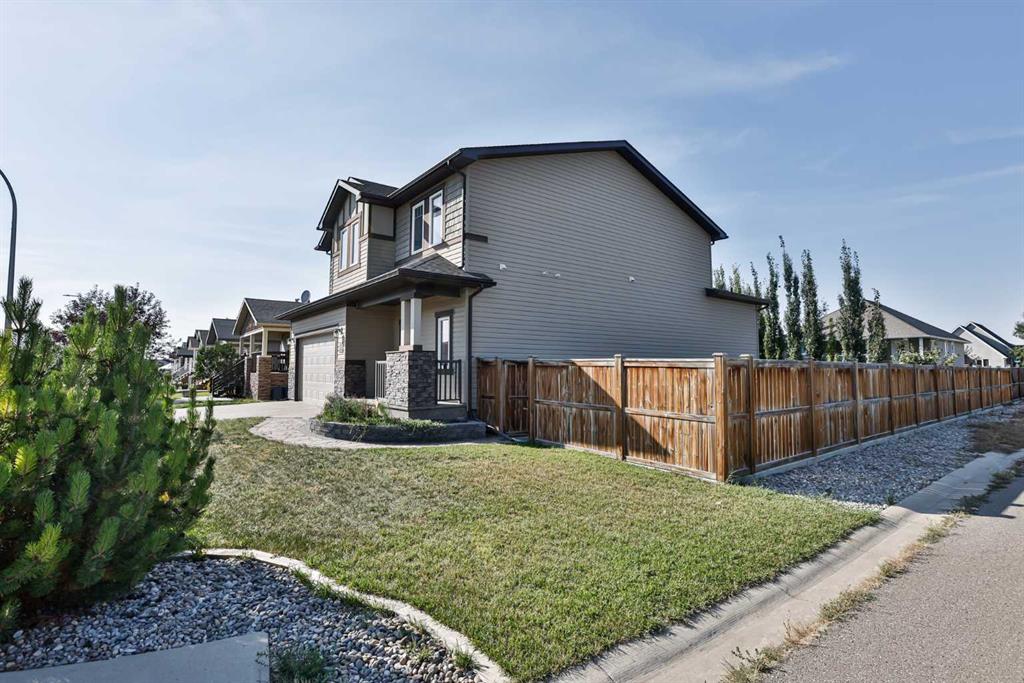 Immaculate, Fully Finished Two-Storey with Exceptional Upgrades! This stunning 2,463 sq. ft. home shows like new and has been meticulously maintained throughout. From the moment you enter the spacious foyer—complete with a large walk-in closet and discreetly located half bath—you’ll appreciate the thoughtful design and quality finishes. The kitchen is truly the heart of the home, featuring soaring vaulted ceilings and expansive windows that flood the space with natural light. Wrapped in granite countertops, it offers ample prep and entertaining space, along with a downdraft gas cooktop, built-in fridge/freezer, wall oven and microwave, and generous pantry storage. The living room is warm and inviting, highlighted by a floor-to-ceiling tiled gas fireplace with a modern mantle. Large windows lead to the covered deck, finished with duradek and a gas line for your BBQ. The backyard is beautifully set up with an interlocking brick patio, spacious yard, and a tucked-away shed—perfect for outdoor enjoyment. Upstairs, you’ll find a well-designed layout including a bonus room, dedicated office/workspace, and convenient linen storage. Two spacious front bedrooms are complemented by an impressive primary suite that spans the entire rear of the home. This retreat features a large walk-in closet that connects directly to the laundry room, and a luxurious ensuite complete with double vanity, soaker tub, oversized dual-head shower, and private water closet with bidet. The fully developed basement offers additional living space with a large family room, full bathroom, guest bedroom, and a stylish granite wet bar with two beverage fridges—ideal for entertaining. Located in the welcoming community of Nobleford, just 20 minutes from Lethbridge, you’ll enjoy small-town living with convenient access to amenities, K–12 schooling, parks, and nearby recreation including Keho Lake and local golf. A rare opportunity to own a turnkey, high-quality home in a fantastic location. Contact your favourite REALTOR® today to book your private showing!