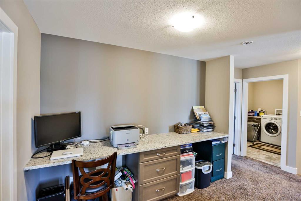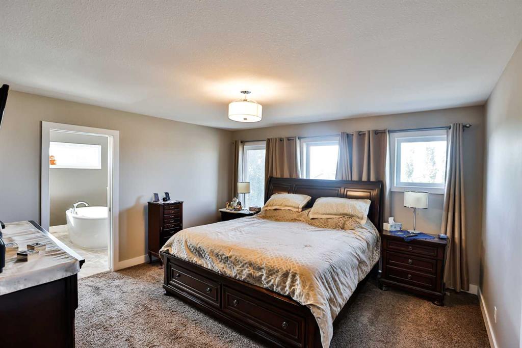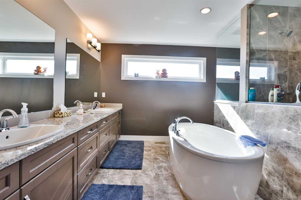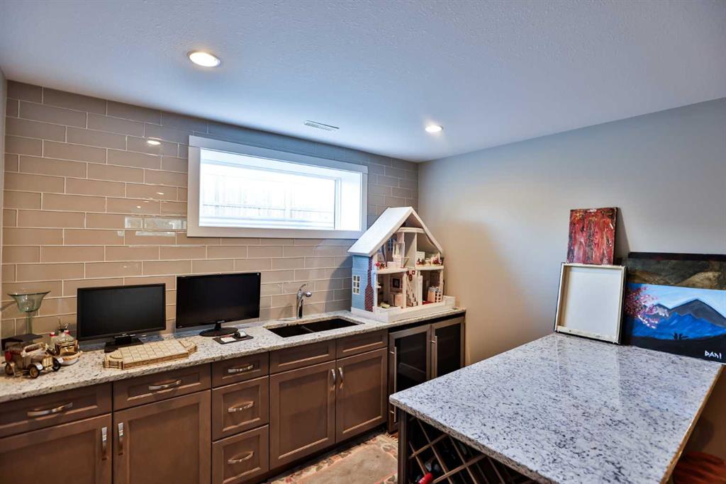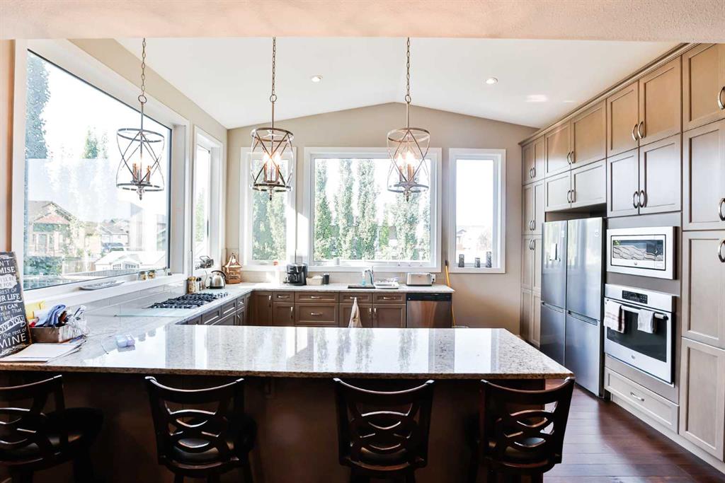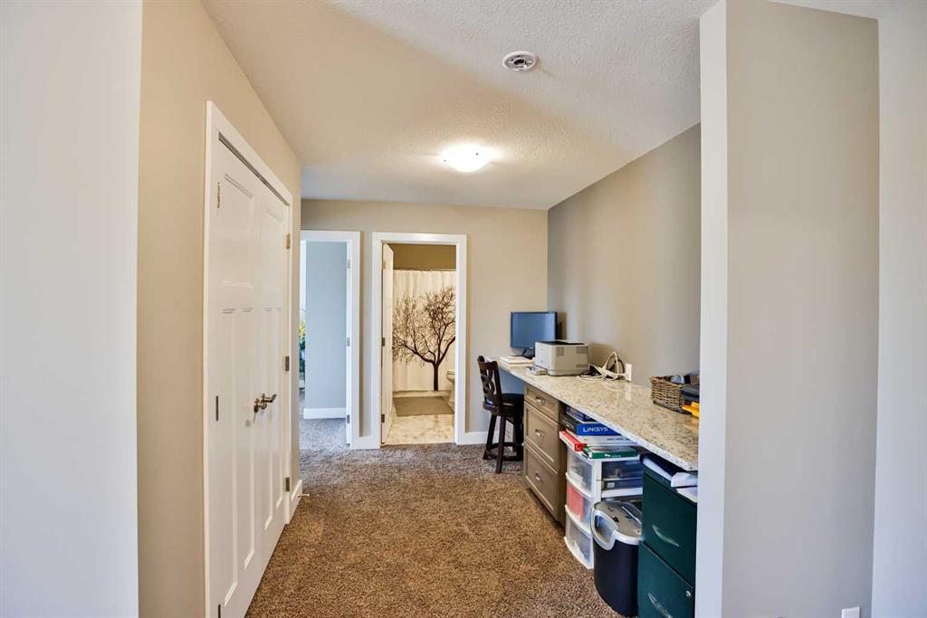 Immaculate, Fully Finished Two-Storey with Exceptional Upgrades! This stunning 2,463 sq. ft. home shows like new and has been meticulously maintained throughout. From the moment you enter the spacious foyer—complete with a large walk-in closet and discreetly located half bath—you’ll appreciate the thoughtful design and quality finishes. The kitchen is truly the heart of the home, featuring soaring vaulted ceilings and expansive windows that flood the space with natural light. Wrapped in granite countertops, it offers ample prep and entertaining space, along with a downdraft gas cooktop, built-in fridge/freezer, wall oven and microwave, and generous pantry storage. The living room is warm and inviting, highlighted by a floor-to-ceiling tiled gas fireplace with a modern mantle. Large windows lead to the covered deck, finished with duradek and a gas line for your BBQ. The backyard is beautifully set up with an interlocking brick patio, spacious yard, and a tucked-away shed—perfect for outdoor enjoyment. Upstairs, you’ll find a well-designed layout including a bonus room, dedicated office/workspace, and convenient linen storage. Two spacious front bedrooms are complemented by an impressive primary suite that spans the entire rear of the home. This retreat features a large walk-in closet that connects directly to the laundry room, and a luxurious ensuite complete with double vanity, soaker tub, oversized dual-head shower, and private water closet with bidet. The fully developed basement offers additional living space with a large family room, full bathroom, guest bedroom, and a stylish granite wet bar with two beverage fridges—ideal for entertaining. Located in the welcoming community of Nobleford, just 20 minutes from Lethbridge, you’ll enjoy small-town living with convenient access to amenities, K–12 schooling, parks, and nearby recreation including Keho Lake and local golf. A rare opportunity to own a turnkey, high-quality home in a fantastic location. Contact your favourite REALTOR® today to book your private showing!