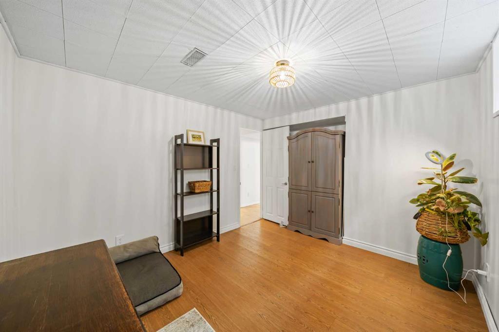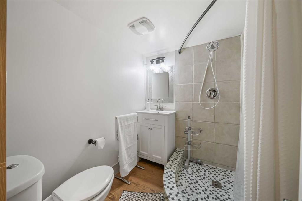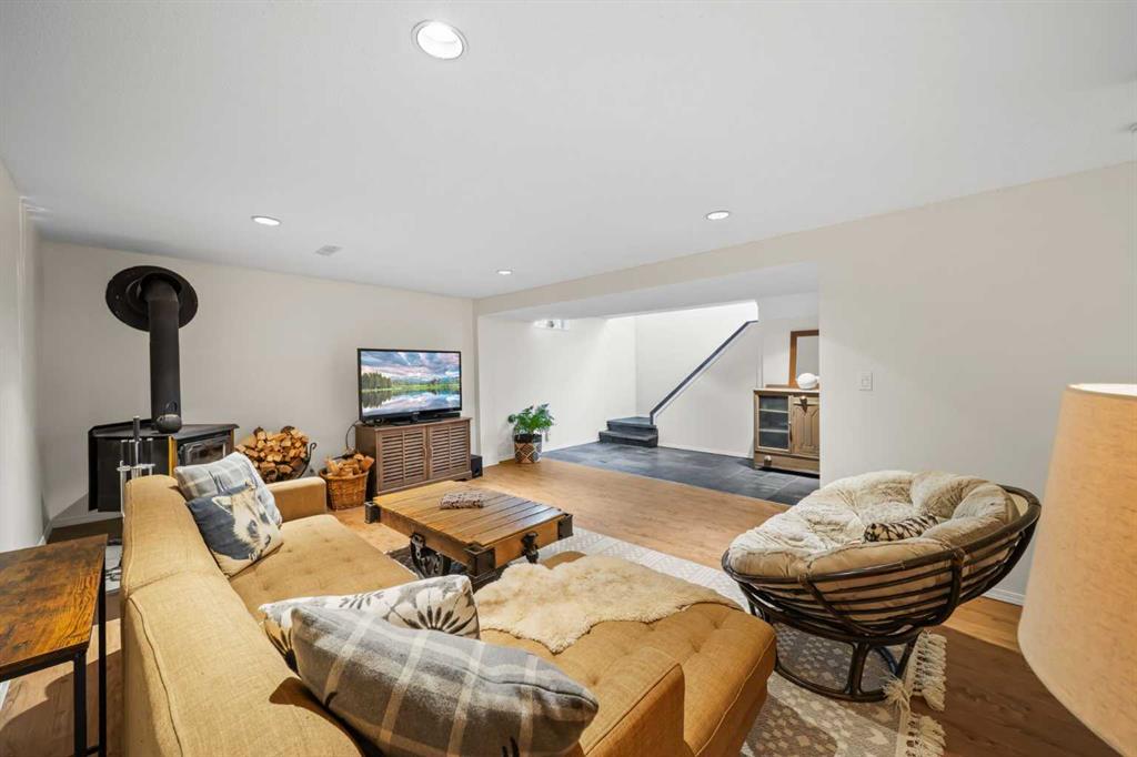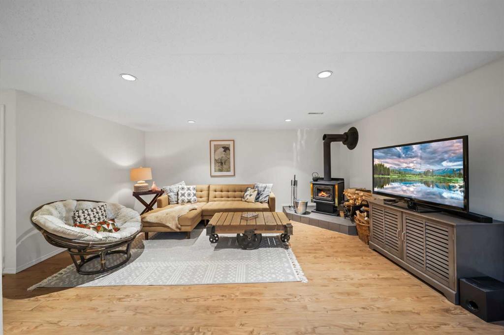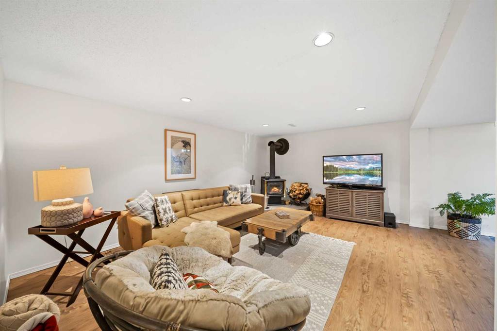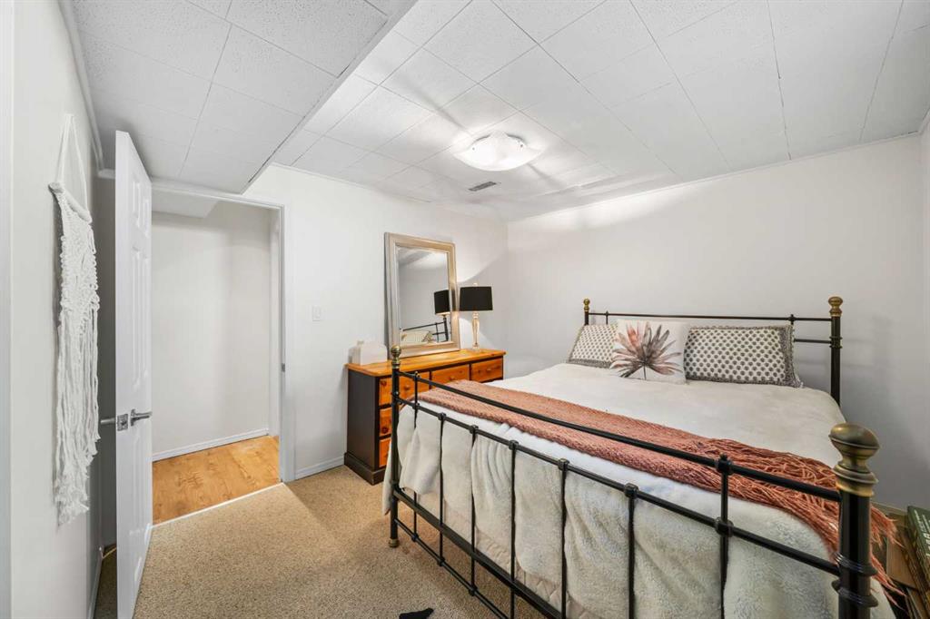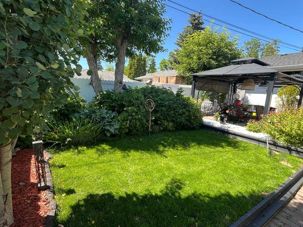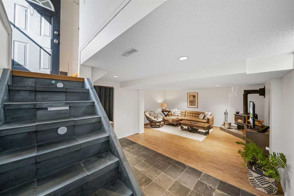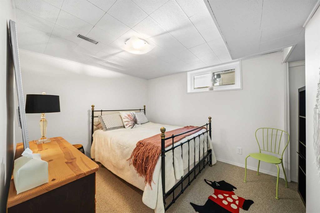 This well-maintained 1960 bungalow offers over 1,900 sq. ft. of developed living space, featuring 5 bedrooms (3 up, 2 down) and 2 full bathrooms. The main floor showcases gleaming original hardwood flooring, a welcoming and spacious living room and a bright dining area. Enjoy the benefit of a freshly painted main floor, along with an updated 4-piece bathroom. The sun-filled, south-facing kitchen opens through patio doors to a private backyard retreat. Thoughtfully updated in 2014, the kitchen features classic cabinetry, luxurious granite countertops, upgraded appliances, and a gas stove—perfect for everyday living and entertaining. A separate side entrance provides access to both levels, offering excellent potential for an additional living space within the current functional layout. The fully finished basement includes 2 bedrooms, a 3-piece bathroom, a versatile flex room, and a large family room complete with a cozy wood-burning stove—ideal for relaxing or movie nights with family & friends. The mechanical/laundry room includes a newer washer and dryer, a brand-new hot water tank (December), and a regularly serviced furnace. Significant updates over the years include newer windows, laminate flooring, and shingles approximately 10 years old. Enjoy the beautifully maintained, sunny south-facing yard where outdoor living extends the home with a true backyard oasis. An oversized garage features a new overhead door, two openers with smart technology, and an extended parking pad for guests. A landscaped berm with mature trees behind the property provides a natural buffer from 17 Ave and the LRT, creating a surprisingly quiet and private setting. Pre-inspection completed with key items addressed, offering added confidence for buyers. Ideally located with unbeatable proximity to downtown and an easy commute, this home is close to transit with a short walk to the LRT, and just minutes to Westbrook Mall, Edworthy Park, schools (including French Immersion), shopping, and services—with quick access west to the mountains. Move in before summer and start enjoying your new home!