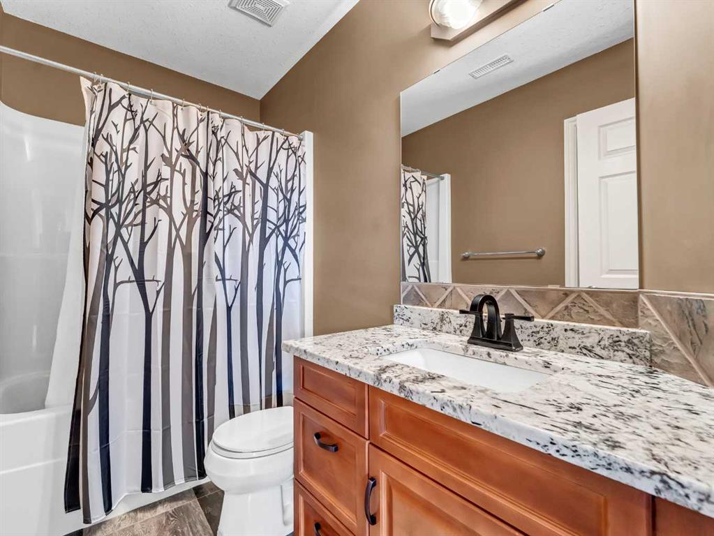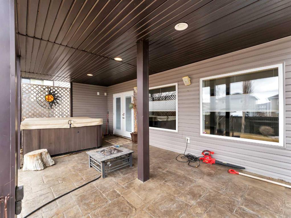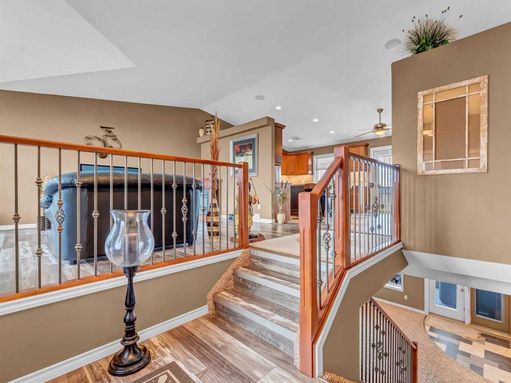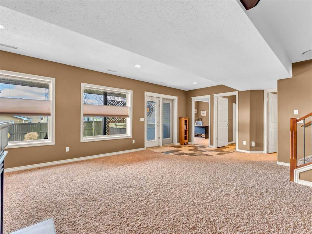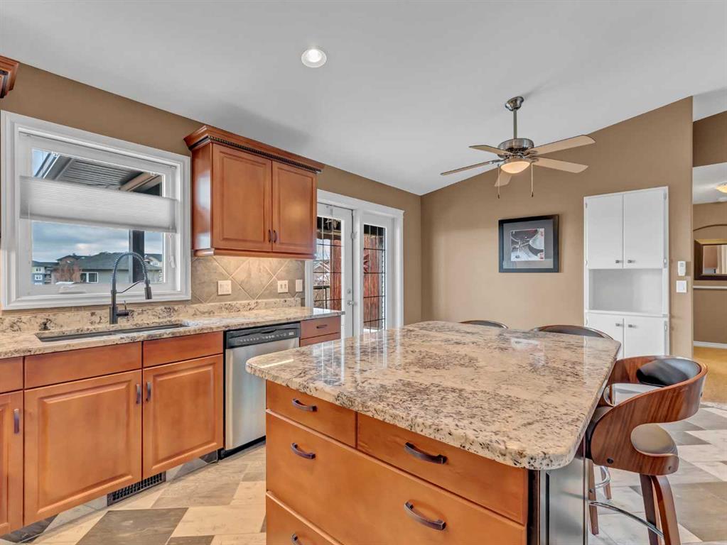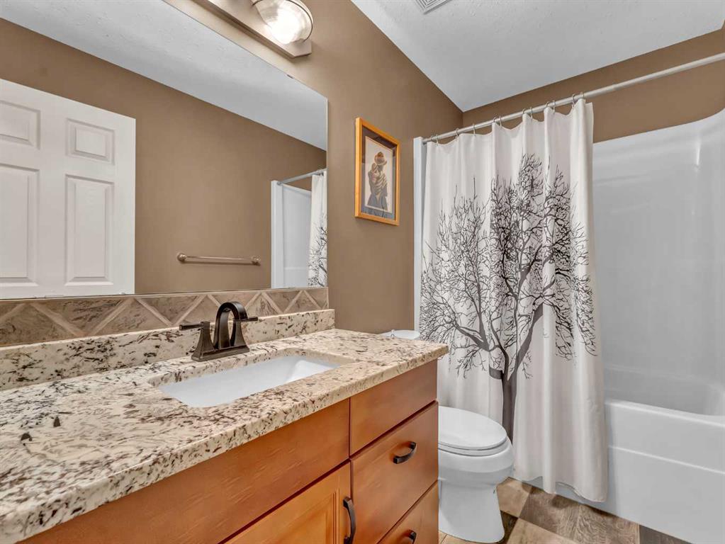 Welcome to 33 Terrace Green NE, a beautifully maintained walkout bungalow nestled in a quiet cul-de-sac with a park conveniently located just across the street. This quality-built home offers 1,309 sq ft of thoughtfully designed living space, showcasing exceptional craftsmanship and upgraded finishes throughout. The main floor features a bright, open layout highlighted by large windows that flood the home with natural light. The upgraded kitchen by Wood Visions is a standout, complete with stunning granite countertops, a corner pantry, and ample cabinetry—perfect for both everyday living and entertaining. Elegant upgraded flooring flows through the front entry, kitchen, and living room, enhancing the home’s warm and inviting feel. This home offers two bedrooms on the main level, including a spacious primary retreat with private access to the upper deck and a 3-piece ensuite featuring a walk-in shower. The fully developed walkout lower level expands your living space with a cozy 3-way gas fireplace, entertainment area with projector and wired sound, a 4-piece bathroom, and direct access to a beautifully designed concrete patio—complete with a hot tub for ultimate relaxation. Additional features include a central sound system throughout, quality window coverings, and a finished, heated garage. The exterior is just as impressive, with a maintenance-free front yard, beautiful fountain out back, underground sprinklers, and mature trees providing both beauty and privacy. Enjoy outdoor living on the covered upper deck with awning or the professionally finished lower patio and driveway. This home offers the perfect blend of comfort, quality, and location—an exceptional opportunity in a sought-after neighborhood.