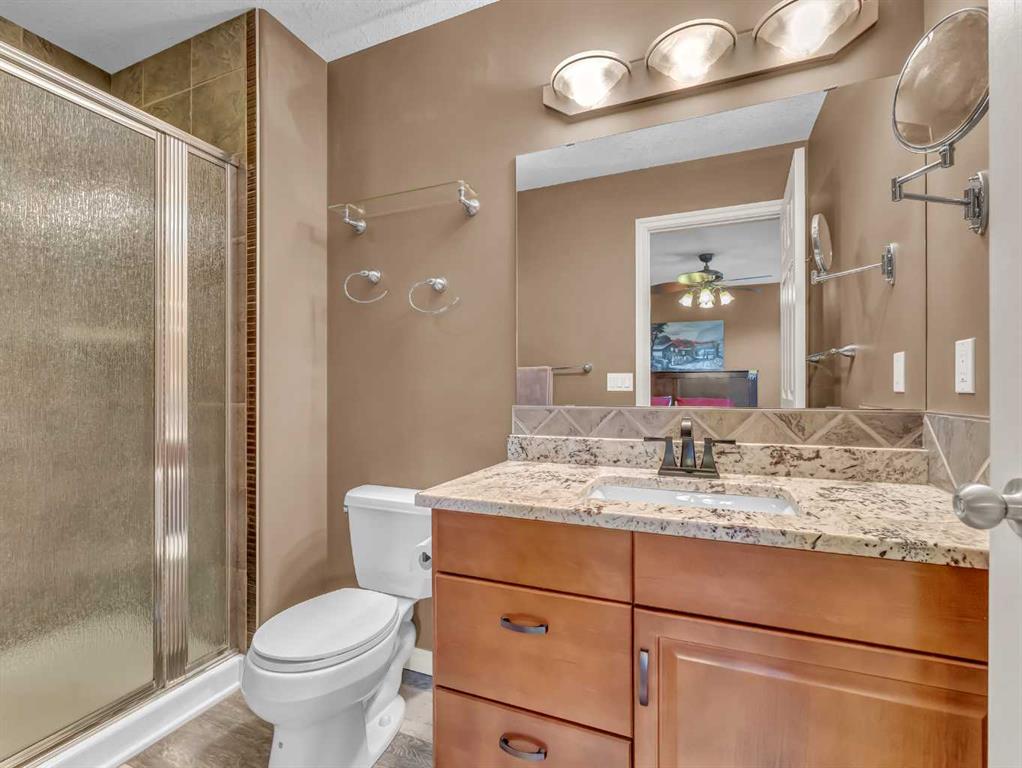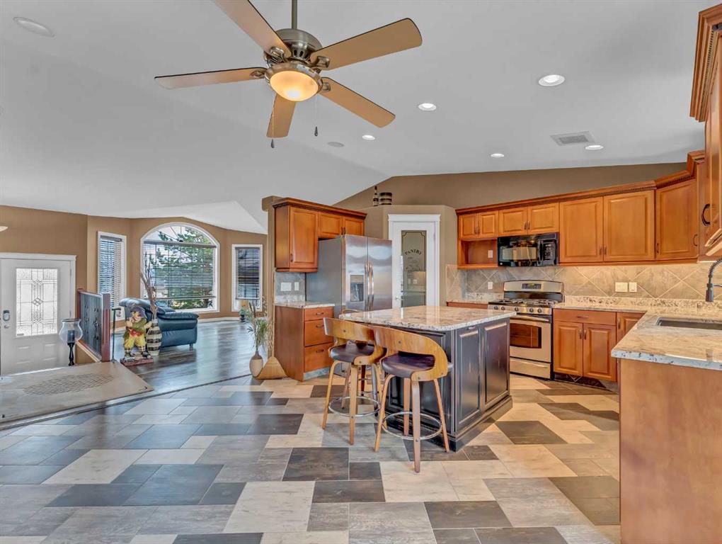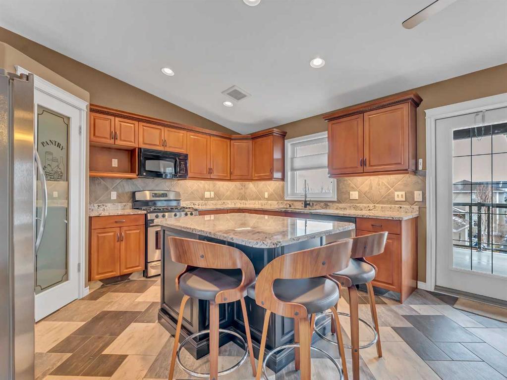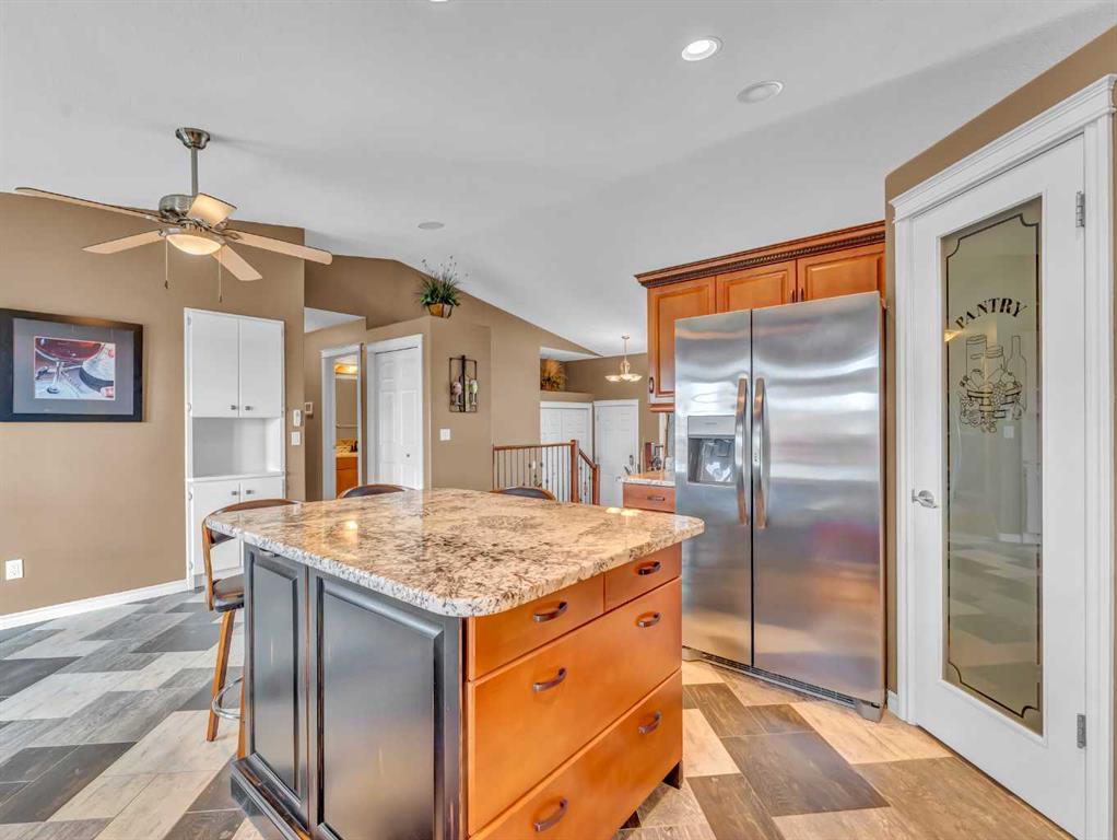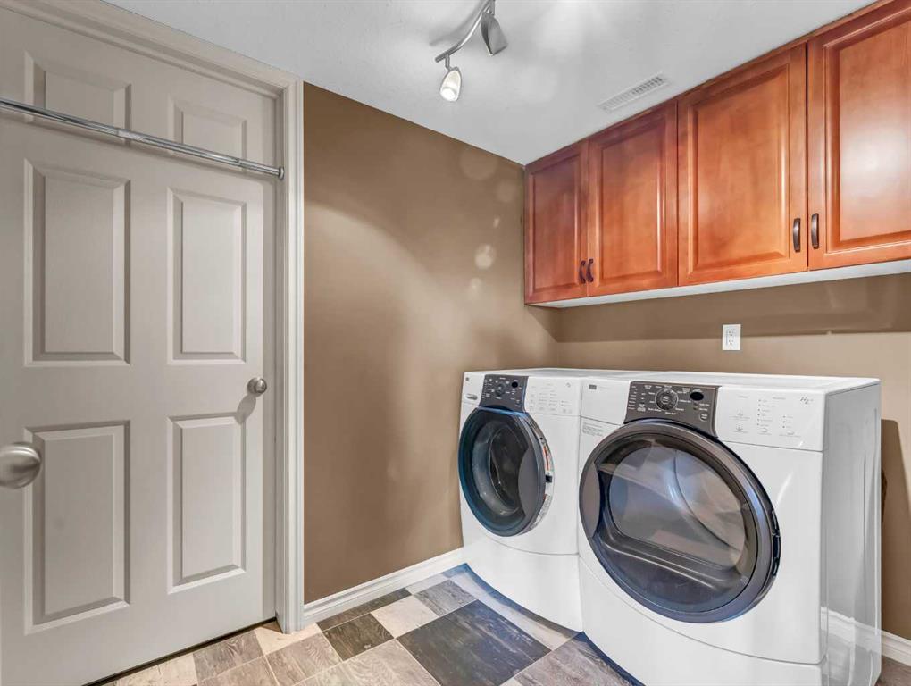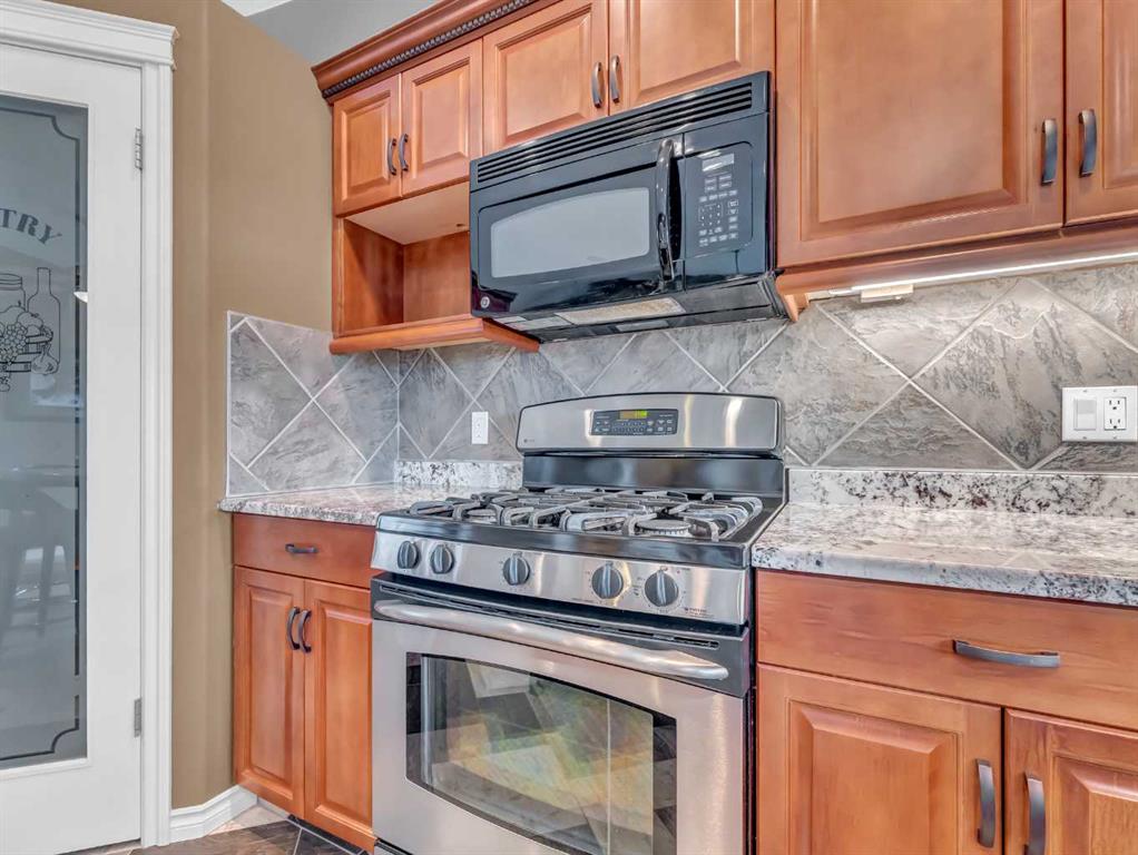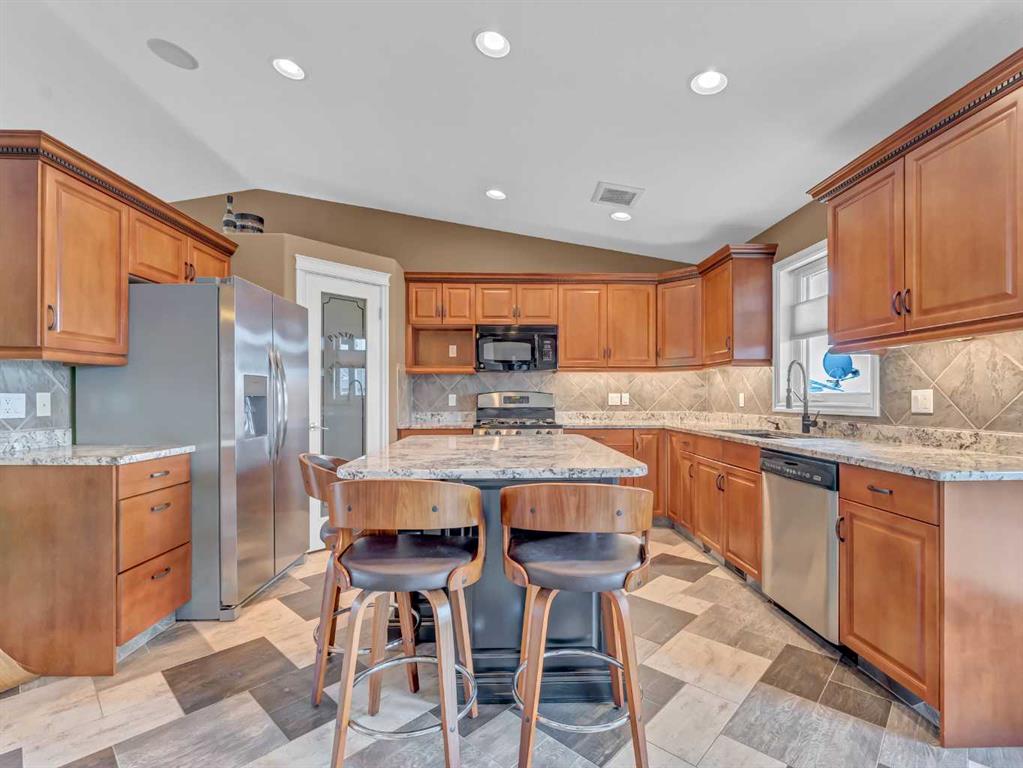 Welcome to 33 Terrace Green NE, a beautifully maintained walkout bungalow nestled in a quiet cul-de-sac with a park conveniently located just across the street. This quality-built home offers 1,309 sq ft of thoughtfully designed living space, showcasing exceptional craftsmanship and upgraded finishes throughout. The main floor features a bright, open layout highlighted by large windows that flood the home with natural light. The upgraded kitchen by Wood Visions is a standout, complete with stunning granite countertops, a corner pantry, and ample cabinetry—perfect for both everyday living and entertaining. Elegant upgraded flooring flows through the front entry, kitchen, and living room, enhancing the home’s warm and inviting feel. This home offers two bedrooms on the main level, including a spacious primary retreat with private access to the upper deck and a 3-piece ensuite featuring a walk-in shower. The fully developed walkout lower level expands your living space with a cozy 3-way gas fireplace, entertainment area with projector and wired sound, a 4-piece bathroom, and direct access to a beautifully designed concrete patio—complete with a hot tub for ultimate relaxation. Additional features include a central sound system throughout, quality window coverings, and a finished, heated garage. The exterior is just as impressive, with a maintenance-free front yard, beautiful fountain out back, underground sprinklers, and mature trees providing both beauty and privacy. Enjoy outdoor living on the covered upper deck with awning or the professionally finished lower patio and driveway. This home offers the perfect blend of comfort, quality, and location—an exceptional opportunity in a sought-after neighborhood.