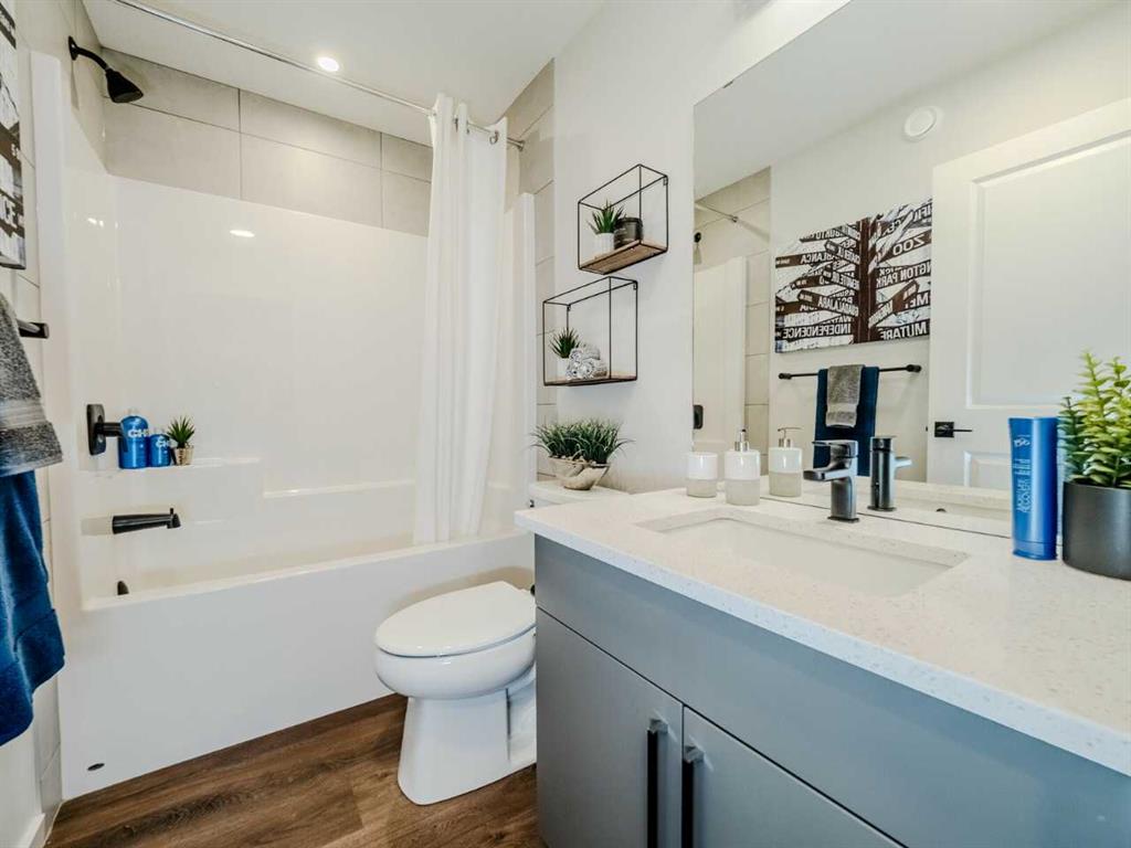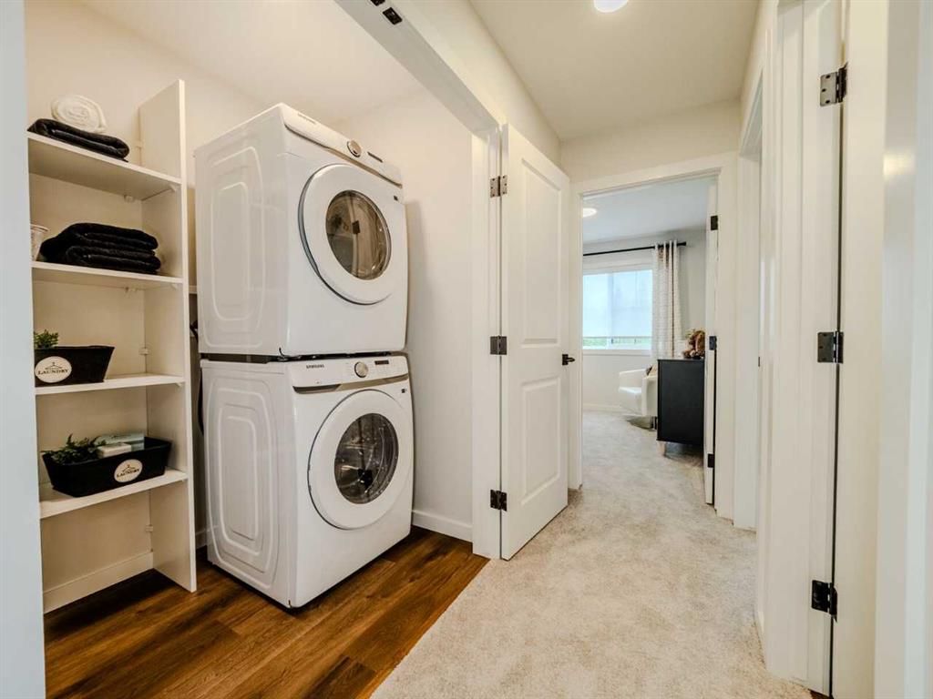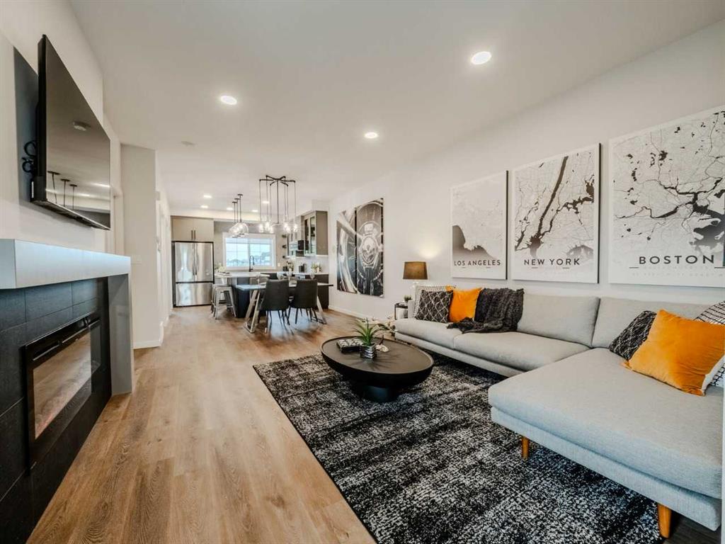 Step into the FLORA BY BEDROCK HOMES IN HEARTWOOD SE, a beautifully designed LANED HOME featuring 4 BEDROOMS & 2.5 BATHROOMS. The main floor features an open-concept layout with a modern kitchen and a large island, connecting naturally to the dining and great room—ideal for family living and entertaining. Upstairs includes a BONUS ROOM and bright, well-sized secondary bedrooms, while the primary bedroom impresses with a LARGE WALK-IN CLOSET. Additional highlights include thoughtfully designed living spaces throughout, providing functional comfort for modern family living. Conveniently located near the SETON YMCA, as well as TRAILS & PARKS, with planned schools, shopping, and amenities just minutes away—combining modern style, convenience, and everyday living in one exceptional home. Photos representative.