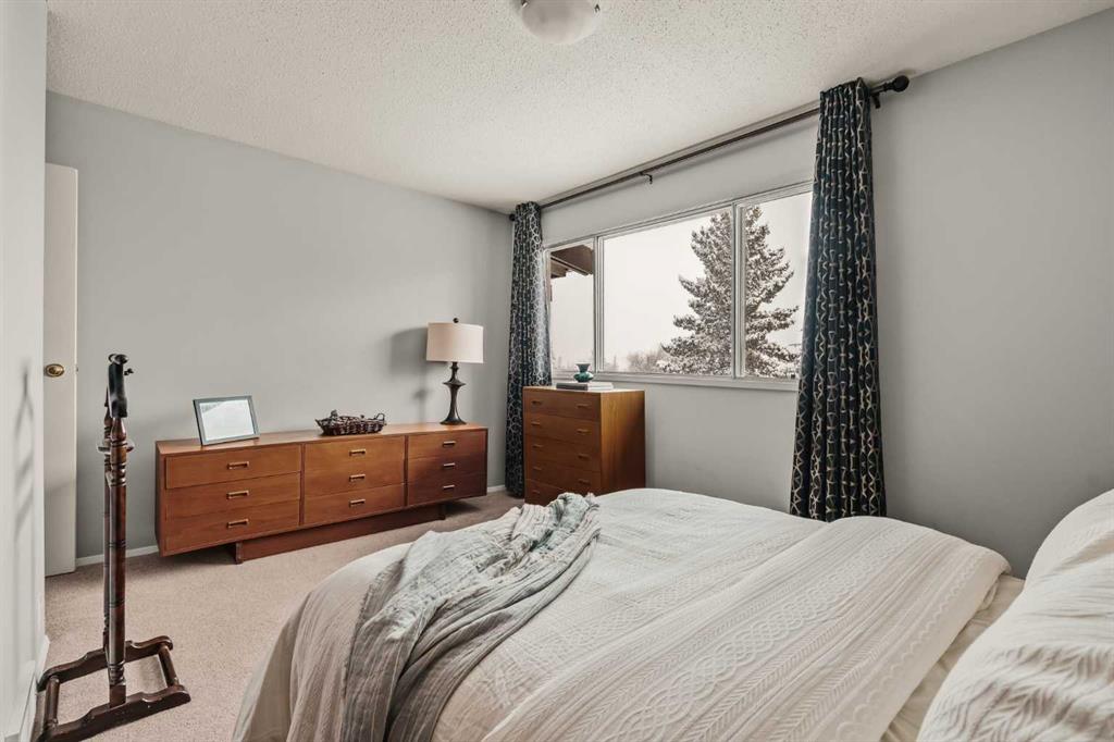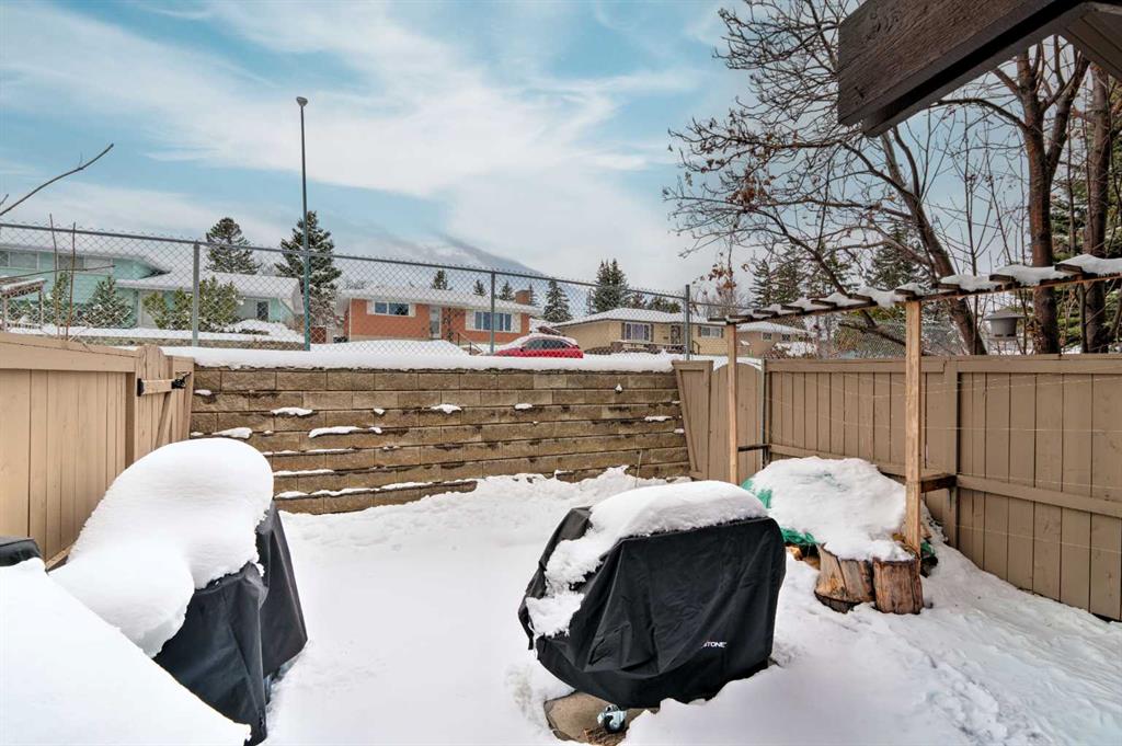 Welcome Home to Huntington Hills. Tucked into the well-established Huntington Ridge complex, this 3-bedroom, 1.5-bathroom townhouse has more room than you'd expect, with outdoor space front and back, a single attached garage, and a location that truly delivers. The main floor is bright and functional, with a layout that flows naturally from living to dining to kitchen, ideal for everyday life and easy entertaining. Fresh paint and carpet throughout give the home a clean, move-in-ready feel, and the updated half bath on the main level is a practical touch that makes a real difference day-to-day. Step out from the living room onto a full-width balcony the perfect spot for morning coffee or winding down in the evening. Upstairs, three bedrooms offers flexibility, a home office, or a dedicated guest room. The main bathroom is well-appointed and serves the upper level comfortably. Out back, a fully fenced private yard gives you the outdoor space great kids, pets, summer barbecues, a little garden or simply having a space to call your own. The lower level (Front entrance) has a generous 166 sq ft utility and storage room — not included in the 1,077 sq ft of living space that gives you options for storage that many townhouses simply can't offer. Think home office, seasonal storage, hobby space, or a future workshop. Combined with the attached garage and additional driveway parking, you wont be short on space here. Huntington Hills is a mature, family-oriented NW community with walkable access to many schools, parks, playgrounds, and transit. Nose Hill Park is minutes away for weekend adventures, and Superstore, Centre Street, and Deerfoot Trail keep daily errands and commuting stress-free.