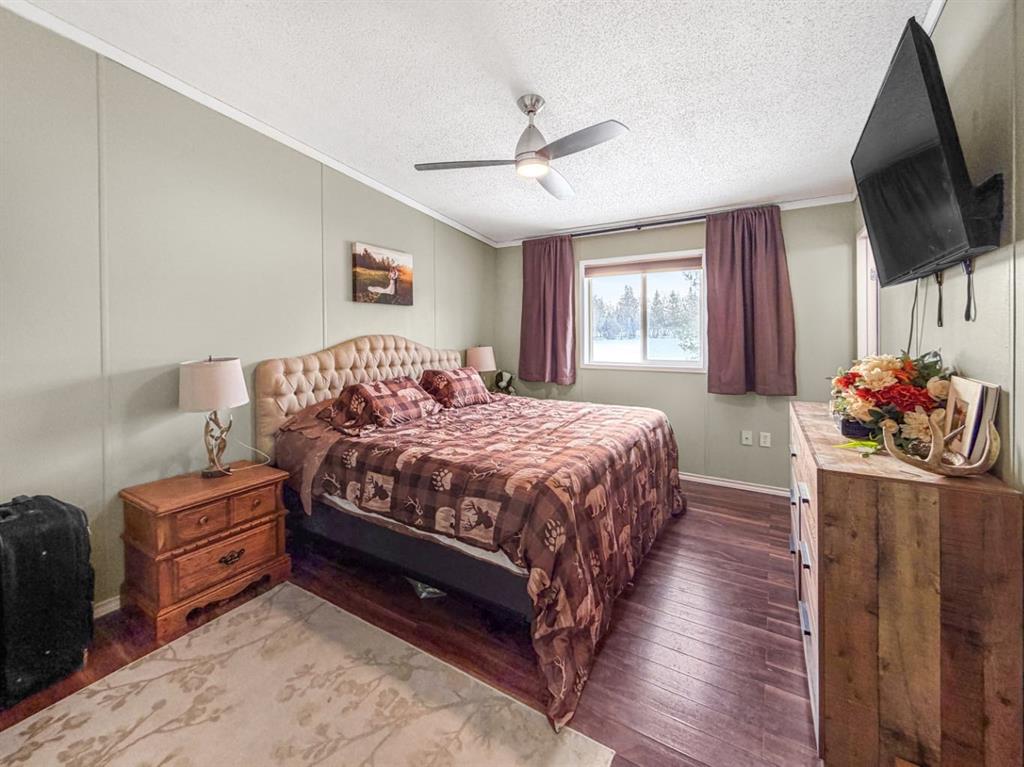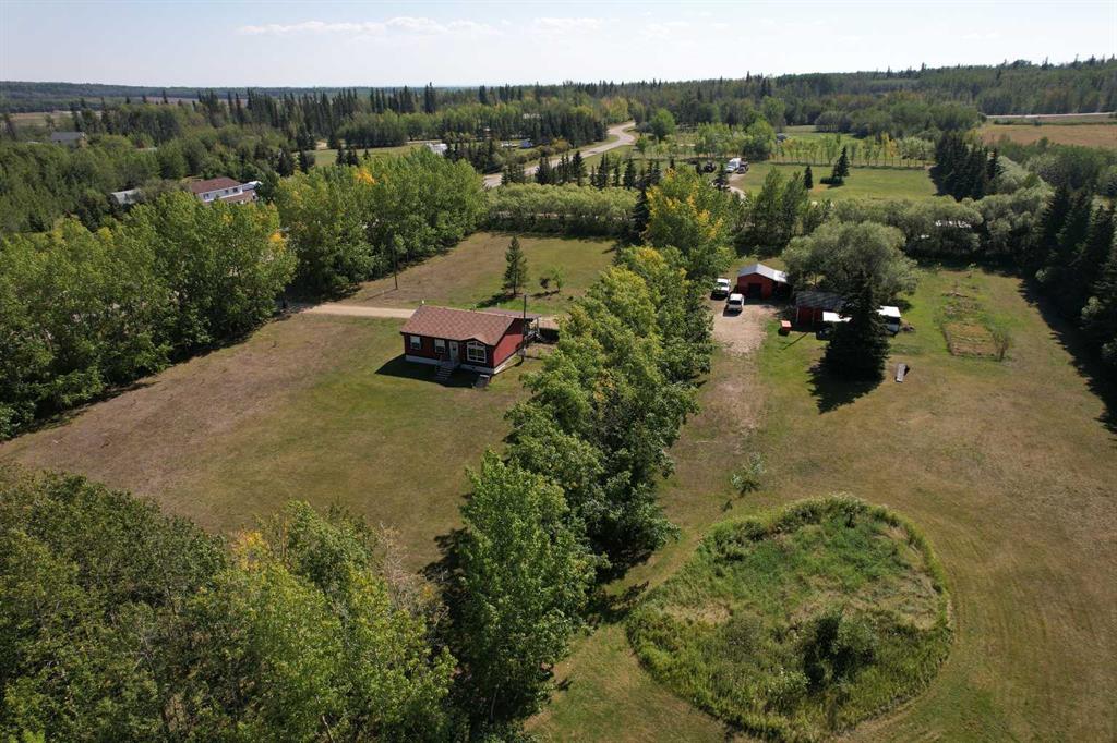 If you’re looking to escape the city for some peaceful seclusion, this charming home on 4.13 acres in Mountain Side Estates is the perfect retreat. Located just 20 minutes west of Grande Prairie with pavement right to your door, the property offers a functional floor plan highlighted by a trendy kitchen and dining area that overlooks a spacious, light-filled living room. The layout includes three bedrooms and features a primary suite with a large walk-in closet and ensuite along with a main bathroom and dedicated laundry room. Outside, the gorgeous yard provides complete privacy among mature trees, complemented by a south-facing covered deck, a dog run, and versatile outbuildings including a barn-style shed with a chicken coop and a 16 x 18 workshop wired with 220V power.