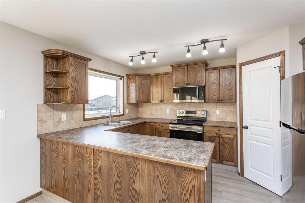 This well-maintained, move-in-ready home features timeless wood cabinetry and a functional kitchen with a corner pantry, new appliances, and new vinyl plank flooring & carpet. Freshly painted throughout in a modern, neutral palette, the home is filled with natural light, creating a bright and welcoming atmosphere. The spacious primary bedroom offers a comfortable retreat, with the added convenience of laundry located on the same level as the bedrooms. Outside, enjoy a fully fenced, low-maintenance chain-link backyard complete with a firepit—perfect for relaxing or entertaining. Additional highlights include attractive curb appeal, a good-sized storage shed, and rear parking. An excellent value and an ideal opportunity for first-time buyers or those looking to downsize, all in a great neighbourhood.