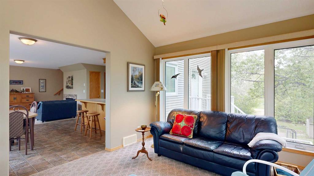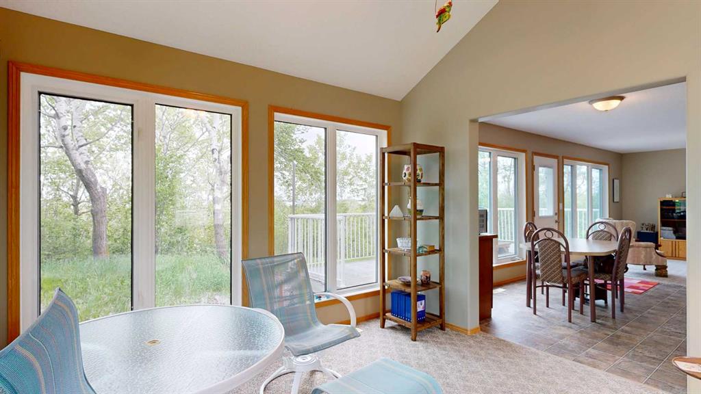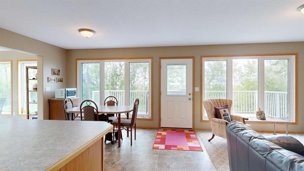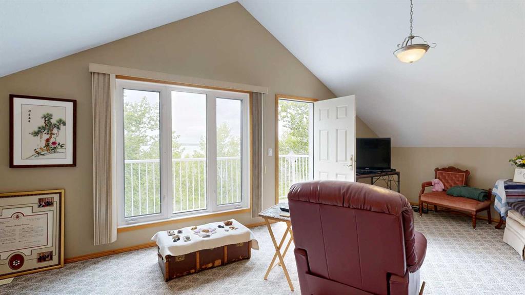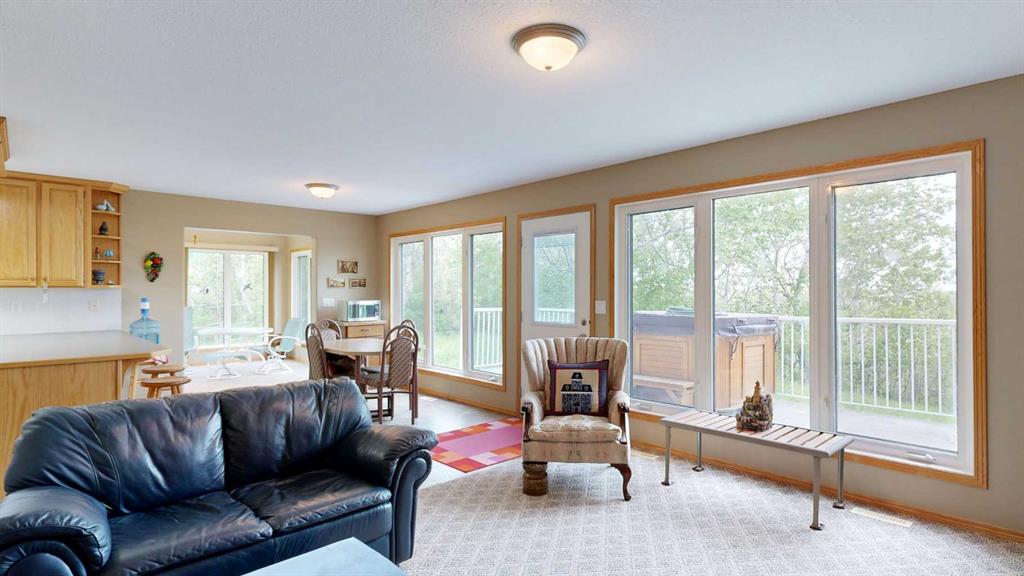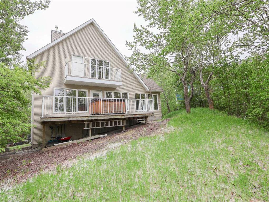 Nestled along the serene shores of Scenic Sands, this three-level lakefront home offers a lifestyle of relaxation and recreation. Designed with an open-concept layout, the home features multiple living areas and expansive, triple-pane windows that flood the interior with natural light. The main floor houses the kitchen, with wood cabinetry and a central peninsula which overlooks the dining room and living room. The windows offer a panoramic view of the lake and surrounding greenery. There is a patio door to the front deck and hot tub, where you can also have your barbecue or smoker, and set out your deck chairs and loungers. This level also has an amazing sunroom with windows all around. There is a bedroom, 4 pc bathroom, and separate laundry room with modern front load washer and dryer. The top floor has two spacious bedrooms under the vaulted ceiling. In one, you can step outside to the second story balcony, perfect for unwinding while watching boats glide by. There is a bright 4 pc bathroom as well. Downstairs, there are a number of open spaces which could be used for a variety of activities for the whole family. There is a bedroom and plenty of space for extra beds for family or overnight guests. The walk out basement provides direct access to the backyard. Outdoor spaces are a highlight, with a firepit area, cement paths and parking pad, beautiful fenced garden area, and garden shed. Native trees envelope this property so once the trees fully leaf out, you will barely see your neighbors. Whether it’s summer barbecues, cozy winter nights by the fireplace, or enjoying the changing seasons, this home offers a unique opportunity to experience lakeside living at its finest. Scenic Sands has great boating and fishing, paddle boarding and kayaking, swimming, natural beaches, playground, and plenty of green space giving you the opportunity for bird watching and hiking. Winter activities include ice fishing, snowshoeing, cross country skiing, and skating on the lake. Scenic Sands is only 17 minutes to Pheasantback Golf Course, 24 minutes to Stettler, and 55 minutes to Red Deer. A quick drive from the cities, this property is situated partway between Edmonton (2 hours) and Calgary (2 hours, 20 min).