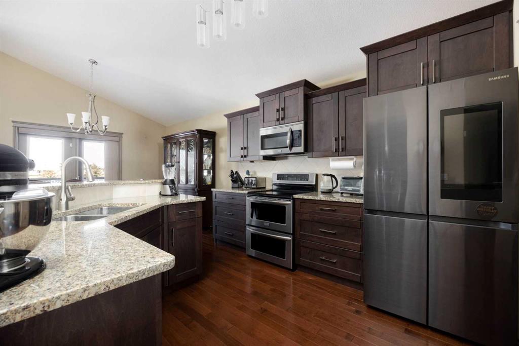 Meticulously maintained home with a 2-bedroom legal suite in sought-after Parsons North, backing onto beautiful green space. A spacious foyer welcomes you into the main level, featuring an open-concept living area designed for both comfort and functionality. The kitchen offers abundant storage and counter space, complete with a walk-in pantry and a large eat-up breakfast bar. The generous dining area easily accommodates a large table and provides access to a partly covered deck overlooking the serene green space. The bright and inviting living room is filled with natural light and features a cozy gas fireplace - perfect for winter evenings - along with peaceful backyard views. The main floor also includes two well-sized bedrooms, a 4-piece bathroom, and a large laundry room. Upstairs, retreat to the private primary suite, offering a spacious bedroom, a large walk-in closet, and a luxurious ensuite with a stand-up shower and soaker tub. The fully legal 2-bedroom basement suite has its own separate entrance, with optional access from the main foyer - ideal for extended family or rental income. This bright suite boasts large windows, in-floor heating, an open-concept living, kitchen, and dining area, plus two bedrooms, a 4-piece bathroom, and its own laundry. One bedroom even features a cozy electric fireplace. A functional mudroom connects the heated double garage to both the main home and the suite. The garage is equipped with a hoist to assist with heavy lifting. Located close to walking and biking trails, schools, shopping, and offering quick access to the highway, this property combines convenience with lifestyle. Don’t miss your opportunity - call today to schedule your private viewing!