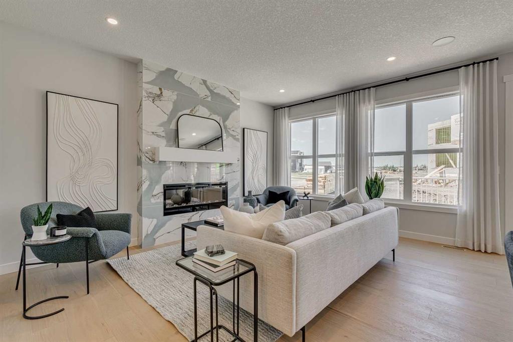 Welcome to 142 Belmont Passage SW, a beautifully designed brand-new two-storey home by Trico Homes located in the growing southwest community of Belmont. Thoughtfully crafted with modern finishes, a functional open-concept layout, and a fully finished legal basement suite, this home offers exceptional flexibility for families, investors, or those seeking multi-generational living. The main level welcomes you with high ceilings and durable engineered hardwood flooring, creating a bright and inviting atmosphere throughout the open floor plan. The spacious living room features a stylish electric fireplace, adding warmth and character to the main gathering space. The contemporary kitchen is designed for both everyday convenience and entertaining, showcasing quartz countertops, a large kitchen island with breakfast bar seating, sleek cabinetry, and modern appliances. The adjoining dining area provides ample space for family meals or hosting friends. Step outside to the rear deck with BBQ gas line, perfect for outdoor dining and summer gatherings. Upstairs, the home continues to impress with thoughtfully designed living spaces. The primary bedroom retreat offers a relaxing sanctuary complete with a walk-in closet and private ensuite featuring a double vanity and soaking tub. Additional bedrooms provide comfortable accommodation for family members or guests, while convenient upper-level laundry enhances everyday functionality. One of the standout features of this home is the fully finished legal basement suite with separate entrance, providing excellent potential for rental income or extended family living. The additional living space increases the home’s versatility and long-term value. Additional highlights include closet organizers, quartz counters throughout, an open-concept design, and a double attached garage with parking for multiple vehicles. The property also includes a $1,000 landscaping certificate, helping you complete the outdoor space to your liking. Situated in the family-friendly community of Belmont, residents enjoy access to parks, playgrounds, walking and biking paths, nearby schools, and convenient shopping options. The community’s location provides easy access to major roadways, making commuting throughout Calgary simple while maintaining a quiet suburban atmosphere. With modern design, a legal suite, and an excellent location, 142 Belmont Passage SW presents an outstanding opportunity to own a new home with built-in investment potential.