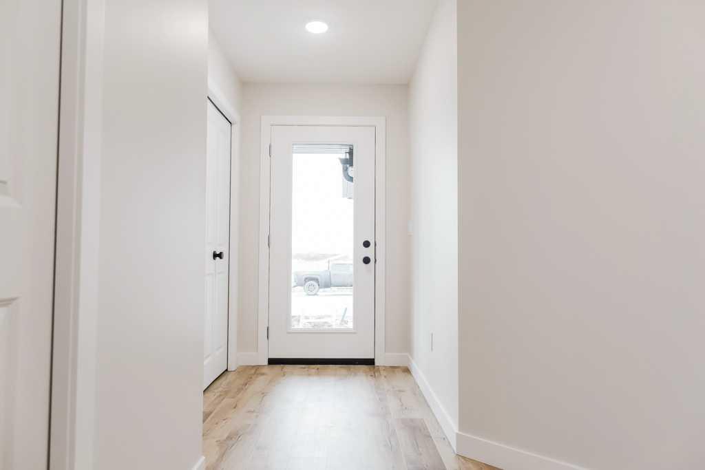 Welcome to the New Evelyn Plan, an exceptional opportunity for first-time home buyers in Northern Alberta offering incredible value, quality finishes, and long-term peace of mind with a 10-year new home warranty and durable lifetime shingles. This thoughtfully designed ½ duplex offers over 1,375 sq ft across two levels with 3 bedrooms, 2.5 bathrooms, an office nook, and convenient upstairs laundry. The bright open-concept main floor features an island kitchen with quartz countertops, soft-close real wood drawers and cabinets, upgraded stainless steel appliances, and an extra-large walk-in pantry for excellent storage. Built with energy efficiency in mind, the home includes LED lighting, Low-E argon-filled windows, and hot water on demand to help keep utility costs affordable year-round. Enjoy an extra-large backyard backing onto an easement, offering added privacy and space to relax. Located in Bridgewater in Clairmont, this growing community offers abundant green space and is close to a K–8 school, spray park, skate park, walking trails, and numerous parks, along with county property taxes approximately 48% lower than Grande Prairie, saving homeowners thousands per year. This home is currently under construction with completion scheduled for July 29, 2026, giving buyers time to plan and secure an excellent opportunity in a family-friendly neighborhood. (Pictures and renderings are samples from previous builds, please request spec sheet and renderings as per address)