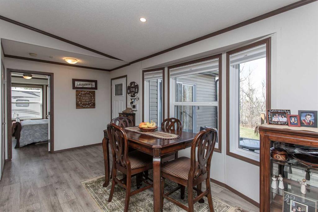 Experience the best of lake life in this stunning year-round home at DeGraff RV and Residence Resort, a gated community on Gull Lake's eastern shore. This lakeside resort boasts a sandy beach, playgrounds, horseshoe pits, pickleball and basketball courts, boat and fishing docks, a private boat launch, and scenic walking trails. Residents enjoy conveniences such as a community water and septic system, public showers and bathrooms, laundry facilities, and a vibrant activity center for gatherings and events. Lot 101, larger than most and offering a gently sloping lawn area bordered by mature trees, sits in a premium location and was originally the showcase of the development. It is enhanced by a modern, spacious manufactured home perfectly positioned to capture breathtaking views of sunrises and sunsets. In pristine, like-new condition, this home offers an inviting open-concept main living area under vaulted ceilings, three bedrooms, and two full baths. A 12x16 addition provides a versatile space for an office or craft room, complete with a built-in desk and custom cabinetry. The expansive west facing deck is a perfect place to entertain guests, or to simply relax and enjoy the peace, privacy and stunning views. Additional features include pantry storage, a reverse osmosis water softener, and central air conditioning. Outside, storage solutions are intelligently integrated alongside and beneath the home, providing secure space for yard tools and toys. A front driveway accommodates up to six vehicles, while the community storage yard is ideal for your boat or RV. Garage options are also available for indoor parking or project work. This gorgeous home in a picturesque location is poised to offer a new chapter in your lakefront lifestyle.