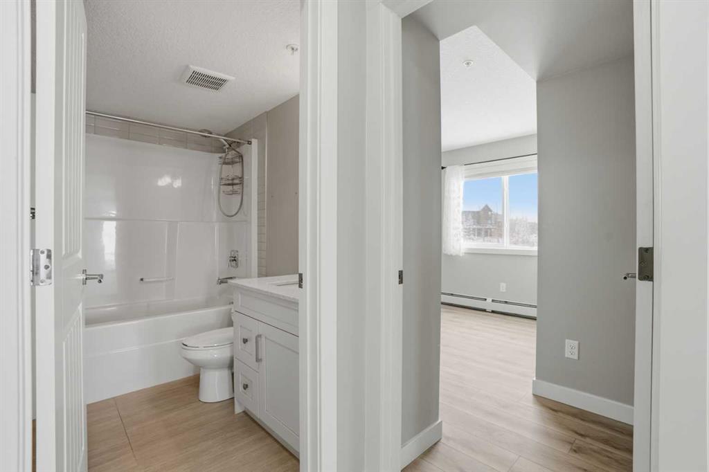 Entering this home, you’re greeted by a clean and inviting entry that immediately sets the tone. A wide hallway, great flow, and a layout that feels open without losing that sense of definition. This space really opens up from the hallway passing by the den, into the main living area, and you can feel the abundance of natural light right away. The living room extends seamlessly out to the balcony, creating that indoor-outdoor connection that’s hard to find in this price range. The kitchen is sharp, modern, and very functional. You’ve got clean cabinetry lines, durable countertops, and plenty of prep space. Stainless steel appliances tie everything together, and the brightness from the surrounding windows keeps the entire space feeling fresh and open. Simple, but done right. The primary bedroom is generously sized and easily accommodates a full bedroom setup without feeling tight. What stands out here is the flow. You’ve got a walk-through closet that naturally connects into the ensuite, which adds both convenience and privacy. The three-piece ensuite is clean, well laid out, and gives you that separation from the rest of the home that people are really looking for. For added comfort there is a second bathroom and bedroom. It’s a practical design, but also very comfortable for day-to-day living. There are two titled parking stalls, ensuring parking is never a issue. Stepping outside onto the northwest facing balcony gives you open, sprawling views and great afternoon sun. It’s the kind of space where you can actually unwind at the end of the day.