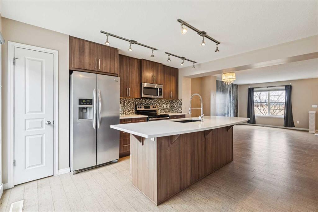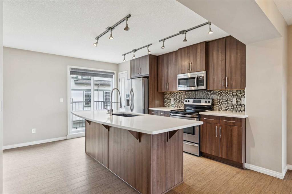 Welcome to Cranston! This three-bedroom townhouse with a double attached garage is the one you have been waiting for. As you enter this open concept floor plan, cork flooring will lead you through a good-sized living room, dining area, and into a beautiful kitchen that features a large island, quartz countertops, stainless steel appliances, plenty of cupboard and counter space, and a pantry area. Just off the kitchen is a breakfast nook, the main floor is finished off with a powder room. Upstairs, you have three bedrooms, the primary features a walk-in closet and a full ensuite. Down the hall are two additional good-sized bedrooms and another full washroom. The basement offers plenty of storage, access to the double garage, laundry and mech space. All of this is a great location, close to the community centre, shopping, restaurants, pubs, schools, and much more. Check out the 3D tour for a better look and call your favourite realtor to book a private viewing. A move you’ll be glad you made!