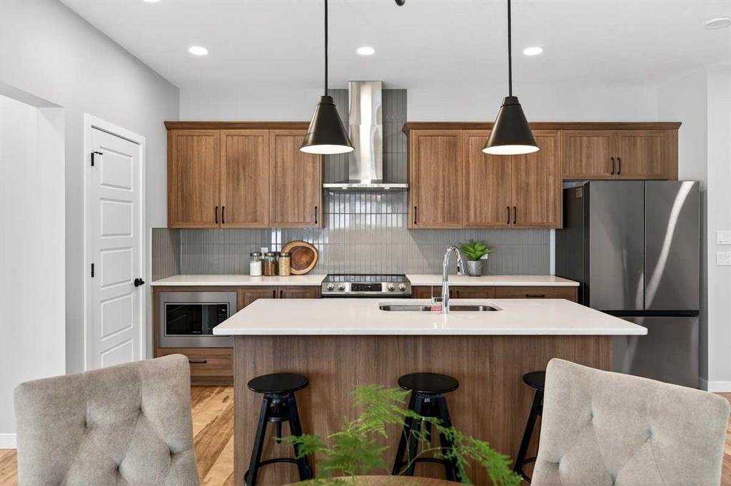 ACROSS THE STREET FROM CHINOOK WINDS PARK. 55 ACRE ALL SEASON PARK. INCLUDES A SPRAY PARK, SKATE PARK, SPORTS FACILITIES (BALL DIAMONDS, BEACH VOLLEYBALL) 3 PLAYGROUNDS, TOBOGGAN HILL, 2 KM OF PATHWAYS AND FAMILY PICNIC AREAS! **Better than new! This McKee-built 3-bedroom, 2.5-bath home eliminates the cost and hassle of post-build upgrades. Completed landscaping, fencing, deck on a sunny south facing backyard, window coverings, and a double detached garage. The garage features its own electrical panel and custom built storage. A bright and open main floor features vinyl plank flooring, a modern kitchen with quartz countertops, large island, pantry, and stainless steel appliances, plus a convenient main-floor den/office. Upstairs offers three spacious bedrooms and well-designed bathrooms. The unfinished basement provides excellent future development potential. Steps away from pickleball, beach volleyball and basketball courts, as well as the splash, skate and off leash parks of the 55-acre Chinook Winds recreation area. A quiet street and year-round recreation, makes this an exceptional home for families and outdoor enthusiasts.