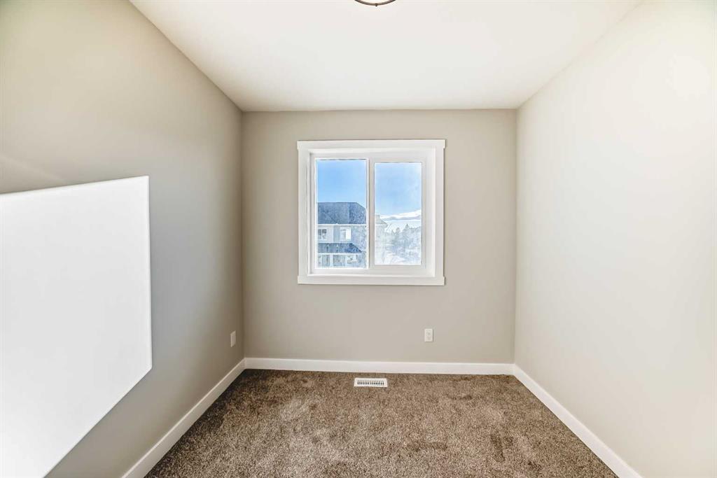 **NO CONDO FEES FOR 2026** Welcome to 703 Clover Road – a newly built, fully finished townhome that perfectly blends modern design, quality craftsmanship, and thoughtful functionality. Offering over 1590 sq ft of fully developed living space, this stunning two-story features 4 bedrooms and 3.5 bathrooms, making it ideal for young professionals, investors or families seeking extra space and comfort. Step inside and you’ll be greeted by 9-foot ceilings, a bright and open layout, and stylish finishes throughout. The main floor features LVP flooring, numerous LED pot lights, and a beautiful kitchen with quartz countertops, high-gloss cabinetry, subway tile backsplash, and Whirlpool stainless steel appliances. The undermount sink with a pull-spray faucet and a convenient water line to the fridge add both elegance and practicality. Upstairs, you’ll find a spacious primary suite complete with its own 3 pc ensuite and walk in closet, 2 additional bedrooms, a main 4-piece bathroom, and stacked laundry room for added convenience. All bathrooms feature quartz counters, undermount sinks, ceramic tile floors and walls, and comfort-height toilets. The fully finished basement expands your living space with a cozy recreation area, a custom dry bar with a mini fridge, an additional bedroom, and a full bathroom—perfect for guests, entertaining, or a home office setup. Additional highlights include a high-efficiency furnace and 50-gallon hot water tank. Outside, the home showcases Smartboard siding, and a decorative fiberglass front entry door. Large private concrete patio equipped with a gas line rough-in for easy summer BBQs. This home also includes two assigned parking stalls, and a low-maintenance lifestyle with monthly condo fees of $290.25. This move-in-ready home combines modern design, energy efficiency, and functional living in a peaceful Carstairs community — the perfect place to call home.