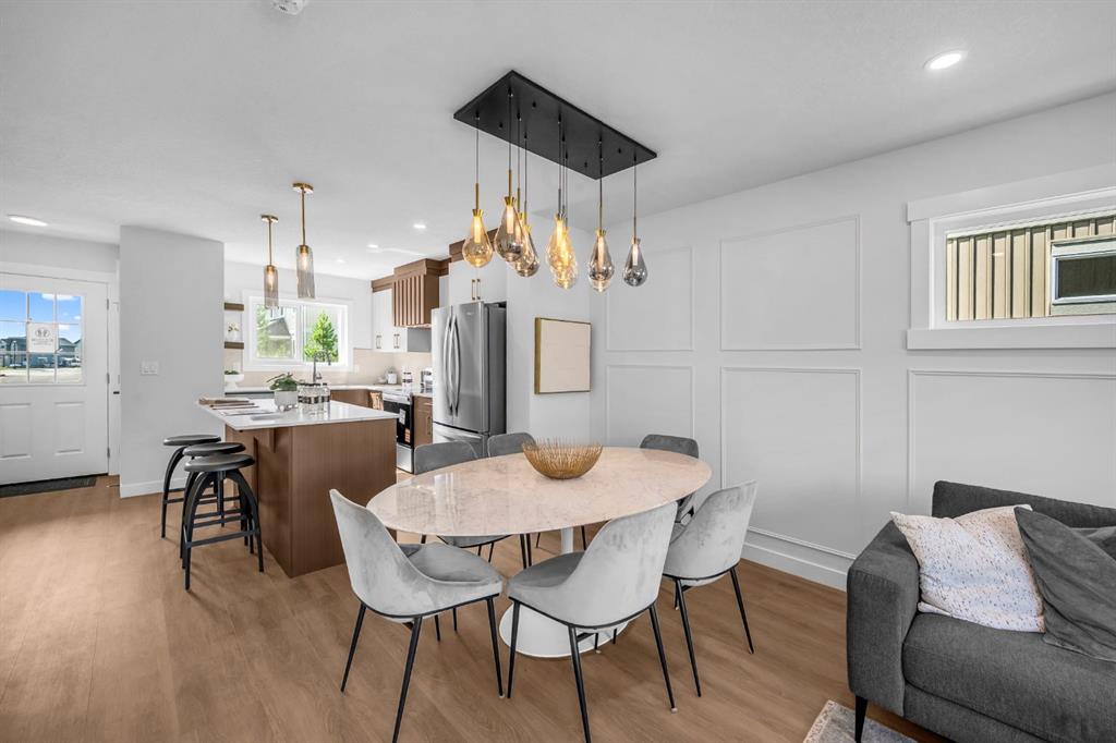 **NO CONDO FEES FOR 2026** Welcome to 901 Clover Road – a newly built, fully finished END UNIT townhome that perfectly blends modern design, quality craftsmanship, and thoughtful functionality. Offering over 1575 sq ft of fully developed living space, this stunning two-storey features 4 bedrooms and 3.5 bathrooms, making it ideal for young professionals, investors or families seeking extra space and comfort. Step inside and you’ll be greeted by 9-foot ceilings, a bright and open layout, and stylish finishes throughout. The main floor features LVP flooring, numerous LED pot lights, fireplace and a beautiful kitchen with quartz countertops, high-gloss cabinetry, subway tile backsplash, and Whirlpool stainless steel appliances. The under mount sink with a pull-spray faucet and a convenient water line to the fridge add both elegance and practicality. Upstairs, you’ll find a spacious primary suite complete with its own 3 pc en suite and walk in closet, 2 additional bedrooms, a main 4-piece bathroom, and stacked laundry room for added convenience. All bathrooms feature quartz counters, under mount sinks, ceramic tile floors and walls, and comfort-height toilets. The fully finished basement expands your living space with a cozy recreation area, a custom dry bar with space for a mini bar fridge, an additional bedroom, and a full bathroom—perfect for guests, entertaining, or a home office setup. Additional highlights include a high-efficiency furnace and 50-gallon hot water tank. Outside, the home showcases Smartboard siding, and a decorative fiberglass front entry door. Large private concrete patio equipped with a gas line rough-in for easy summer BBQs This home also includes two assigned parking stalls, and a low-maintenance lifestyle with monthly condo fees of $305.89. This move-in-ready home combines modern design, energy efficiency, and functional living in a peaceful Carstairs community — the perfect place to call home.