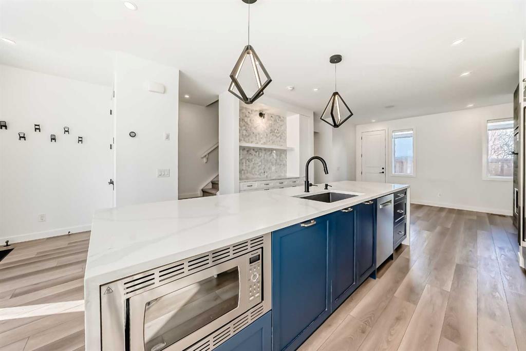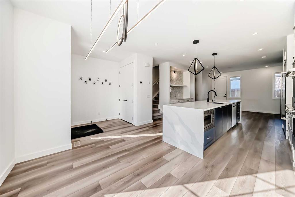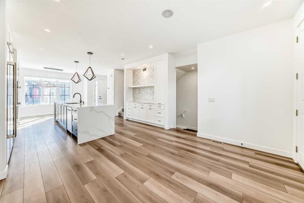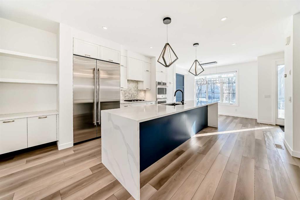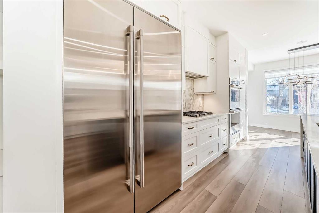 Discover the pinnacle of inner-city living in this custom-designed townhome, ideally situated in the heart of Renfrew. Thoughtfully crafted with an open-concept layout and rich textured finishes, this home seamlessly blends style and function. The heart of this home is a breathtaking chef-inspired kitchen that perfectly balances high-end performance with sleek design. Ideal for both everyday living and entertaining, it features a Blanco Silgranit sink, a custom full-height pantry, and elegant quartz countertops anchored by an impressive 12-foot waterfall island. The premium JennAir appliance package includes a 5-burner gas cooktop, a 48-inch built-in refrigerator/freezer, and a double wall oven. Upstairs, you’ll find two spacious bedrooms, each with its own ensuite, along with a well-appointed laundry room offering built-in shelving and generous storage. The primary suite comfortably accommodates a king-sized bed, boasts an oversized walk-in closet, has high vaulted ceilings, and a luxurious five-piece ensuite. The fully developed basement extends the living space with a third bedroom, an additional bathroom, and a wet bar—perfect for guests or entertaining. Additional highlights include a living room fireplace, built-in closet organizers throughout, a BBQ gas line, air conditioning, built in speakers, a kinetico water softerner and smart home features such as a Nest thermostat and doorbell. With a Walk Score of 82 and a perfect Bike Score of 100, you’re just a 5-minute drive or a quick 9-minute bike ride from downtown. This exceptional inner-city home is a must-see.