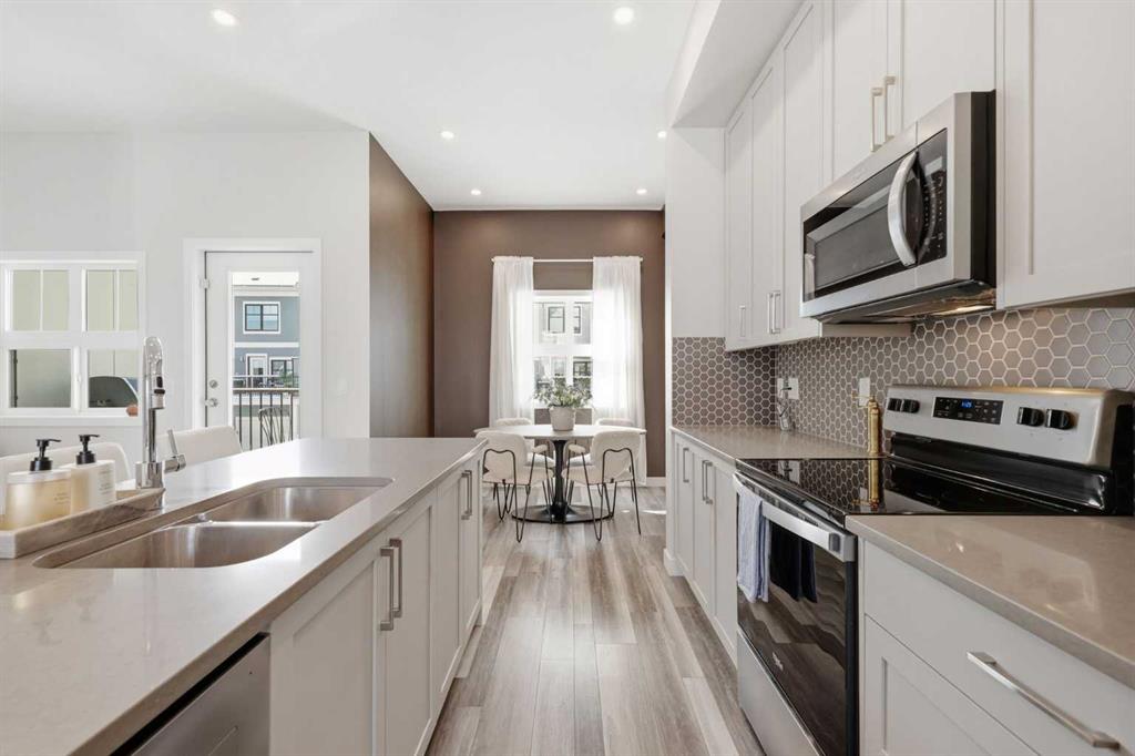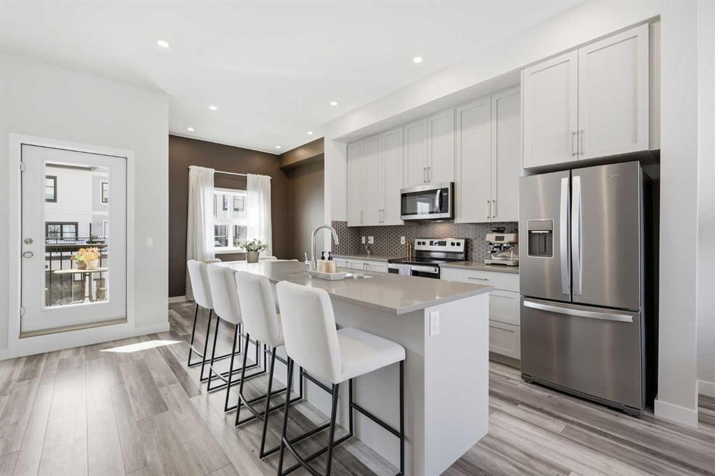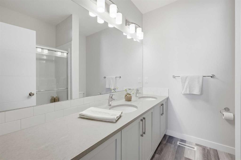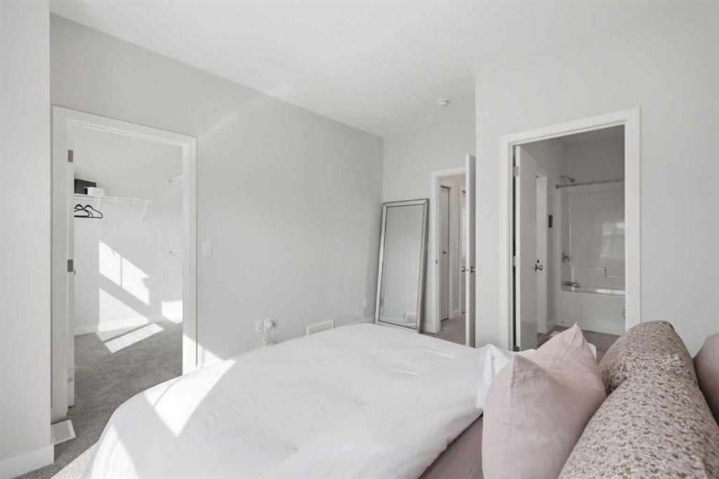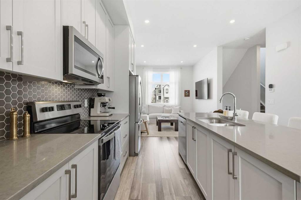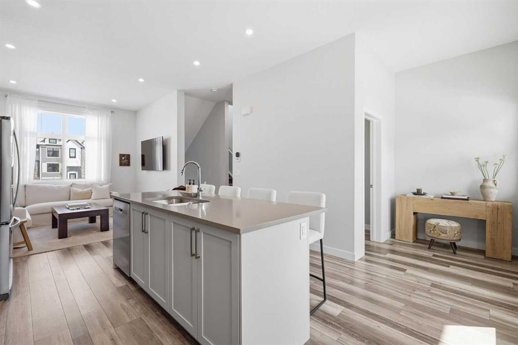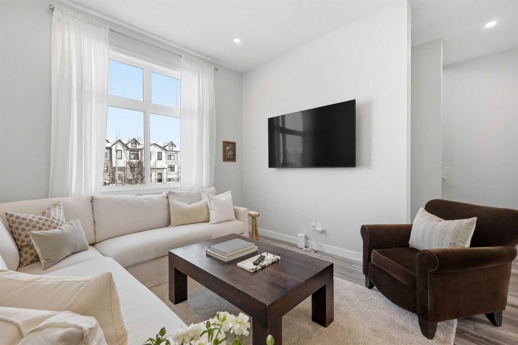 OPEN HOUSE SATURDAY, APRIL 4TH FROM 11 AM - 1 PM. Located in Douglasdale’s sought after Les Jardins community, this impeccably finished and stylish 2 bedroom, 2.5 bath townhome with a double attached garage offers exceptional convenience—just minutes from the shops and services of Douglas Square and Quarry Park. The open and airy main level features vinyl plank flooring and high ceilings, creating a bright, welcoming atmosphere. A spacious living area flows seamlessly into the beautifully appointed kitchen, complete with quartz countertops, a large island with eating bar, generous cabinetry, and stainless steel appliances. The adjacent dining area is ideal for family meals or entertaining. A 2 piece powder room completes the main floor. Upstairs, you’ll find two well sized bedrooms, a 4 piece bath, and convenient laundry facilities. The primary bedroom includes a walk through closet leading to a private 4 piece ensuite. The second bedroom enjoys direct access to the main bath, offering a thoughtful semi ensuite layout. The lower level, with direct garage access, features a versatile flex space—perfect for a home office, fitness area, or cozy media room. Additional highlights include central air conditioning, Smart Home technology, a sunny south facing balcony, and a charming front patio overlooking the community’s 2 acre central garden. Residents of Les Jardins enjoy outstanding amenities, including a state of the art fitness centre with outdoor terrace, a dedicated dog park, and a community garden. Schools, shopping, public transit, and the scenic Bow River pathway system, Fish Creek Provincial Park, and Carburn Park are all close by, with quick access to Deerfoot and Glenmore Trails for effortless commuting.