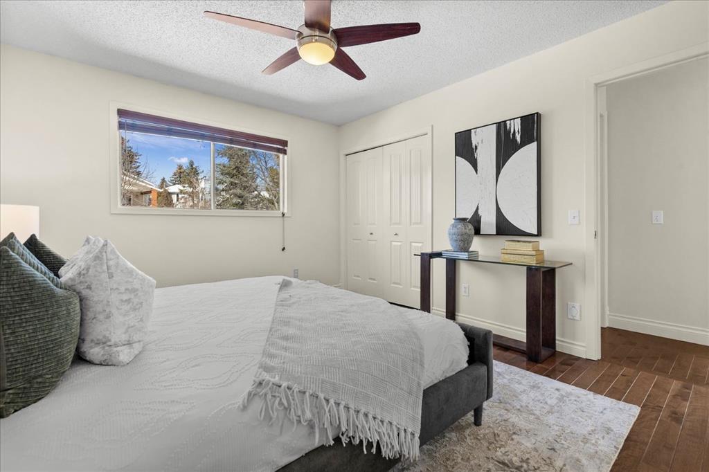 Are you looking for an updated detached home in a family friendly community? What about with 4 bedrooms, and the ability to walk out of the family room into a large backyard? Mature neighbourhoods have something a little special, whether it is the large trees or the longtime neighbours, it all just hits a little different. This 4 level split home has an open concept main floor with vaulted ceilings and lets light awash your entertaining area. The updated kitchen with granite countertops is centered around a large island with additional storage on both sides. The living room just off the kitchen has built ins and a family desk area, while opening up to bay windows and room for the kids to relax while you prepare meals. On the other side of the main level, the dining area can support a larger table and hutch/sideboard. Heading up to family quarters, the owners retreat with 3 piece ensuite is expansive and overlooks the back yard. You will also find 2 additional bedrooms and a 4 piece bathroom here. The lower full level provides a 4th bedroom and another 4 piece bathroom with laundry. Around the corner, the family room centers around a wood burning fireplace and access out to the grade level deck and yard. Summers will be spent in your curated outdoor space, having a firepit and letting the kids run off some energy. This home has plentiful storage attached to the utility room, plus the attached double garage is heated and has even more storage. This home has well-appointed updates and still offers a great value proposition to get into the detached market. Quick access out to Crowchild and John Laurie, means whether you want to go to Nose Hill Park, the mountains or head into DT as part of your work commute – you are on your way in no time. Contact your trusted agent today to book a private showing before She Gon’!