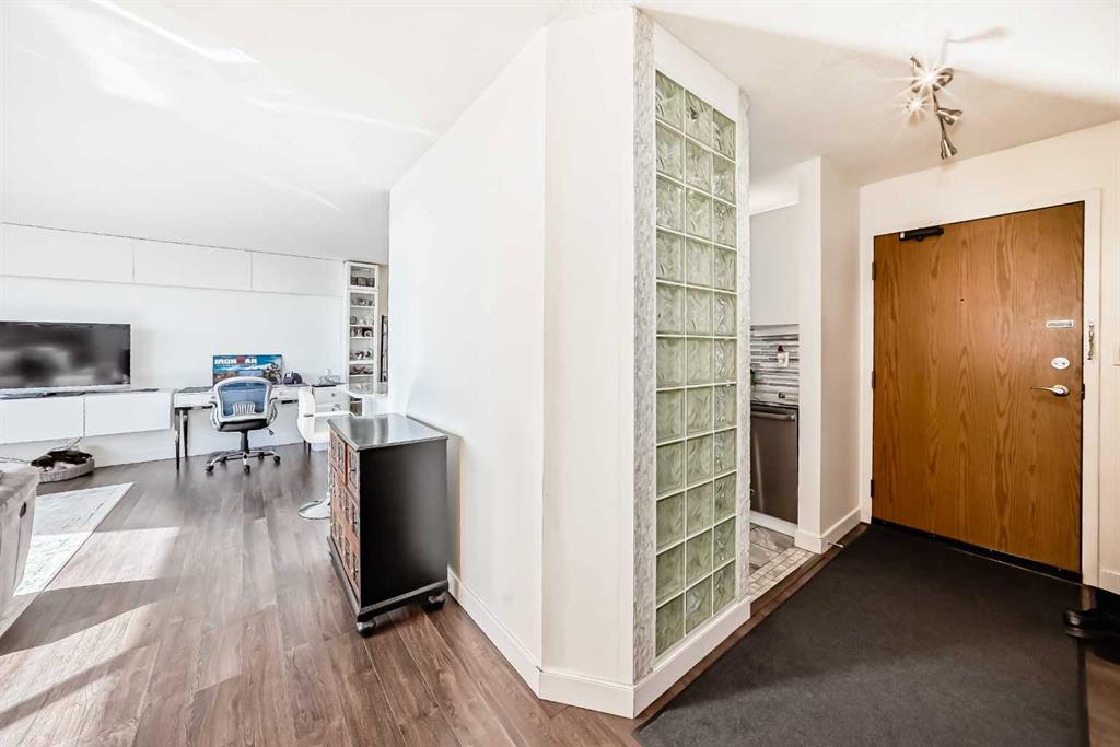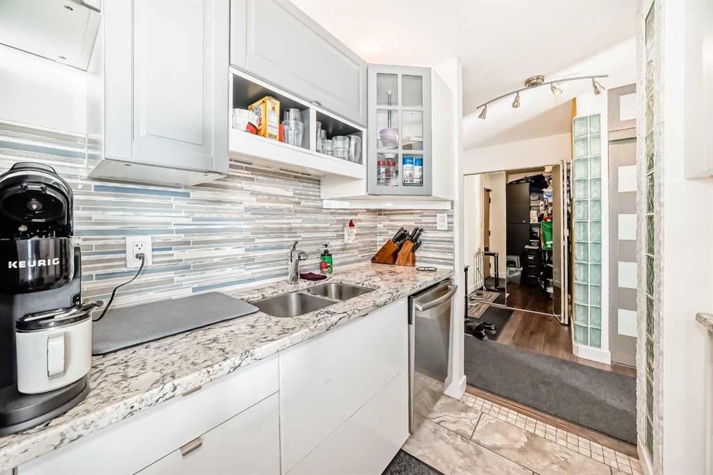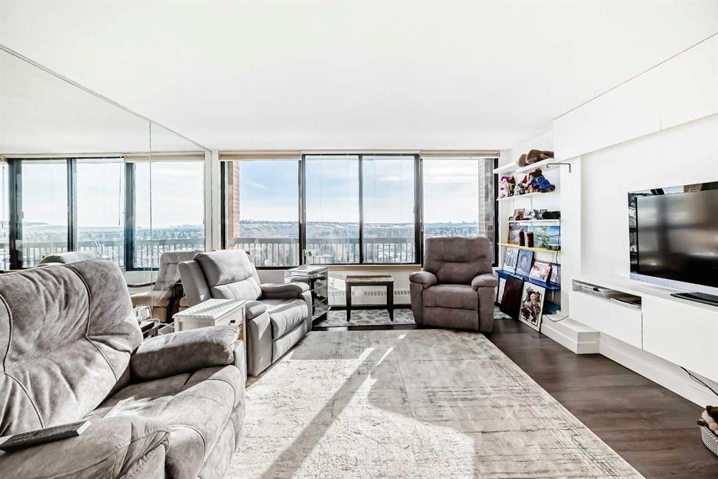 Experience stunning sunrises and sweeping views of the river, city, and valley from this exceptional home in Silverwood on the Park—a highly desirable, well-managed adult-oriented building constructed with solid concrete and brick. Residents enjoy a secure environment with heated underground parking, visitor parking, and spacious rooftop terraces. This fully renovated, move-in-ready two-bedroom condo blends comfort with upscale design. Featuring high-end finishes and unique custom details, the unit offers under- and over-cabinet lighting, elegant glass accents, and panoramic views from every room. The bright, open-concept layout is complemented by newer flooring, expansive windows, and patio doors that lead to a Juliet balcony overlooking the Bow River Valley. The contemporary kitchen is designed to impress, complete with granite countertops, a stylish glass tile backsplash, soft-close cabinetry, GE Profile stainless steel appliances, and a functional breakfast bar. Relax in the modern bathroom featuring a marble vanity, full tub, shower, and sleek body spray system for a spa-inspired feel. The dining area includes custom LED-lit wine storage, while the living room boasts a built-in entertainment unit. Thoughtfully designed storage solutions, including modular closet systems and sliding glass doors, maximize space throughout. Condo fees cover utilities, secure underground parking, and access to amenities such as a games room, sauna, and a well-equipped fitness center. Ideally situated just steps from Bowness Park and scenic river pathways, with quick access to downtown and an easy drive west to the mountains, this property offers the perfect balance of convenience, style, and location.