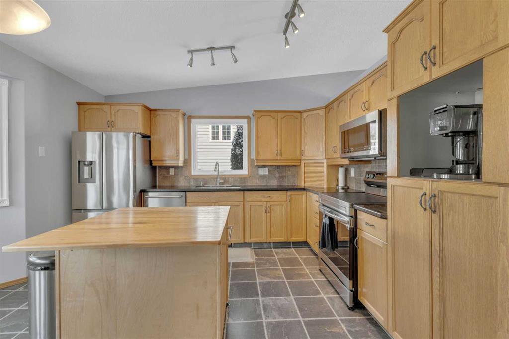 Great central location with quick and convenient access to the east side of Red Deer. This well-maintained 4-level split offers 4 bedrooms and 3 bathrooms, providing a comfortable and functional layout for family living. The main floor features a front attached garage with direct access to the laundry room for added convenience. The home has seen several updates, including all new windows and doors, fresh paint throughout, and central air to keep you comfortable year-round. The primary bedroom includes a private ensuite with a jetted tub—perfect for relaxing at the end of the day. The basement rec room is set up with built-in surround sound, creating a great space for entertaining or family movie nights. Step outside to a west-facing backyard designed for both enjoyment and practicality. You’ll find a 2-tiered deck with natural gas hookup, underground sprinkler system, and a stone walking path leading from the front driveway to the back deck. The large yard includes raspberry bushes, a kids play/swing set, and plenty of space to enjoy the outdoors. Additional features include RV parking, an oversized utility shed, and a detached heated shop (26x28) with 11.5 ft ceilings—ideal for a workshop or hoist system. All Poly-B plumbing has been replaced in 2026, offering added peace of mind. Located close to schools, parks, and the Collicutt Centre, this home combines convenience, space, and thoughtful updates in a great central location.