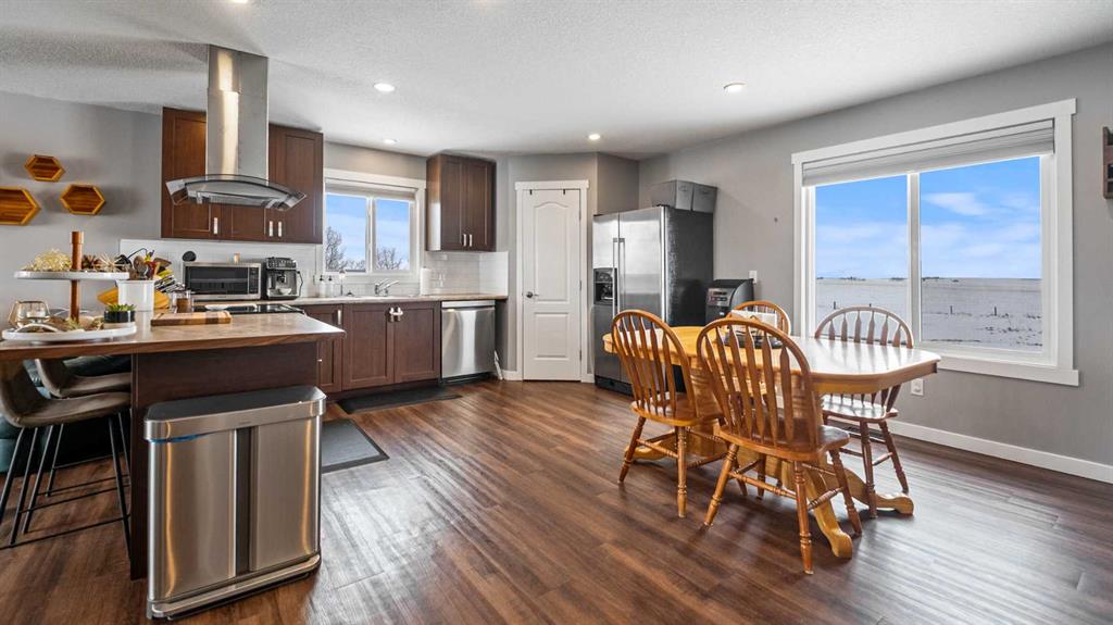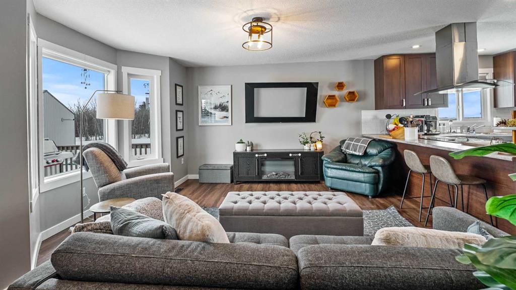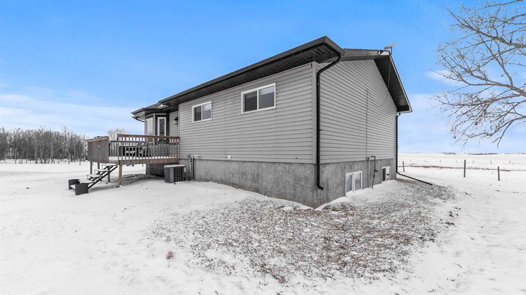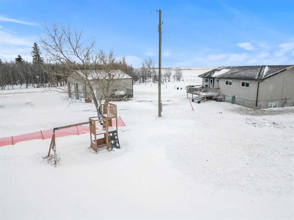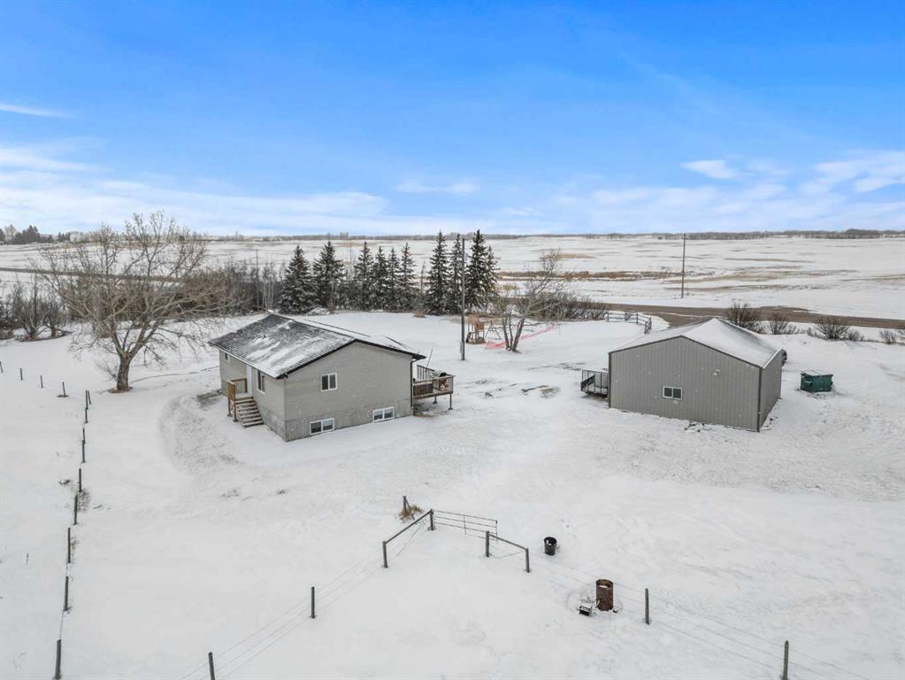 Discover the perfect balance of peaceful country living and modern comfort with this beautifully finished 1,292 sq ft acreage, ideally located just minutes from Daysland and only 30 minutes to Camrose. Set on 4.99 acres, this property offers space, privacy, and endless potential. The main floor welcomes you with a bright, open layout featuring an inviting eat-in kitchen and comfortable living room—perfect for gathering with family or friends. You’ll also find a spacious primary bedroom with a walk-in closet and ensuite, a second bedroom, a large office, and a full 4-piece bathroom. Energy-efficient appliances and a smart thermostat add everyday ease. Downstairs, the newly finished basement is a standout, boasting 9’ ceilings and in-floor heating roughed in for ultimate comfort. A massive family room creates the ideal space to relax or entertain, alongside a second primary bedroom with walk-in closet and ensuite, an additional bedroom, and a laundry/furnace room. Outside, enjoy a beautifully set-up yard with partial fencing, mature trees, open pasture, and a dugout. There’s room to garden, unwind by the fire pit, and enjoy the fruit trees and flower beds that add to the charm. The fully insulated, finished, and heated shop is a major bonus, featuring 12’ ceilings, 10’ doors, and wiring for a ceiling fan—perfect for hobbies, storage, or workspace needs. Located just off Highway 855, this acreage offers the quiet lifestyle you’ve been dreaming of without sacrificing convenience. A property like this doesn’t come along often.
