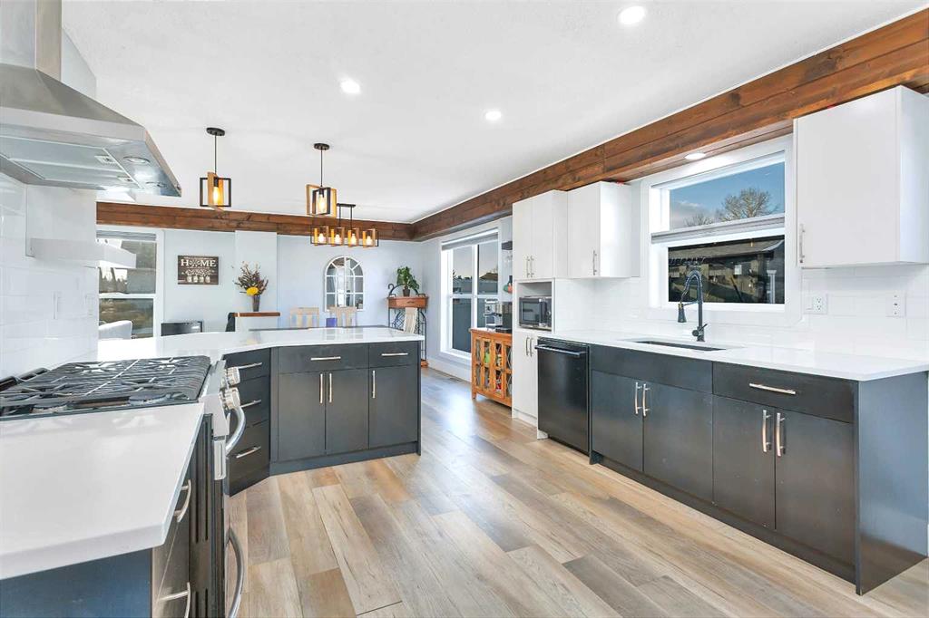 There’s something about a home that just feels settled the moment you step up to it—and this one does exactly that. Set on a generous corner lot in English Estates, with wide open space around you and a sense of quiet privacy, this updated two-storey blends a modern farmhouse feel with a warmth that makes it easy to imagine everyday life unfolding here. Inside, the light leads the way. South-facing windows anchor the main living space, drawing in sunshine that plays off crisp white walls, rustic barnboard-style flooring, and wood ceiling beams that add just the right amount of texture. The kitchen is designed for real living—room to spread out, cook together, gather, and stay awhile. Thoughtful details like the coffee bar, open shelving, and a view over the backyard make it feel connected and functional without ever feeling busy. Just off the kitchen, you’ll find main floor laundry and a refreshed powder room, along with easy access to the backyard for those in-and-out days. Tucked away from the main hub, a cozy den offers a quieter corner of the home—perfect for movie nights or a slow evening with a good book. Upstairs shifts into a more restful pace. The primary suite feels calm and private, with a walk-through closet and an ensuite designed for ease, featuring a glass shower and dual sinks. Two additional bedrooms and a bright office share a sun-filled bathroom, while the stairwell—framed by a large new window—keeps the entire upper level feeling open and connected to the light. The basement continues that same feeling, with a spacious family room, a renovated bathroom, and enough natural light to make it a space you’ll actually use every day. Outside is where this property really stretches out. The .28-acre corner lot offers room to breathe, with low-maintenance vinyl fencing, a long cedar deck, a gazebo for cooler evenings, and spaces for both play and purpose—from the vegetable garden to the apple tree. A large permitted custom shed, along with additional storage and a playhouse, rounds out a yard that’s as practical as it is enjoyable. With updates like exterior paint, some new appliances (washer/ dryer 2024, dishwasher 2025), improved ventilation, a new sump pump, dual air conditioning units, and zoned in-floor heat, the home has been cared for in all the ways that matter—you can feel it in how everything comes together. It’s the kind of place that doesn’t need to try too hard. It just works, quietly and comfortably, for the way people actually live.