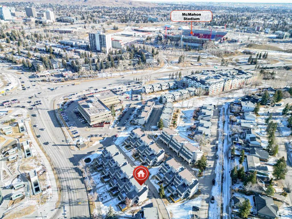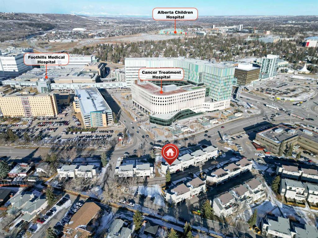 Make sure to check out this conveniently located complex of mature townhomes. The Foothills Hospital is just across the street, and the university is within easy reach. This apartment sits securely on the second floor, yet offers main-floor access without the need to climb any stairs. Inside, you’ll find a practical floor plan with open, light-filled interiors and generous storage. A spacious living room opens onto a huge terrace — the perfect place to unwind at the end of the day. The adjacent kitchen is thoughtfully designed around a functional central island, offering plenty of counter space and numerous cupboards. A comfortable dining area is conveniently located nearby. Easy-to-maintain hardwood flooring flows throughout the living room, dining room, and kitchen. Two well-sized bedrooms, a full bathroom, a laundry room, and additional storage complete the interior. Outside, the property includes an assigned covered parking stall just by the front entrance. Up to two pets are allowed with board approval. Thanks to its fantastic location, this apartment is also extremely easy to rent out. It’s a winning decision — book your showing today!