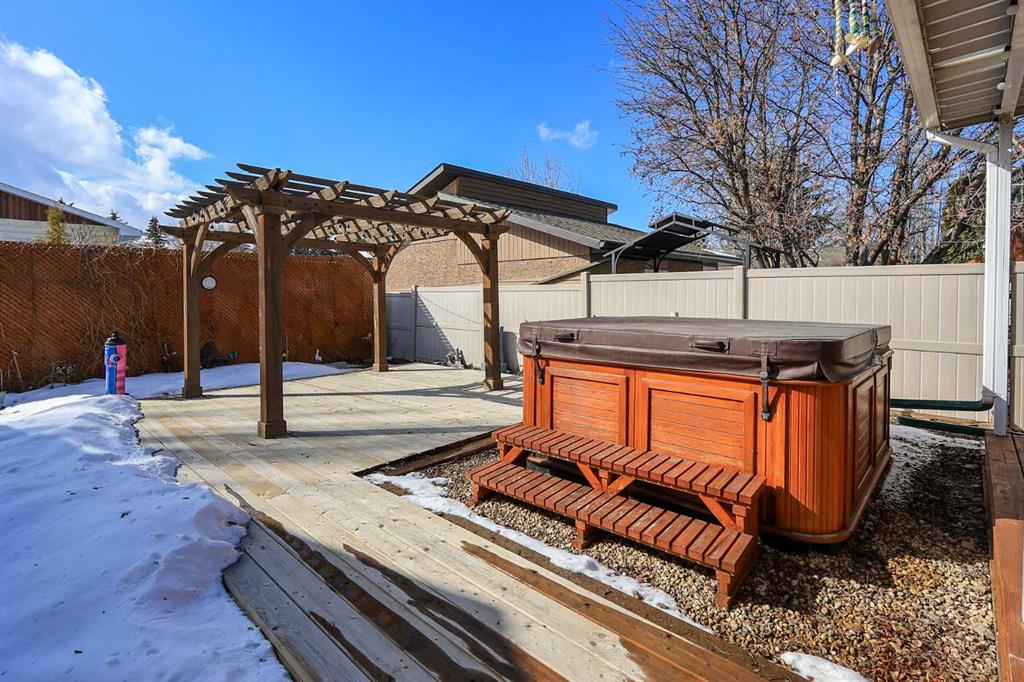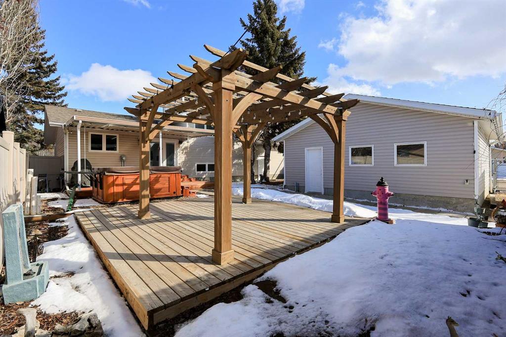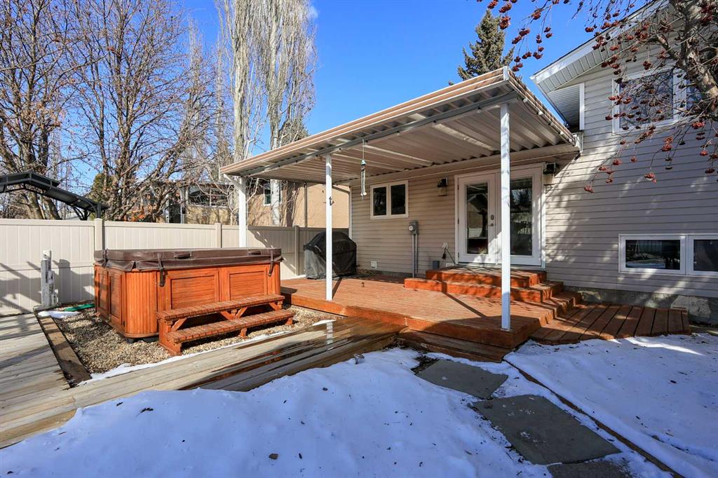IMMEDIATE POSSESSION AVAILABLE ~ FULLY DEVELOPED 4 BEDROOM + DEN, 3 BATHROOM 4-LEVEL SPLIT ~ 2 DOUBLE GARAGES + GATED RV PARKING ~ Large front yard with mature landscaping, huge front deck and facing a treed green space ~ The open concept main living space is filled with natural light from the large picture window that overlooks the front yard ~ The eat in kitchen offers an abundance of cabinet space, ample counter space, window above the sink, large island with an eating bar on all sides, plus garden door access to the covered deck and west facing backyard ~ The primary bedroom can easily accommodate a king size bed plus multiple pieces of furniture, has a walk in closet and an updated 3 piece ensuite with a walk in shower ~ 2 additional bedrooms on the upper level share a 4 piece bathroom with an oversized vanity and linen closet ~ The lower level has large above grade windows and features a spacious family room with a stone faced fireplace, updated 3 piece bathroom, 4th bedroom and a mud room with access to the heated double attached garage ~ The basement has a large laundry room, utility room, storage room with built in shelving, and a hidden door to a den ~ Sunny west facing backyard has two decks, one covered and one with a pergola, has gated RV parking and tons of side street access ~ Attached garage has high ceilings, built in shelving and a convenient man door to the backyard ~ 26' L x 24' W detached garage has two overhead doors, is insulated and finished with OSB ~ Located close to excellent shopping and dining, plus parks, walking trails and green spaces just steps away!