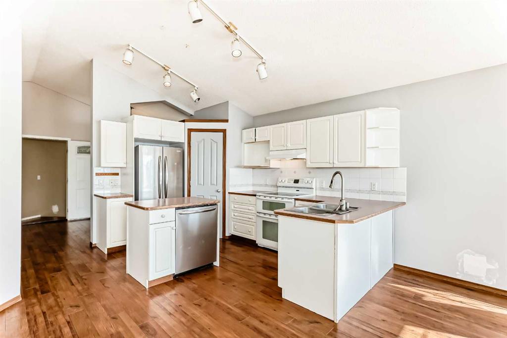 Welcome to this large Bi-Level with vaulted ceilings and SO MUCH POTENTIAL!! This property needs just a 'little TLC' to bring back its full potential! Walk in to a grand entrance and move up to the open floor plan with vaulted ceilings throughout and tons of natural light! This level includes a den/office/sitting area, spacious kitchen/dining/living room area (w/gas fireplace) a large primary bedroom with huge windows, a second bedroom and 4 pc bath. Going down the stairs is a laundry/mechanical room which is 'common property' for up and down living, and a secure door into the lower living space where you will find a second kitchen/dining area, 2 more bedrooms and a 4 pc bath. This is an illegal suite. Other notable features include a large deck off the main level, a double detached garage, back & side yard which includes a paving-stone patio area ... all on an over-sized corner lot! This home does need new carpets, fresh paint and a few other touch ups to reach it's potential & has been priced accordingly. Once renewed; it will be an amazing property for it's new owner! Book your private viewing today.