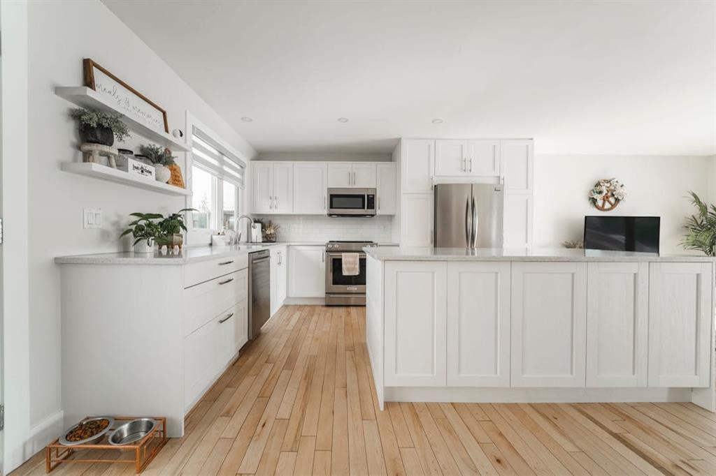 Welcome to 101 Deep Road, a beautifully renovated four level split located on a corner lot in the heart of Thickwood, directly across from a school with views of the Birchwood Trails. Surrounded by mature trees and endless outdoor recreation, this home offers a rare combination of location, space, and extensive modern updates. This property has undergone significant renovations over the years, including a full transformation in 2014 and a stunning renovation again in 2025, creating a home that feels fresh, bright, and completely updated throughout. From the moment you arrive, the updated exterior completed in 2015 sets the tone for what awaits inside. The main level features a light filled open concept layout designed for everyday living and entertaining. The kitchen is a true showpiece with brand new white cabinetry, quartz countertops, and a large island that anchors the space. Newly refinished hardwood floors, all new baseboards and trims completed in 2025, and modern zebra blinds create a clean and cohesive aesthetic throughout the home. Upstairs, you will find three bedrooms including a spacious primary suite with a walk in closet and ensuite featuring dual sinks. A full bathroom completes the upper level, offering a functional layout for families. The lower level offers a large and inviting family room with a wood burning fireplace and oversized windows that bring in an abundance of natural light, along with an additional bedroom and bathroom. The lowest level provides even more flexible space currently being used as a bedroom, along with laundry and plenty of storage. Outside, the fully fenced yard offers privacy and space to enjoy, while the large driveway provides ample parking for multiple vehicles. Additional updates include triple pane windows installed in 2010 and a new hot water tank in 2026, contributing to the overall value and peace of mind this home offers. With nearly 2,000 sq ft of finished living space, extensive renovations, and an unbeatable location near trails, schools, and recreation, 101 Deep Road is a move in ready home that truly stands out in today’s market. Schedule your private showing today and experience the quality and care that has gone into this beautifully updated property.