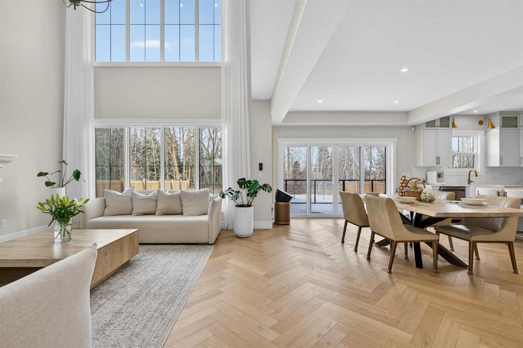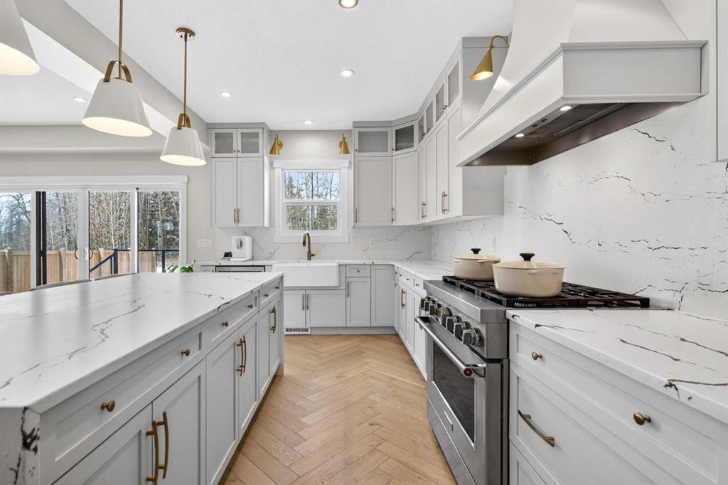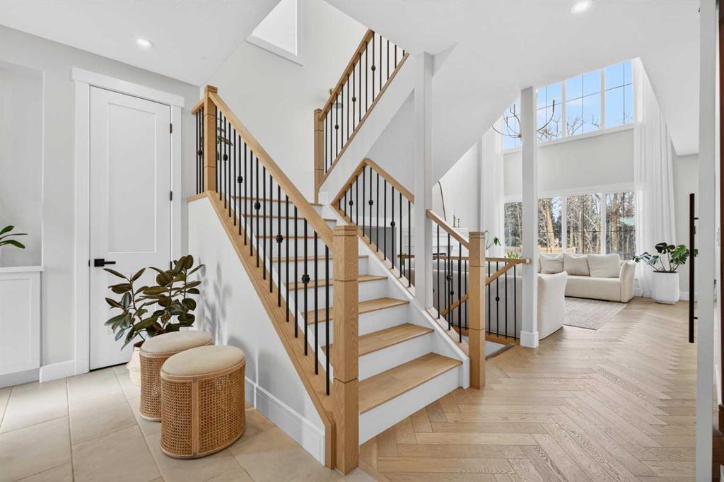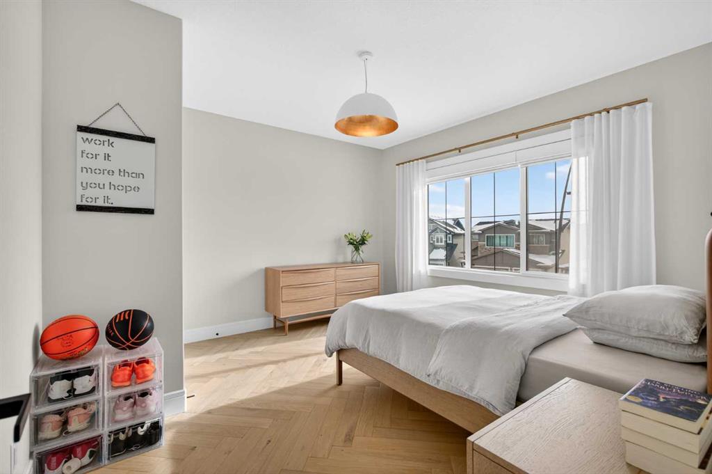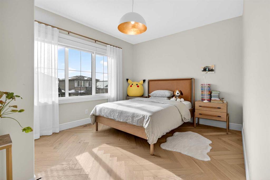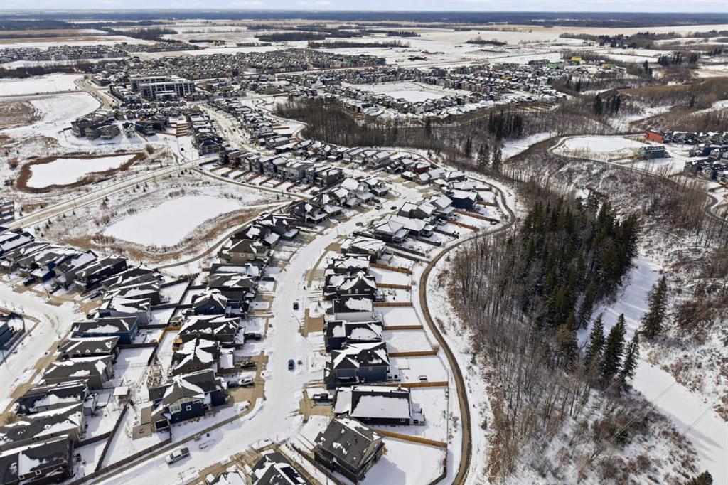 This elegant custom built home blends timeless architecture with refined, minimalist design. Perfectly positioned along an extensive walking trail & forested green space offers both privacy & a serene natural backdrop. All details curated for comfort & family living. Stunning, spacious kitchen showcases a luxury leather-touch Cambria Quartz Island, gas range & hidden butler’s pantry with direct access to the garage. The open-concept main floor is graced by an open stairwell leading to the upper loft, creating a sense of light & architectural interest. Upgrades include Hardwood Flooring, Oversized Windows, Custom floor-to-ceiling Drapes, main-floor office & large upper laundry room. With 4 bdrms, 3.5 baths, A/C &Triple garage. This Home is perfect for all family sizes. The Fully finished basement has a stylish wet bar, recreation room, an extra bedroom & a 3-piece bathroom—perfect for guests & entertaining. Walking distance to park, playground & transit, this home blends luxury, comfort, and convenience. Perfect location to view the Northern Lights!