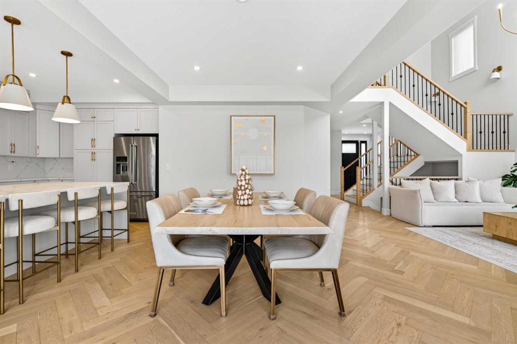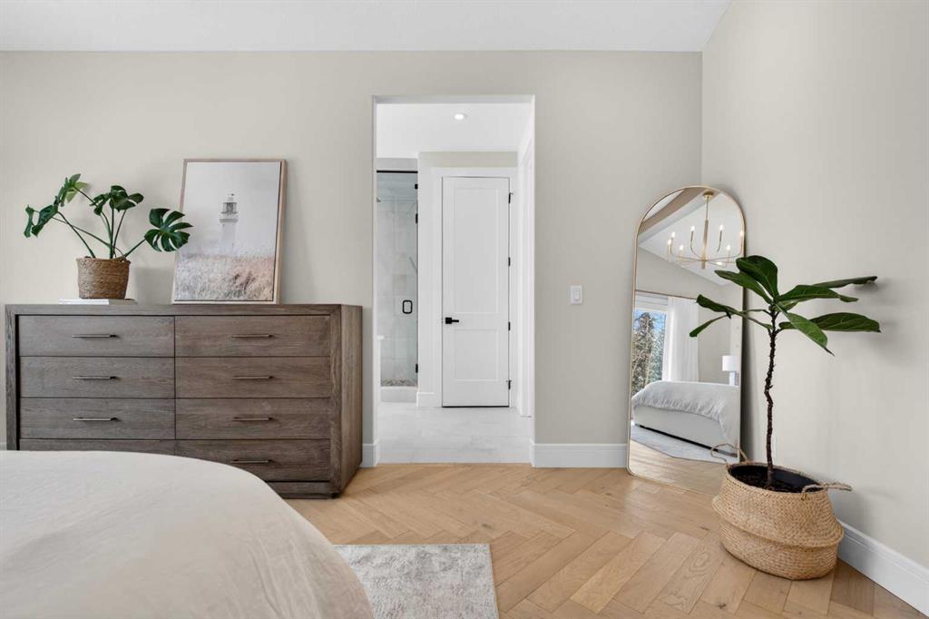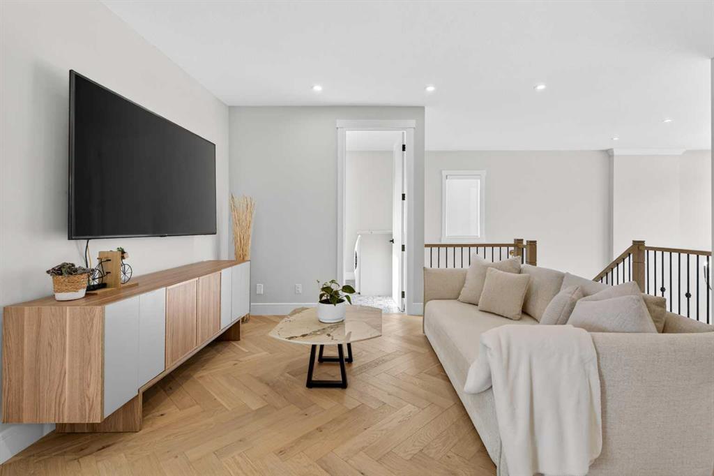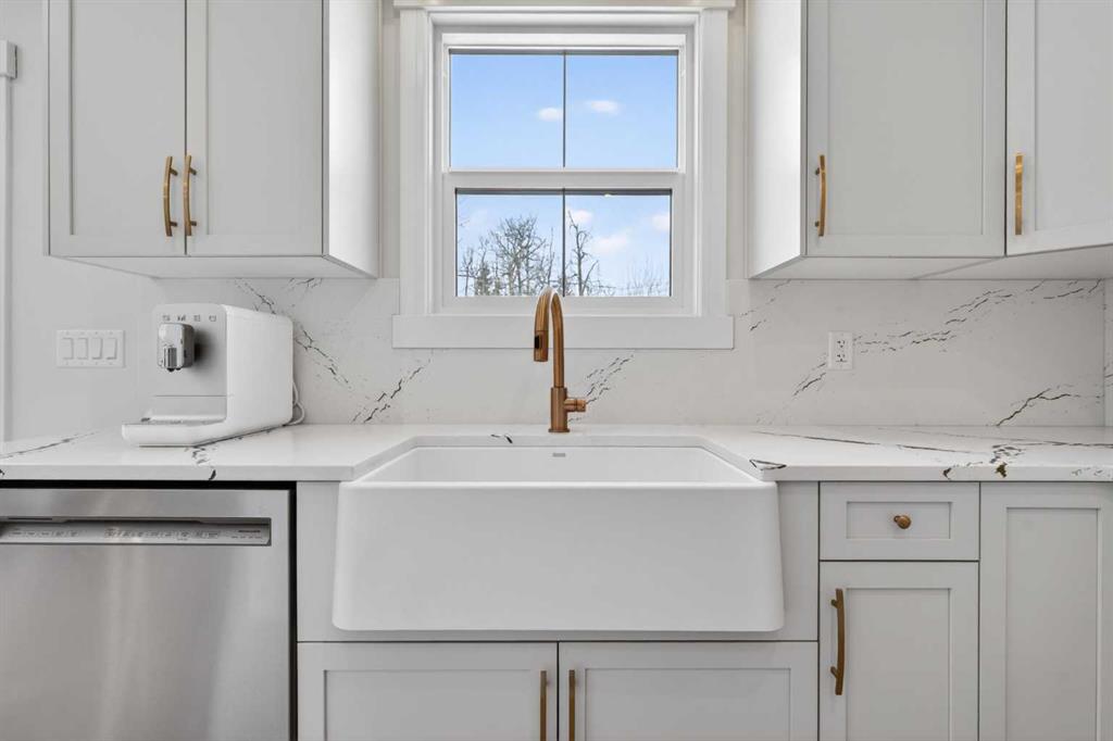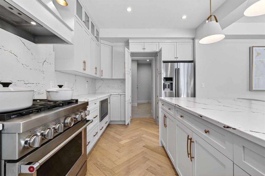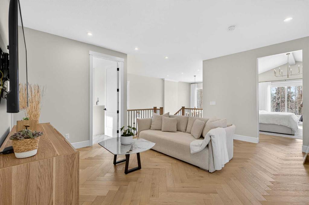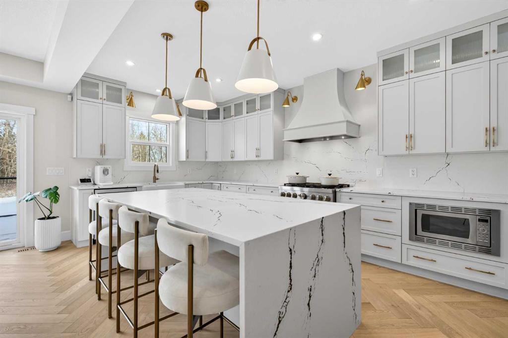 This elegant custom built home blends timeless architecture with refined, minimalist design. Perfectly positioned along an extensive walking trail & forested green space offers both privacy & a serene natural backdrop. All details curated for comfort & family living. Stunning, spacious kitchen showcases a luxury leather-touch Cambria Quartz Island, gas range & hidden butler’s pantry with direct access to the garage. The open-concept main floor is graced by an open stairwell leading to the upper loft, creating a sense of light & architectural interest. Upgrades include Hardwood Flooring, Oversized Windows, Custom floor-to-ceiling Drapes, main-floor office & large upper laundry room. With 4 bdrms, 3.5 baths, A/C &Triple garage. This Home is perfect for all family sizes. The Fully finished basement has a stylish wet bar, recreation room, an extra bedroom & a 3-piece bathroom—perfect for guests & entertaining. Walking distance to park, playground & transit, this home blends luxury, comfort, and convenience. Perfect location to view the Northern Lights!
