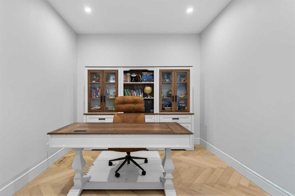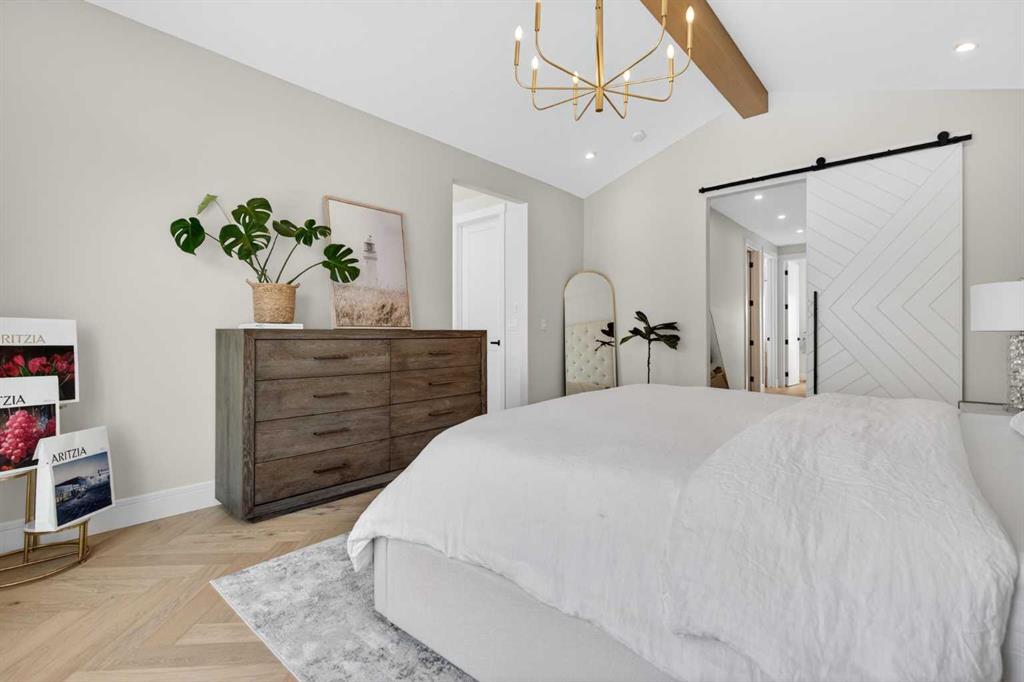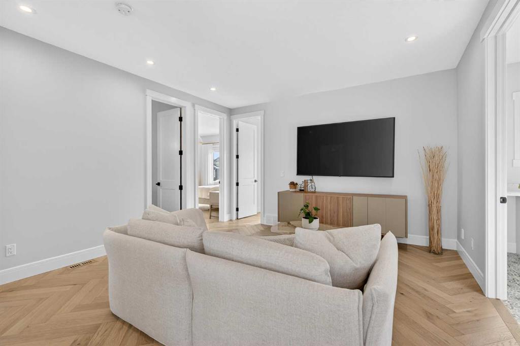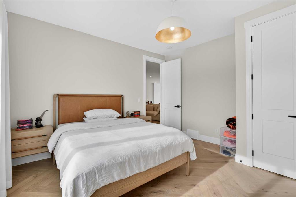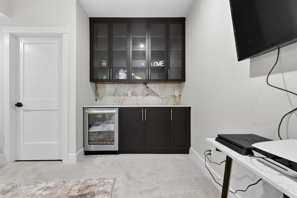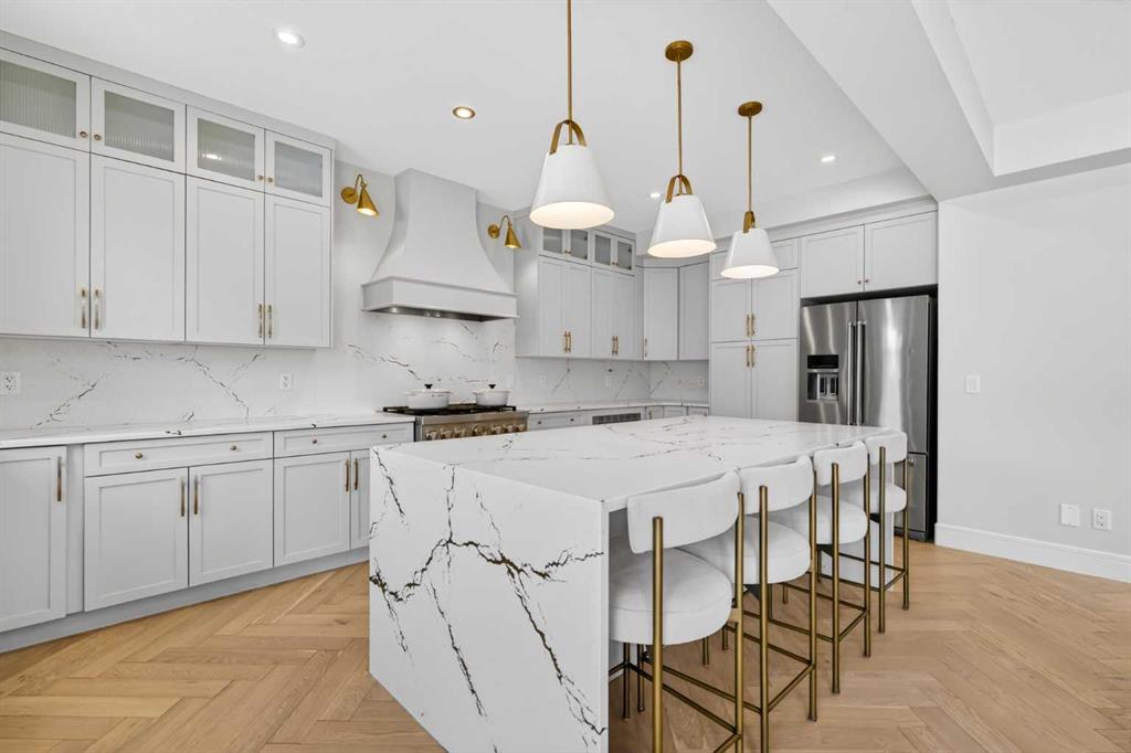 This elegant custom built home blends timeless architecture with refined, minimalist design. Perfectly positioned along an extensive walking trail & forested green space offers both privacy & a serene natural backdrop. All details curated for comfort & family living. Stunning, spacious kitchen showcases a luxury leather-touch Cambria Quartz Island, gas range & hidden butler’s pantry with direct access to the garage. The open-concept main floor is graced by an open stairwell leading to the upper loft, creating a sense of light & architectural interest. Upgrades include Hardwood Flooring, Oversized Windows, Custom floor-to-ceiling Drapes, main-floor office & large upper laundry room. With 4 bdrms, 3.5 baths, A/C &Triple garage. This Home is perfect for all family sizes. The Fully finished basement has a stylish wet bar, recreation room, an extra bedroom & a 3-piece bathroom—perfect for guests & entertaining. Walking distance to park, playground & transit, this home blends luxury, comfort, and convenience. Perfect location to view the Northern Lights!