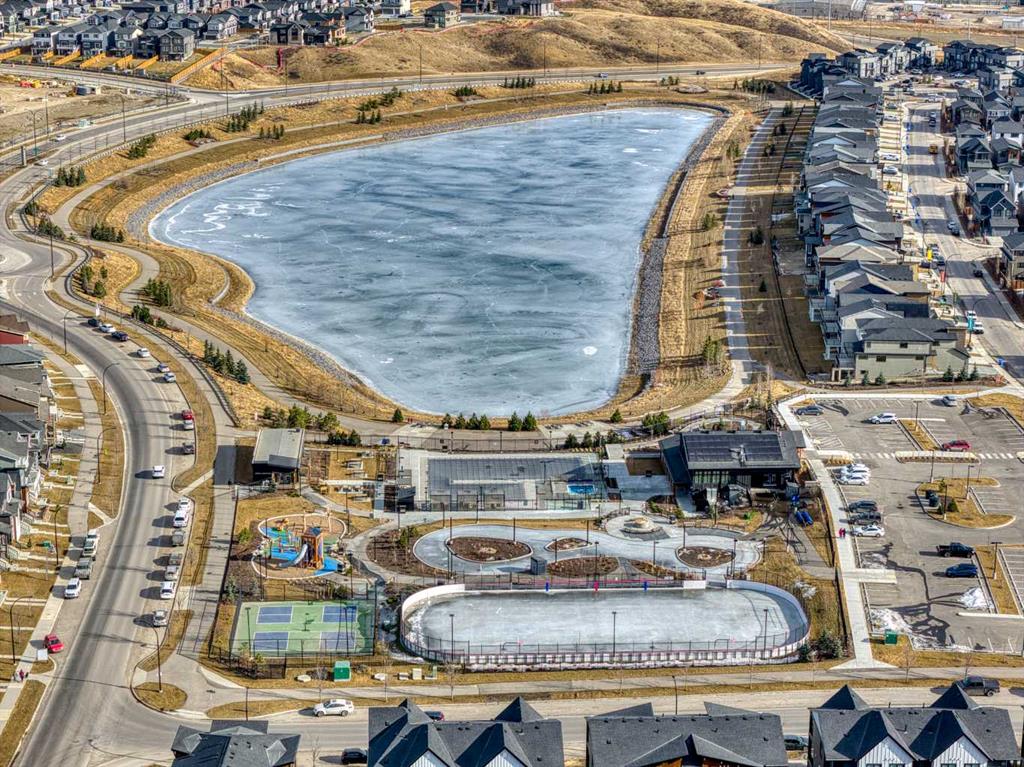 In Northwest Calgary's new Rockland Park community, this Morrison Homes bungalow offers easy maintenance without condo board rules, restrictions, or fees. Minimal exterior upkeep—just the city sidewalk, short front path, tiny lawn patch, and small driveway to the rear garage. Perfect for downsizers. Offering over 1,954 sq. ft. of total living space, this 2022-built home features an open-concept main floor with vaulted ceilings from living room to kitchen and central air conditioning. Luxury vinyl plank flooring runs across the main level. The dining area sits adjacent to the kitchen, which has a quartz waterfall island with integrated sink and seating for four. The kitchen includes a stainless steel appliance package: gas cooktop, built-in oven, microwave, and dishwasher. Finishes continue into the primary bedroom with its ensuite bathroom featuring dual vanities on quartz countertops, hexagonal floor tile, glass-enclosed shower with dual fixtures, and soaker tub with tile surround. A large walk-in closet has built-in storage. The fully developed basement has a family room and two additional bedrooms, one used as a home office. Stacked washer and dryer are in an enclosed laundry area with storage for cleaning supplies. The basement bathroom matches the primary ensuite with tiled bathtub/shower and quartz vanity. The backyard has synthetic turf instead of grass. Steps from the back door is an oversized detached double garage, insulated and drywalled, with parking and storage space. Built in 2022, this home is protected by the Alberta New Home Warranty Program's 5- and 10-year warranties, covering building envelope, structural components, distribution systems (plumbing, electrical, heating), and more for peace of mind. Rockland Park owners enjoy exclusive lodge/park access (pool, hot tub, pickleball, playground, fire pit) plus proximity to Lynx Ridge Golf Course, walking paths, mountains, and highways. Schedule your showing today!
