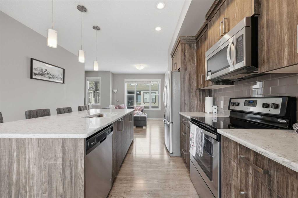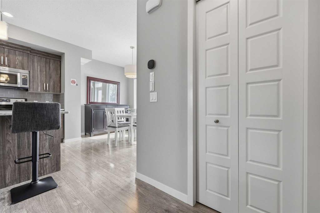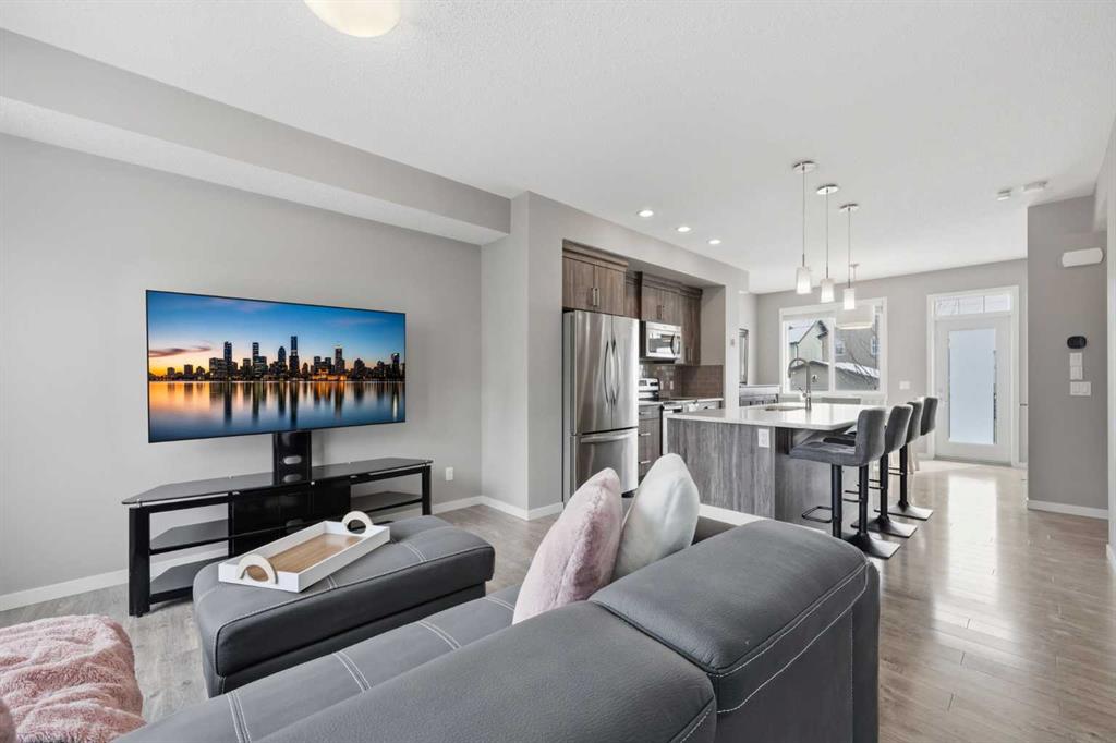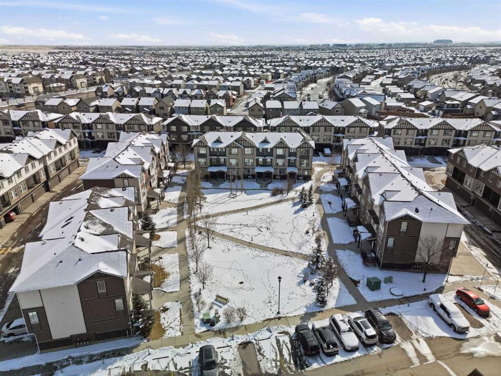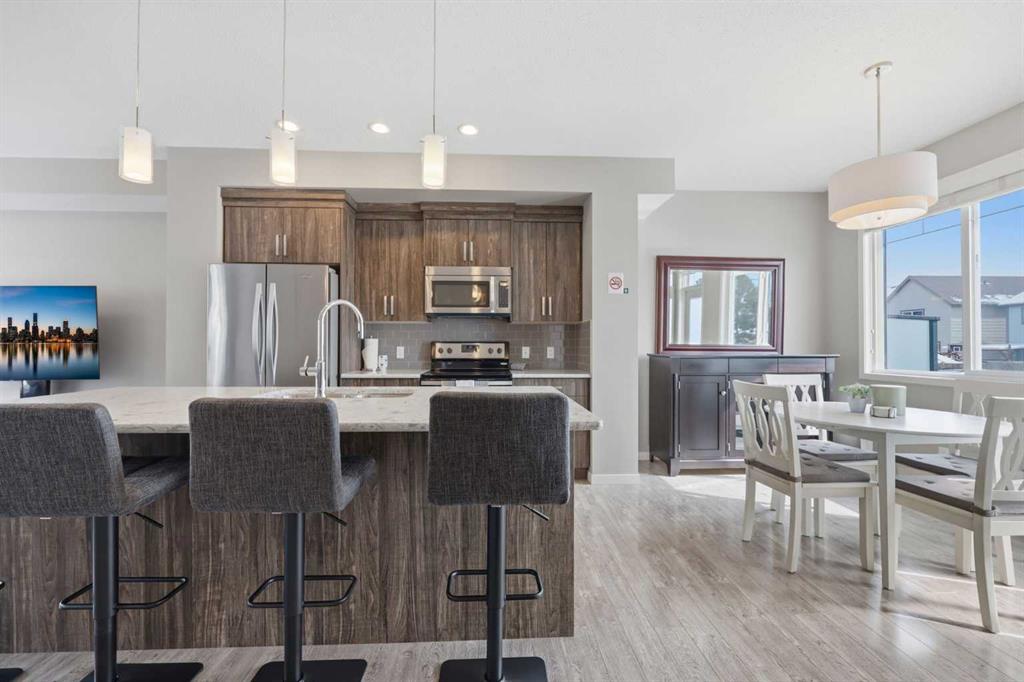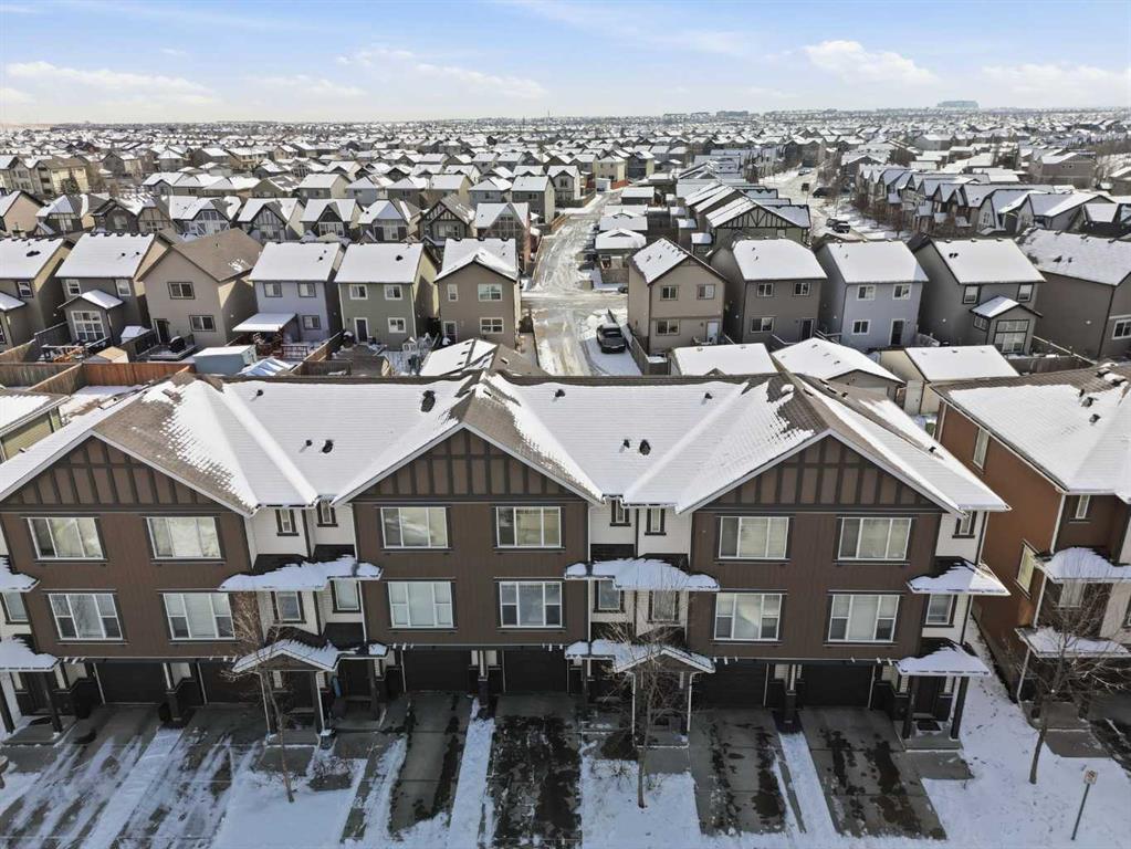Located in the vibrant and family-oriented community of New Brighton, you’re surrounded by parks, playgrounds, top-rated schools, scenic pathways, and convenient shopping, all just minutes away. This townhome is set up for day-to-day convenience—walking distance to schools of all levels, pathways, parks, ponds, playgrounds, medical offices and shopping. Quick access to Stoney Trail makes getting around the city simple. The community also offers added value with amenities, including tennis courts, a summer camp for kids, fitness/yoga studio space, a splash park, and an outdoor rink. The home has been well-maintained, with thoughtful upgrades throughout. These include a Central A/C unit with smart thermostat, August smart lock and video doorbell. The main floor features 9' ceilings and plenty of natural light. The open-concept layout connects the kitchen and living area, with full-height cabinetry, quartz countertops, stainless steel appliances, and a large island with extra storage. There’s also a convenient half bath on this level. Step out onto the back deck for coffee or easy BBQ access. Upstairs, the primary bedroom comfortably fits a king-sized bed and includes a 3-piece ensuite. Two additional bedrooms offer flexibility—ideal for kids' rooms, home offices or guest space. You’ll also find a full 4-piece bathroom and upper-level laundry. This home includes a tandem attached garage with extra length, driveway parking, nearby visitor stalls, and a paved rear alley for additional options. If you’re looking for a low-maintenance home in a well-connected community, this one checks the boxes.